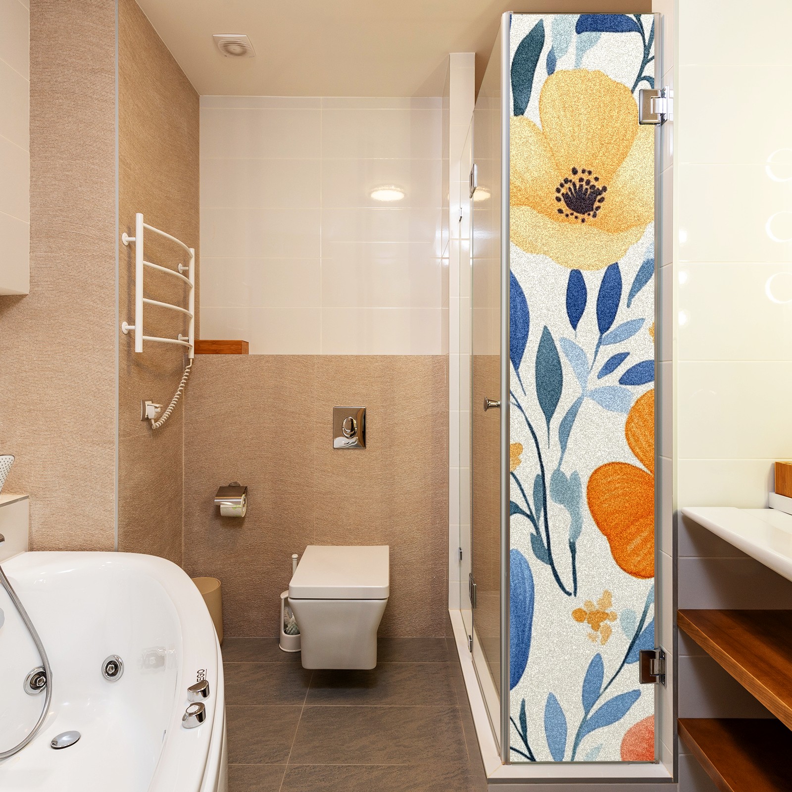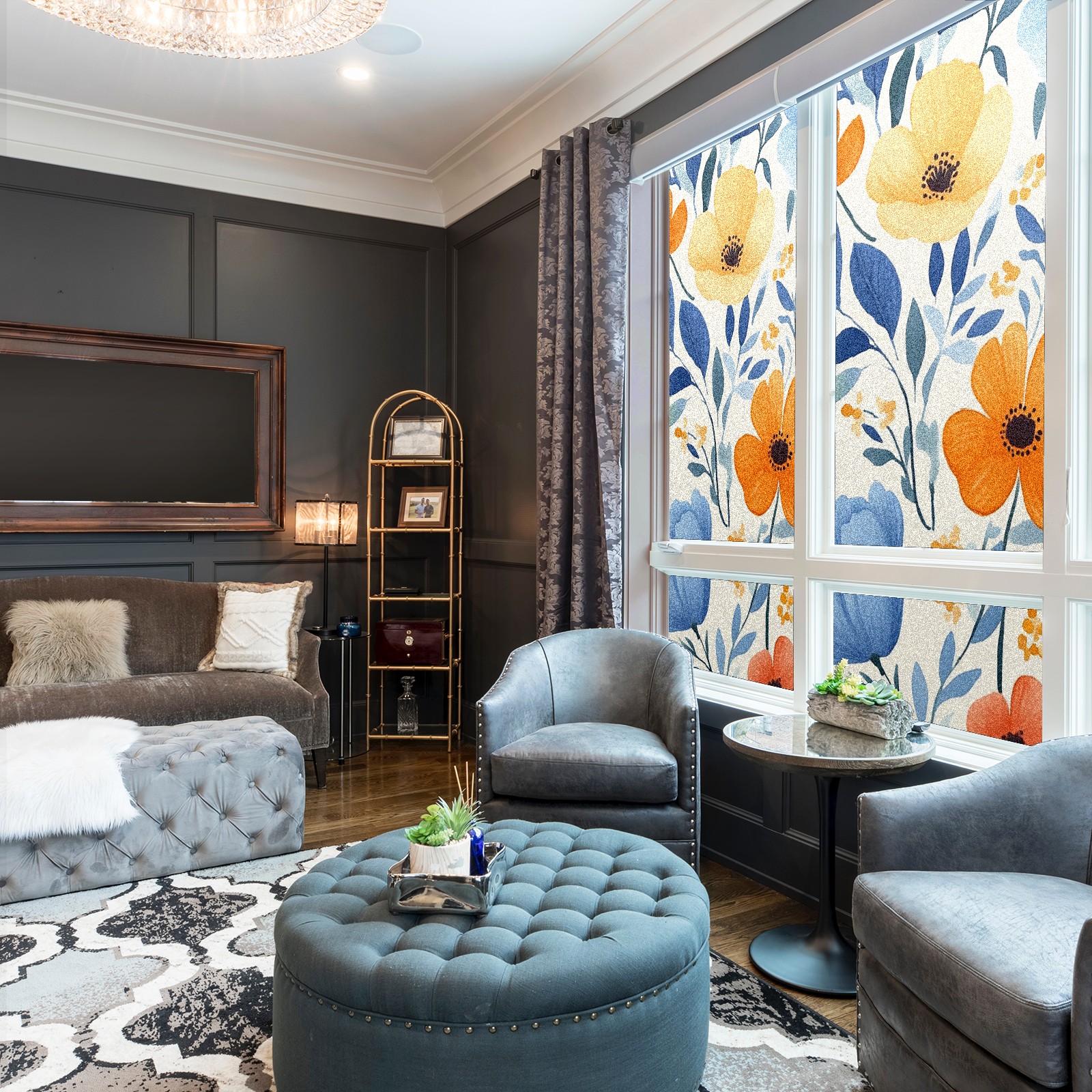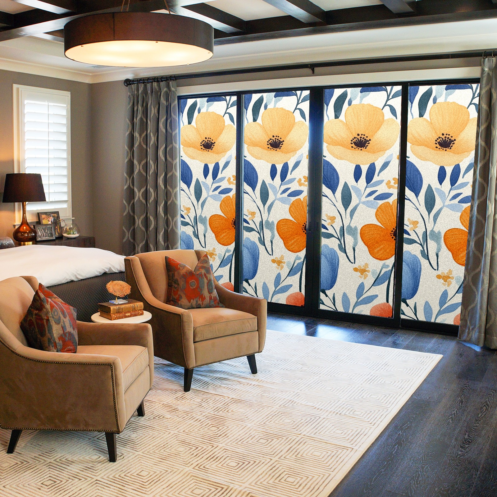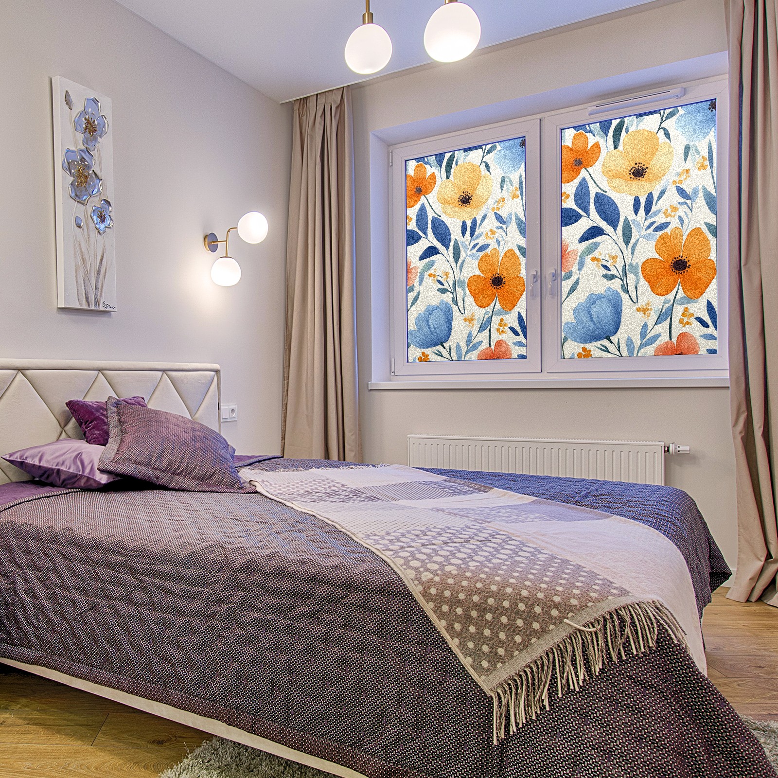 Stained Glass Window Film - Decorative Privacy Film for Windows, Peel and Stick Window Film for Bathroom/Office/Shower, Reusable and Easy to Cut 17.7"x23.6" (Watercolor Floral)