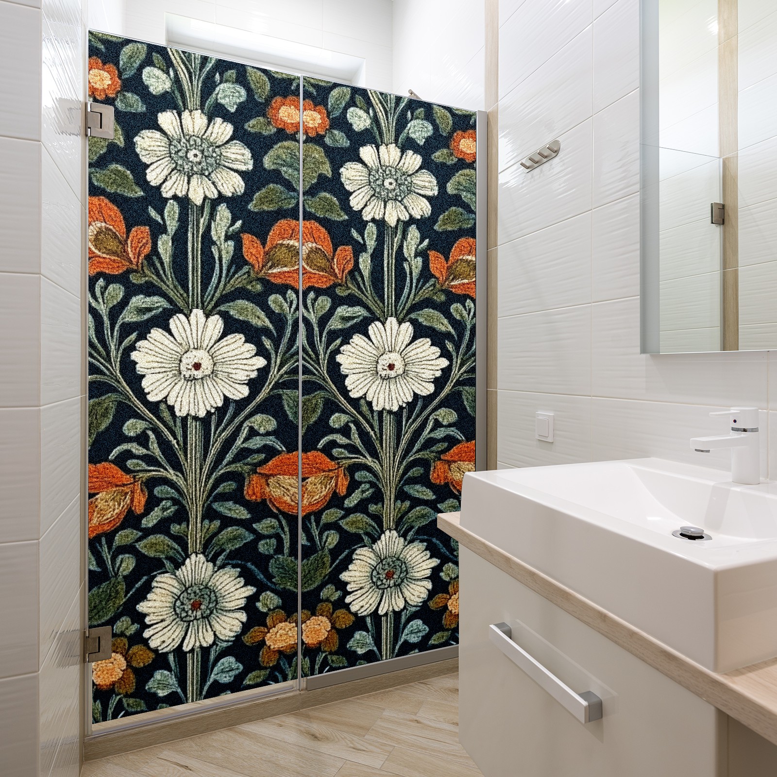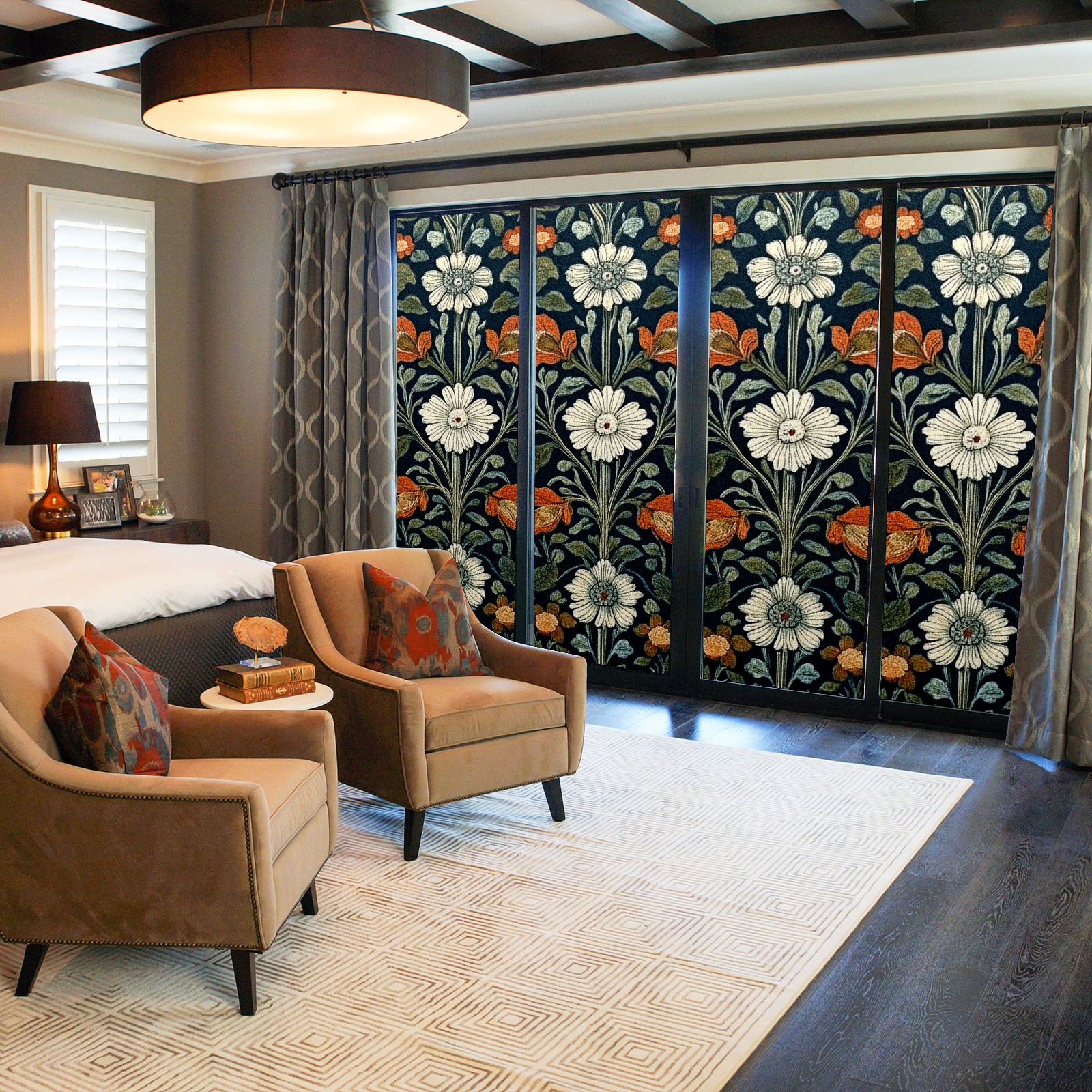 Stained Glass Window Film - Decorative Privacy Film for Windows, Peel and Stick Window Film for Bathroom/Office/Shower, Reusable and Easy to Cut 17.7"x23.6" (Vintage Red White Floral)