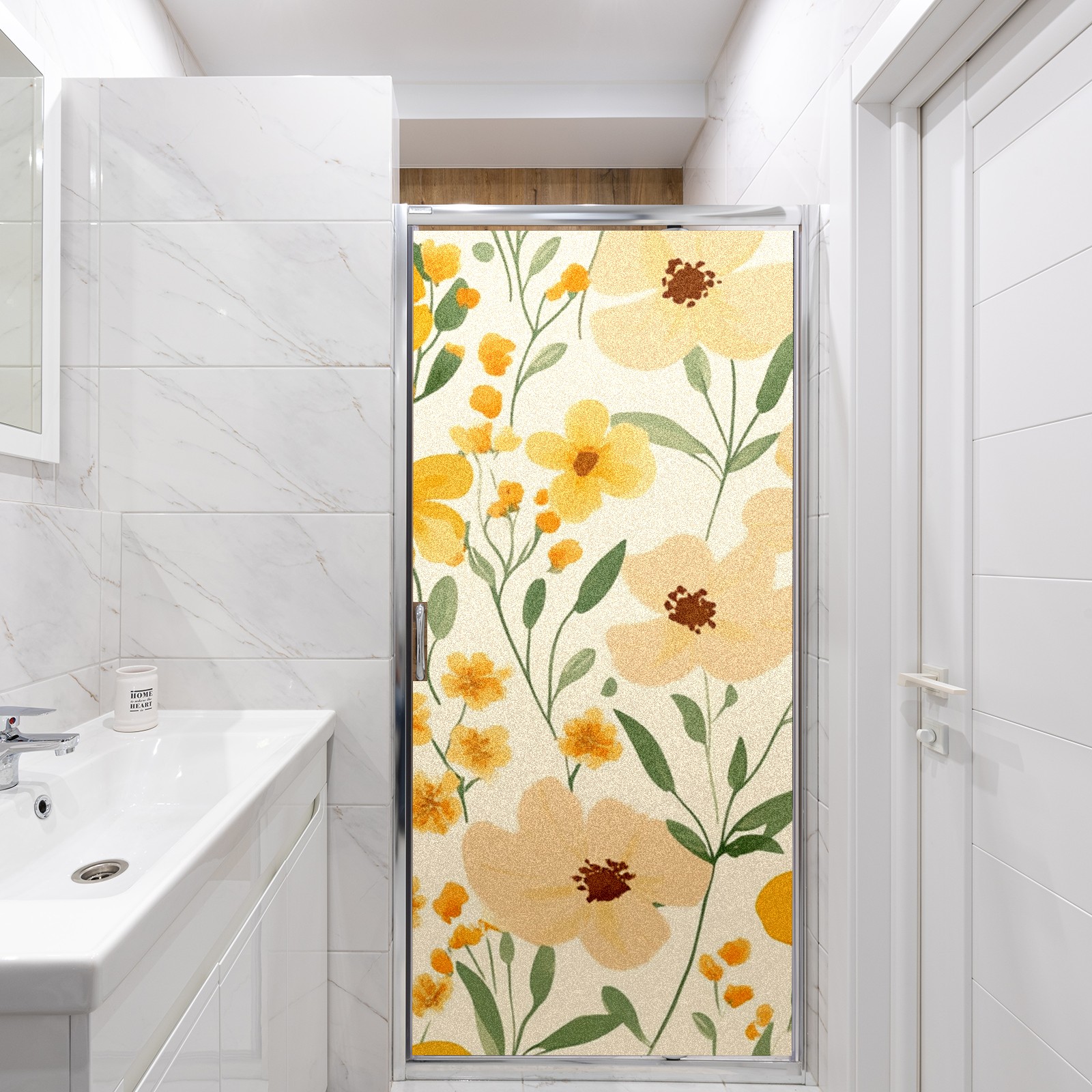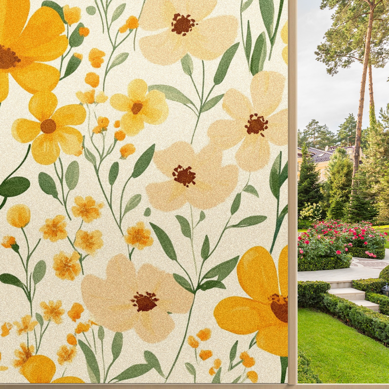 Stained Glass Window Film - Decorative Privacy Film for Windows, Peel and Stick Window Film for Bathroom/Office/Shower, Reusable and Easy to Cut 17.7"x23.6" (Orange Wildflowers)