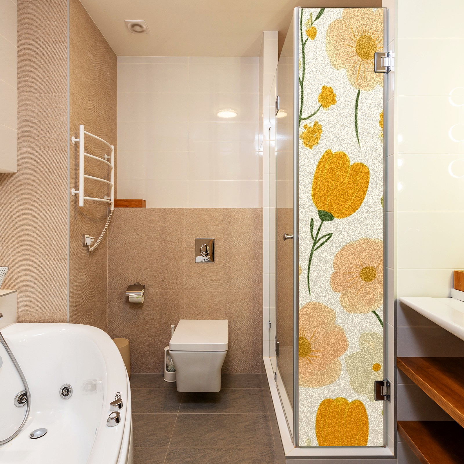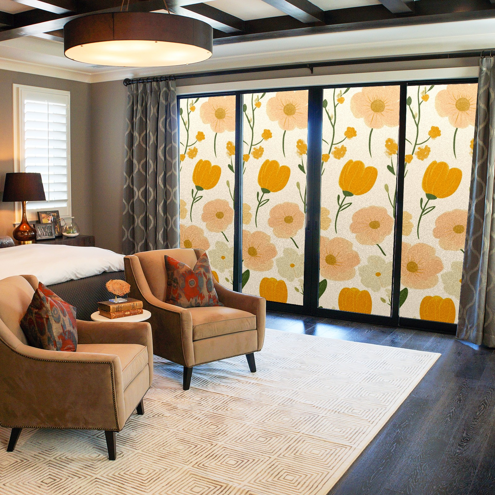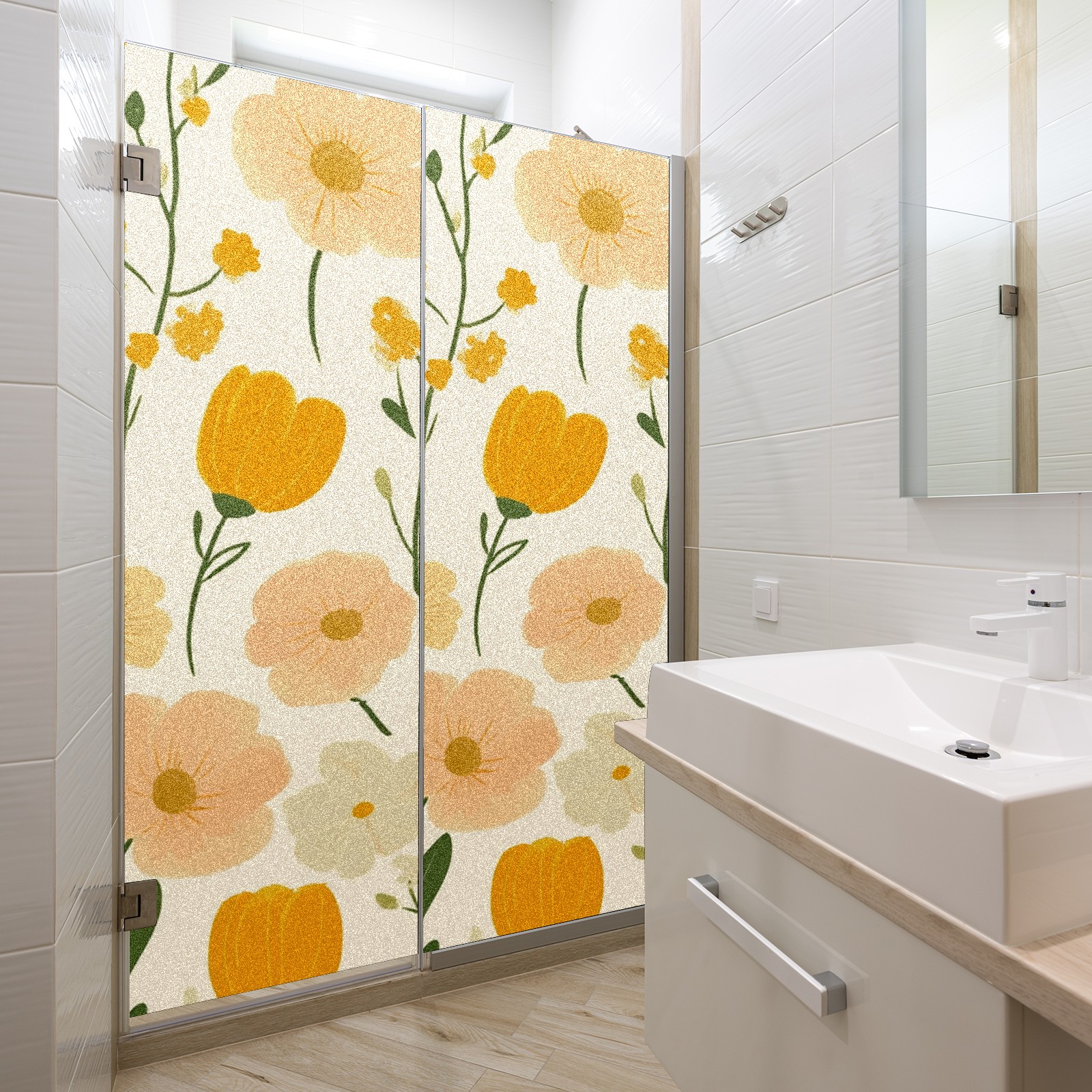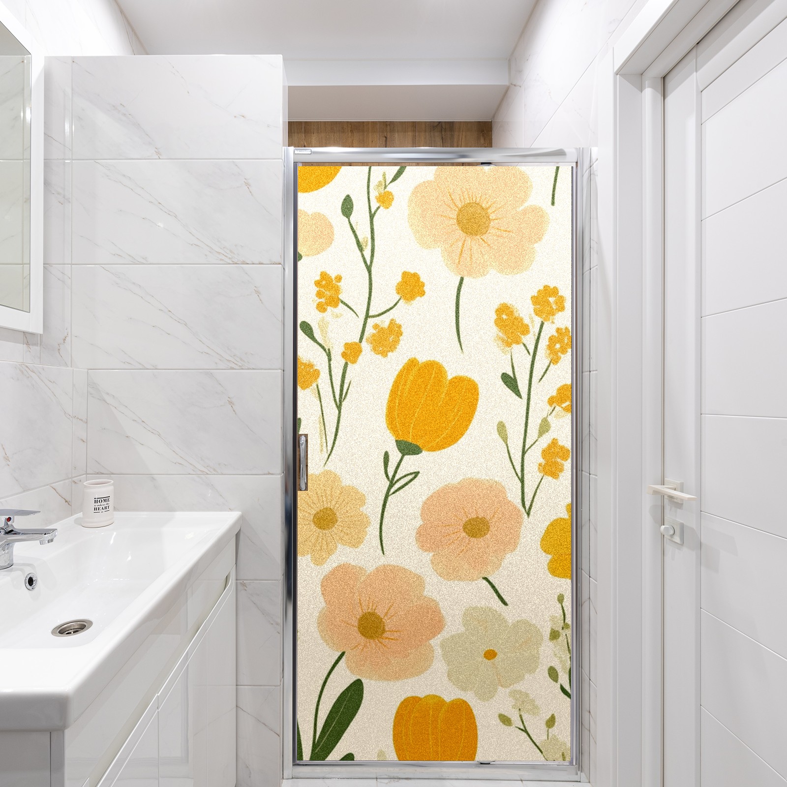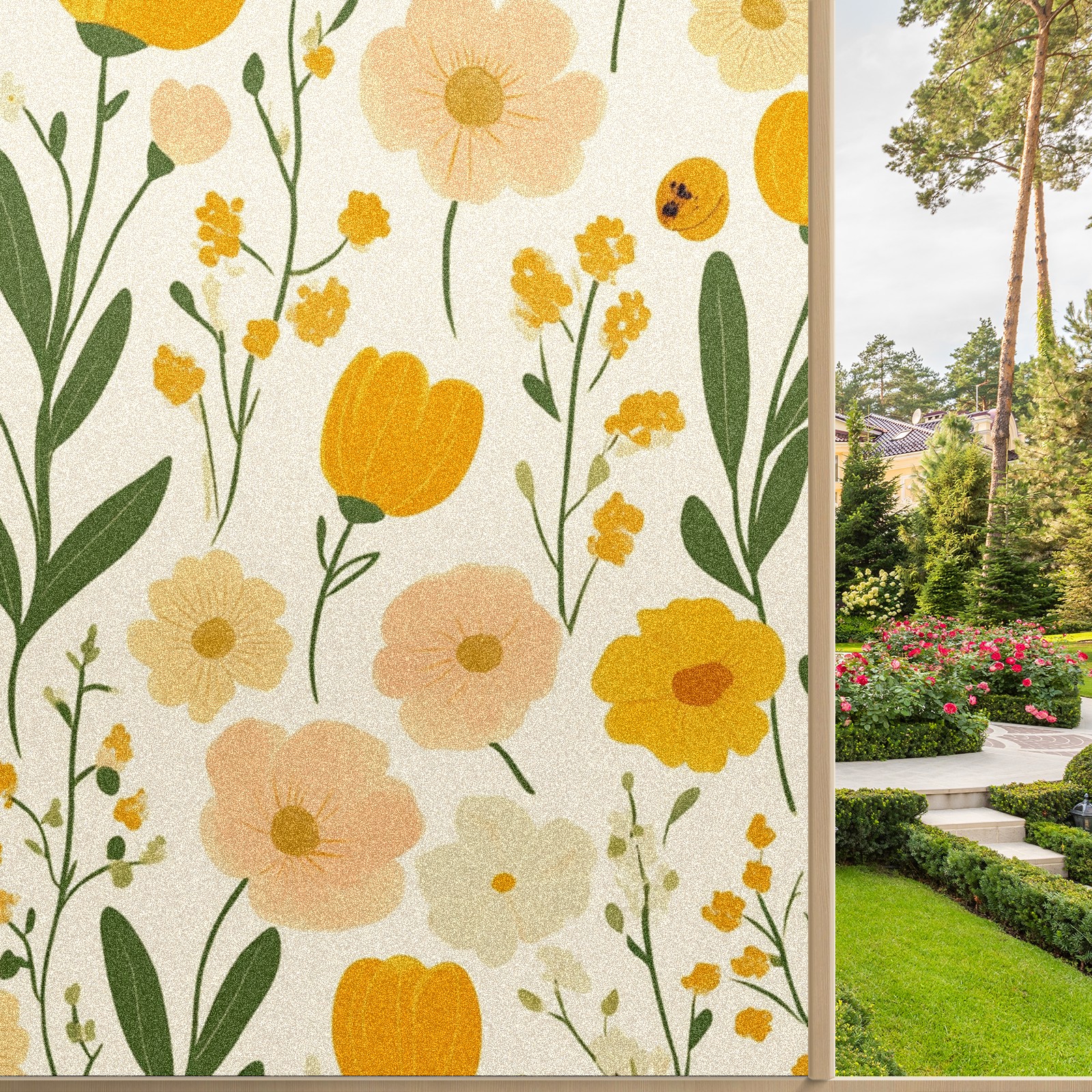 Stained Glass Window Film - Decorative Privacy Film for Windows, Peel and Stick Window Film for Bathroom/Office/Shower, Reusable and Easy to Cut 17.7"x23.6" (Orange Flowers)