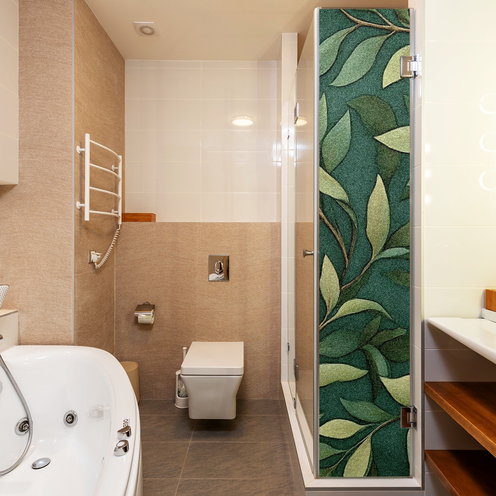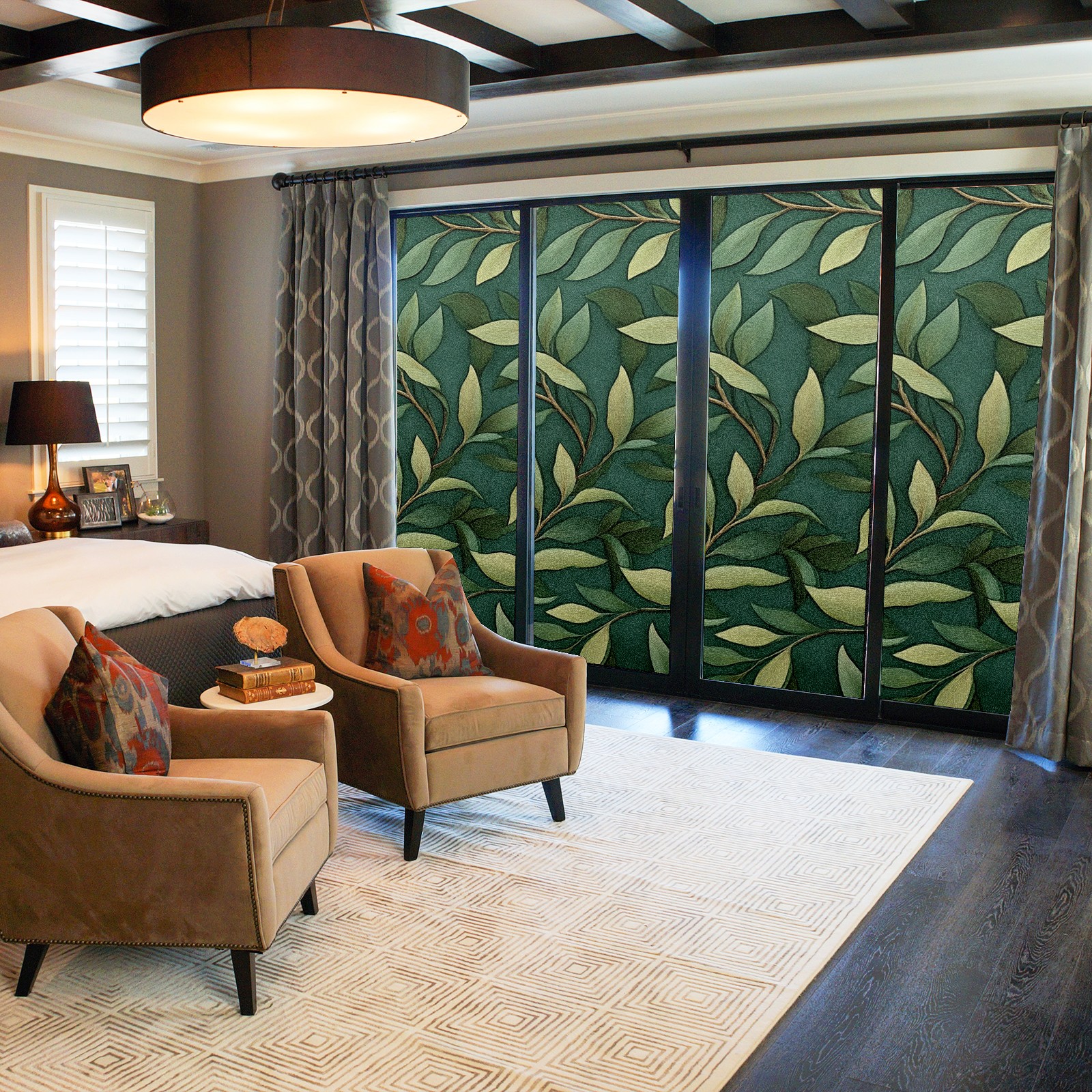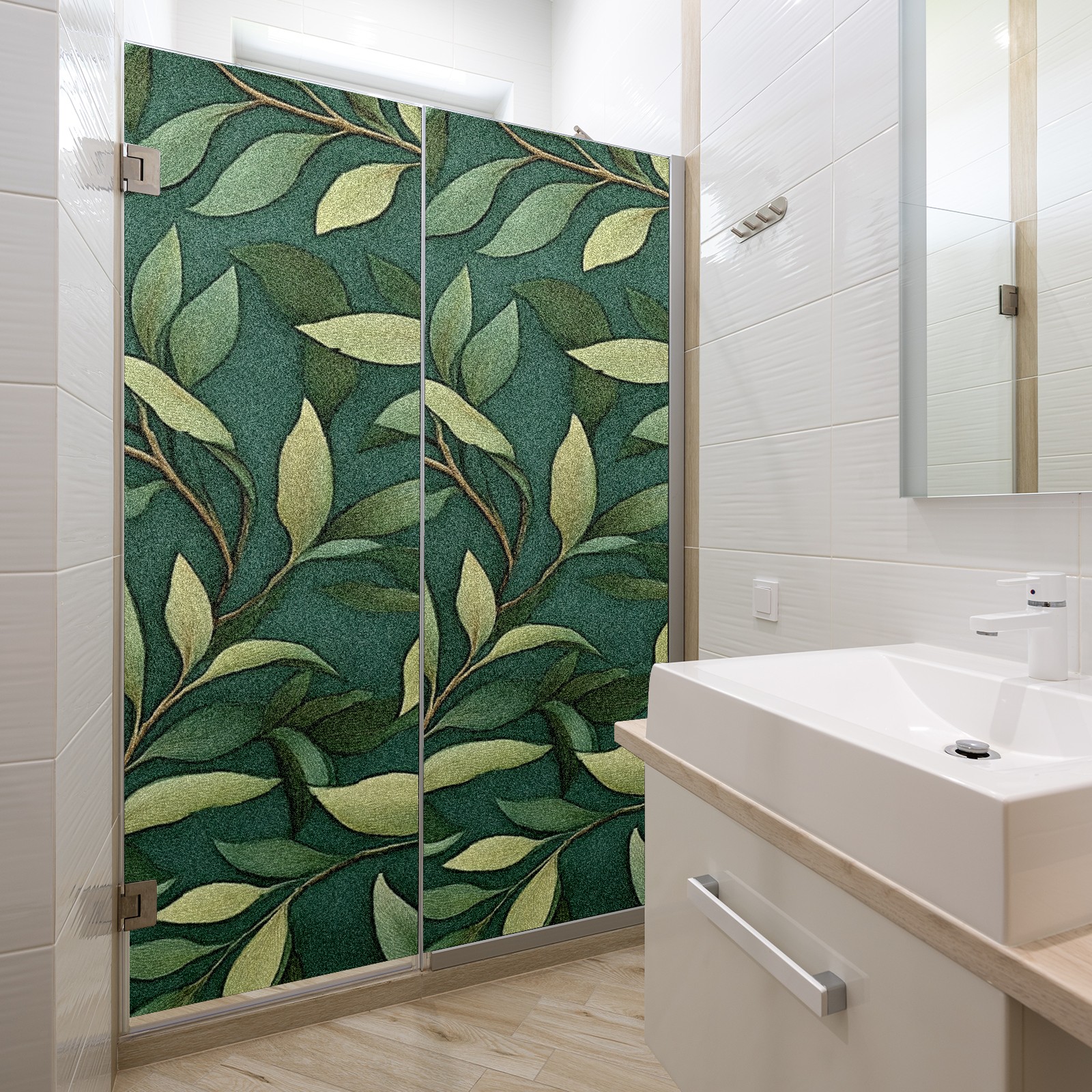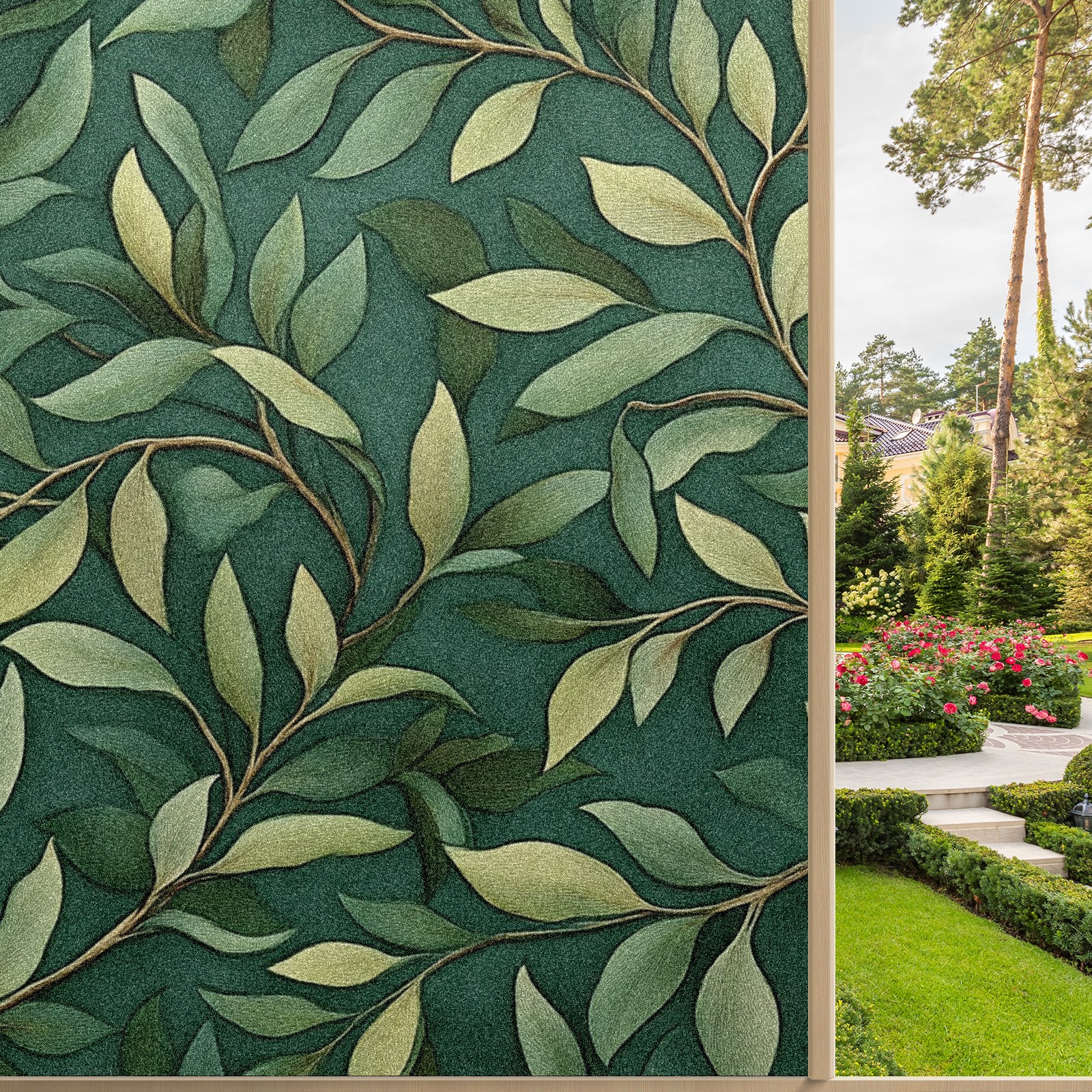 Stained Glass Window Film - Decorative Privacy Film for Windows, Peel and Stick Window Film for Bathroom/Office/Shower, Reusable and Easy to Cut 17.7"x23.6" (Leaves)