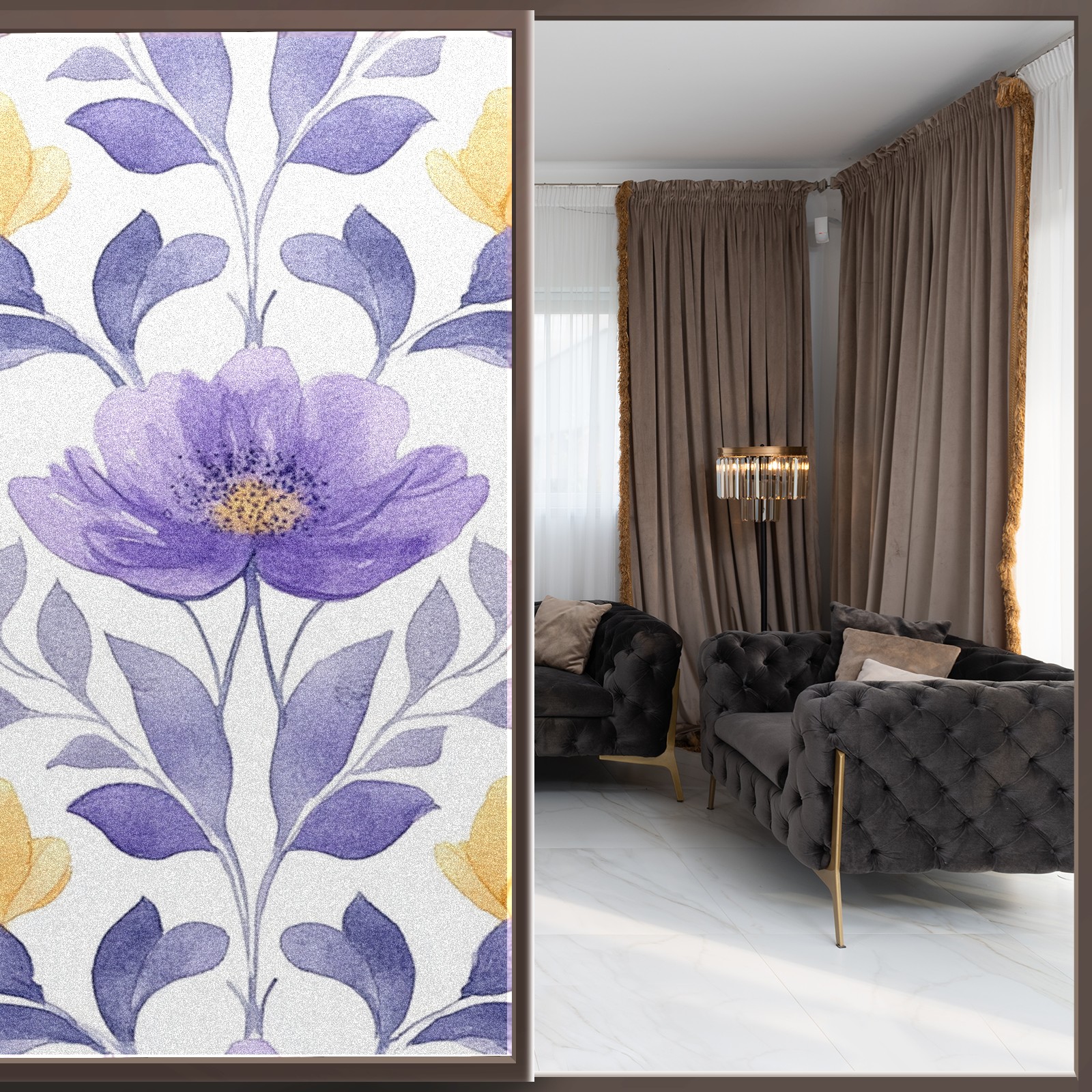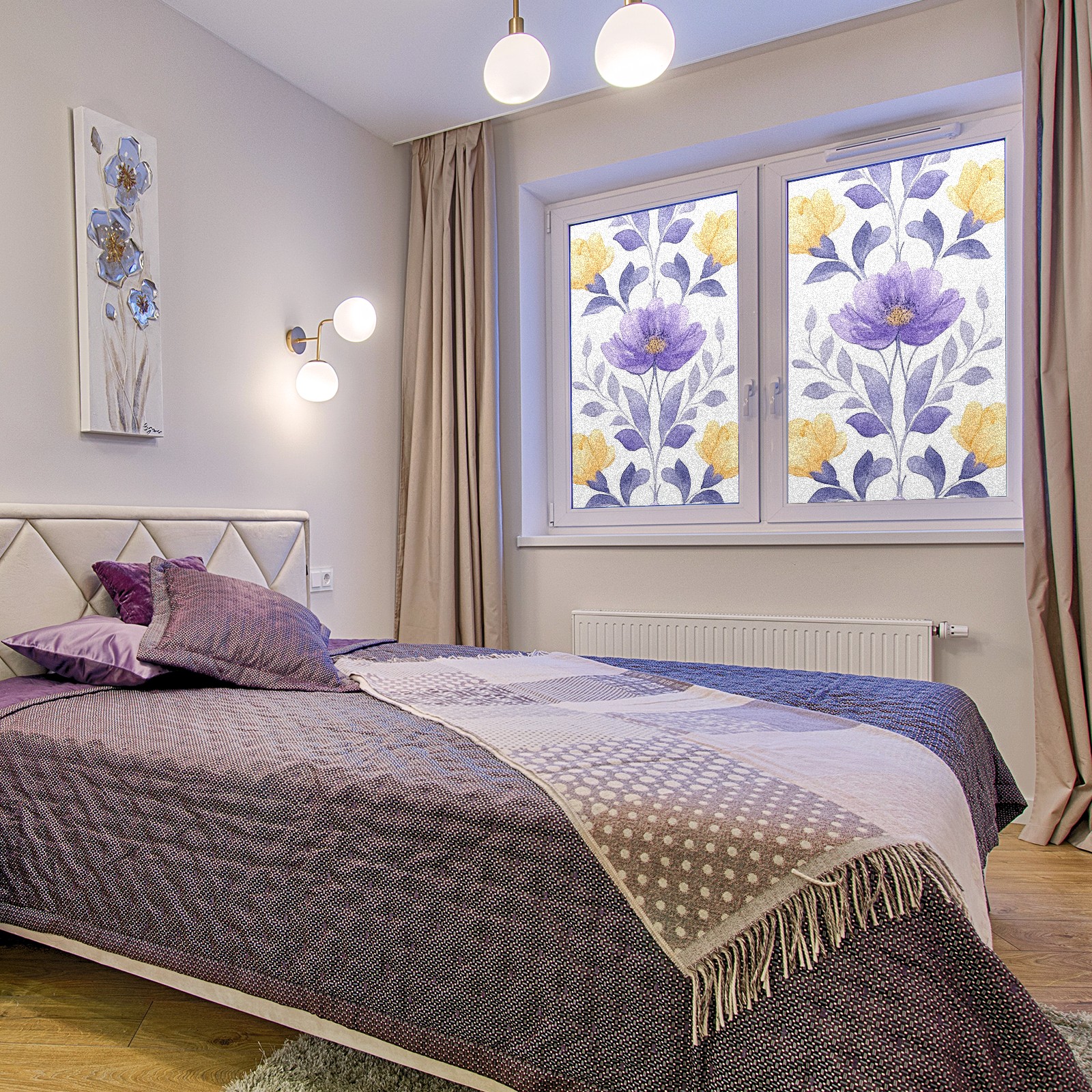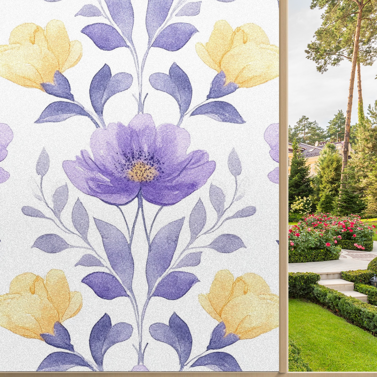 Stained Glass Window Film - Decorative Privacy Film for Windows, Peel and Stick Window Film for Bathroom/Office/Shower, Reusable and Easy to Cut 17.7"x23.6" (Yellow Purple Floral)