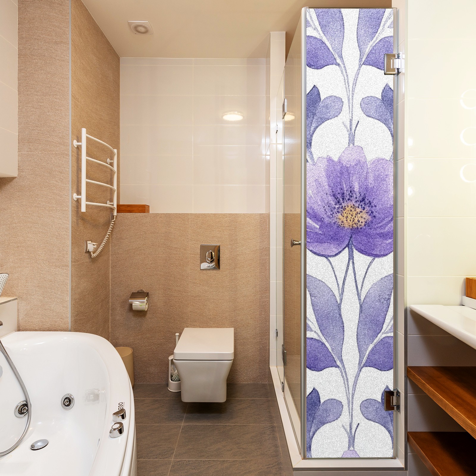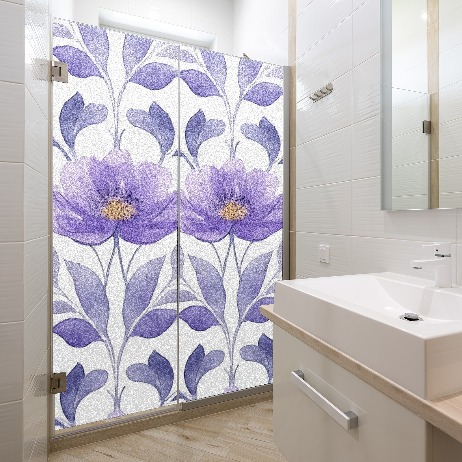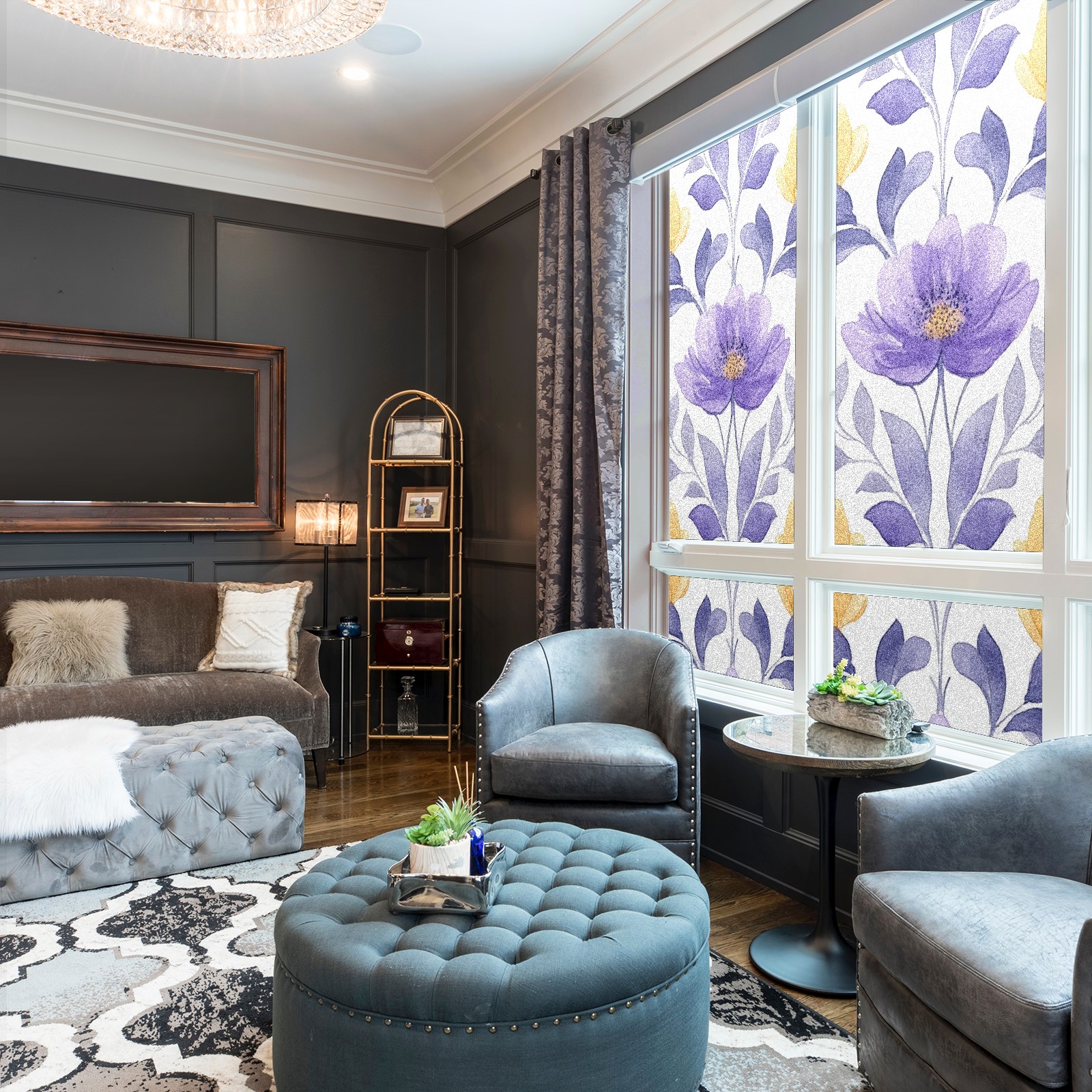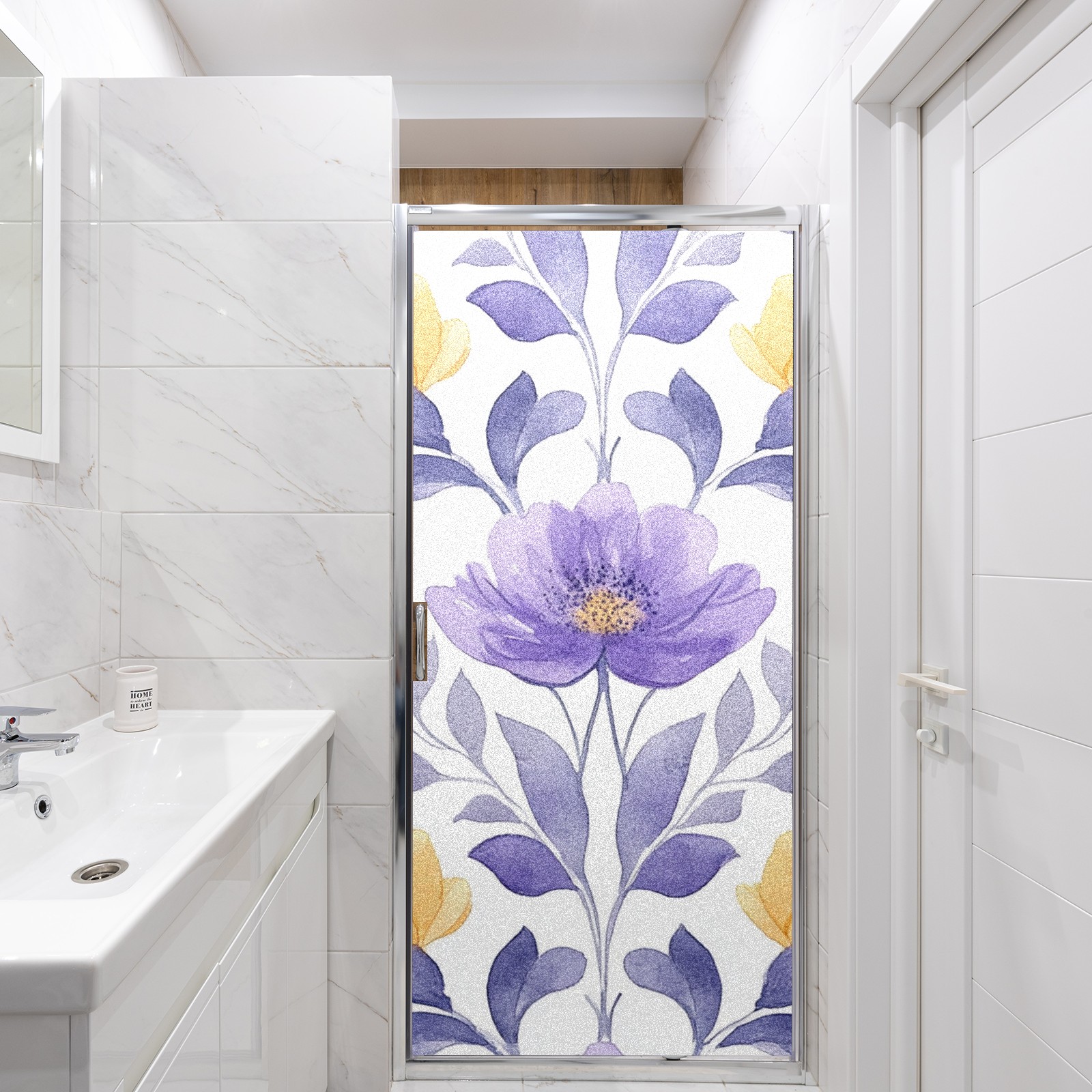 Stained Glass Window Film - Decorative Privacy Film for Windows, Peel and Stick Window Film for Bathroom/Office/Shower, Reusable and Easy to Cut 17.7"x23.6" (Yellow Purple Floral)
