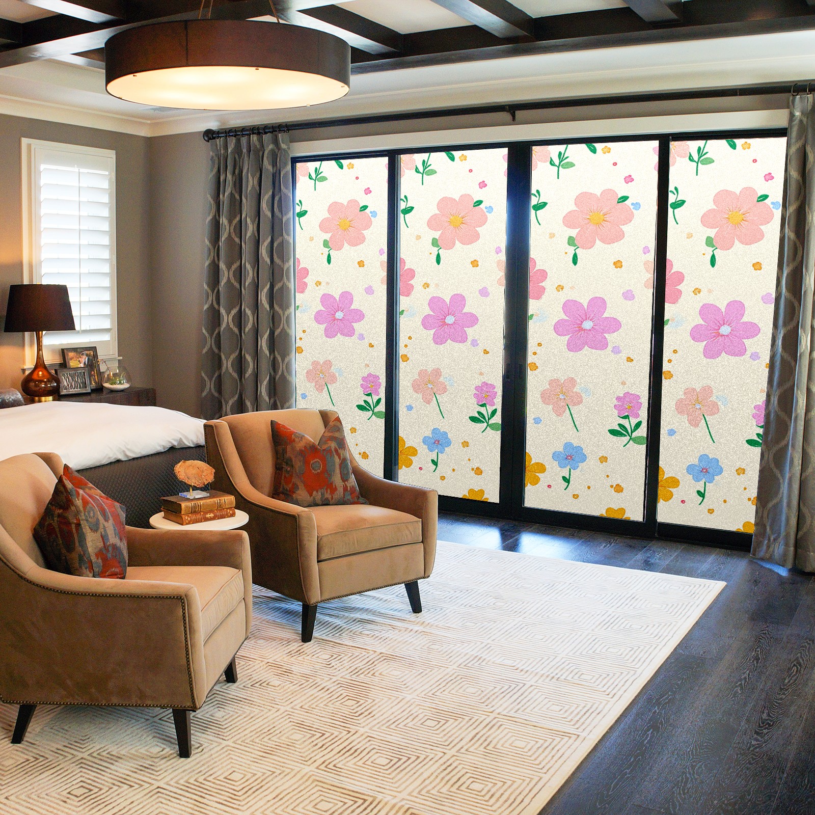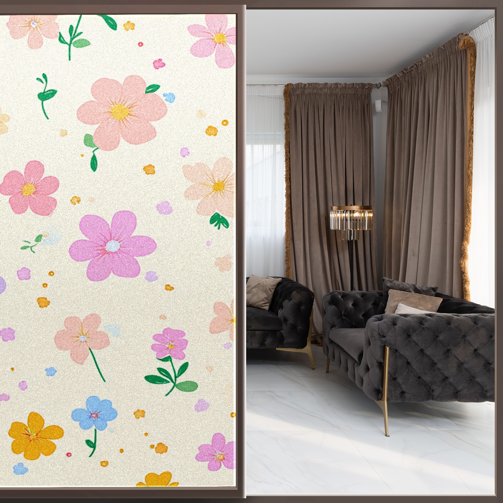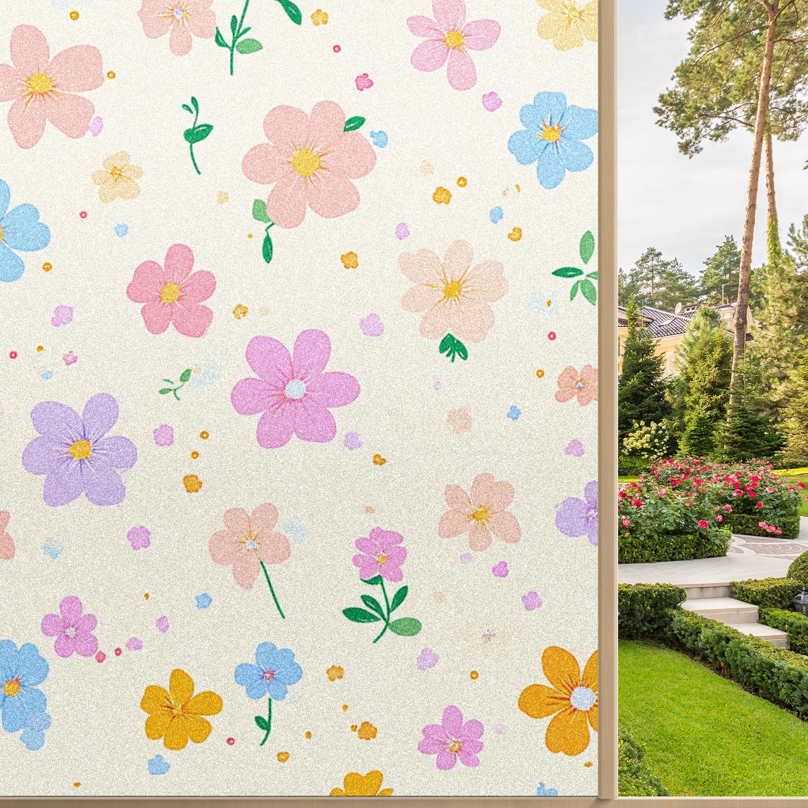 Stained Glass Window Film - Decorative Privacy Film for Windows, Peel and Stick Window Film for Bathroom/Office/Shower, Reusable and Easy to Cut 17.7"x23.6" (Spring Flowers)
