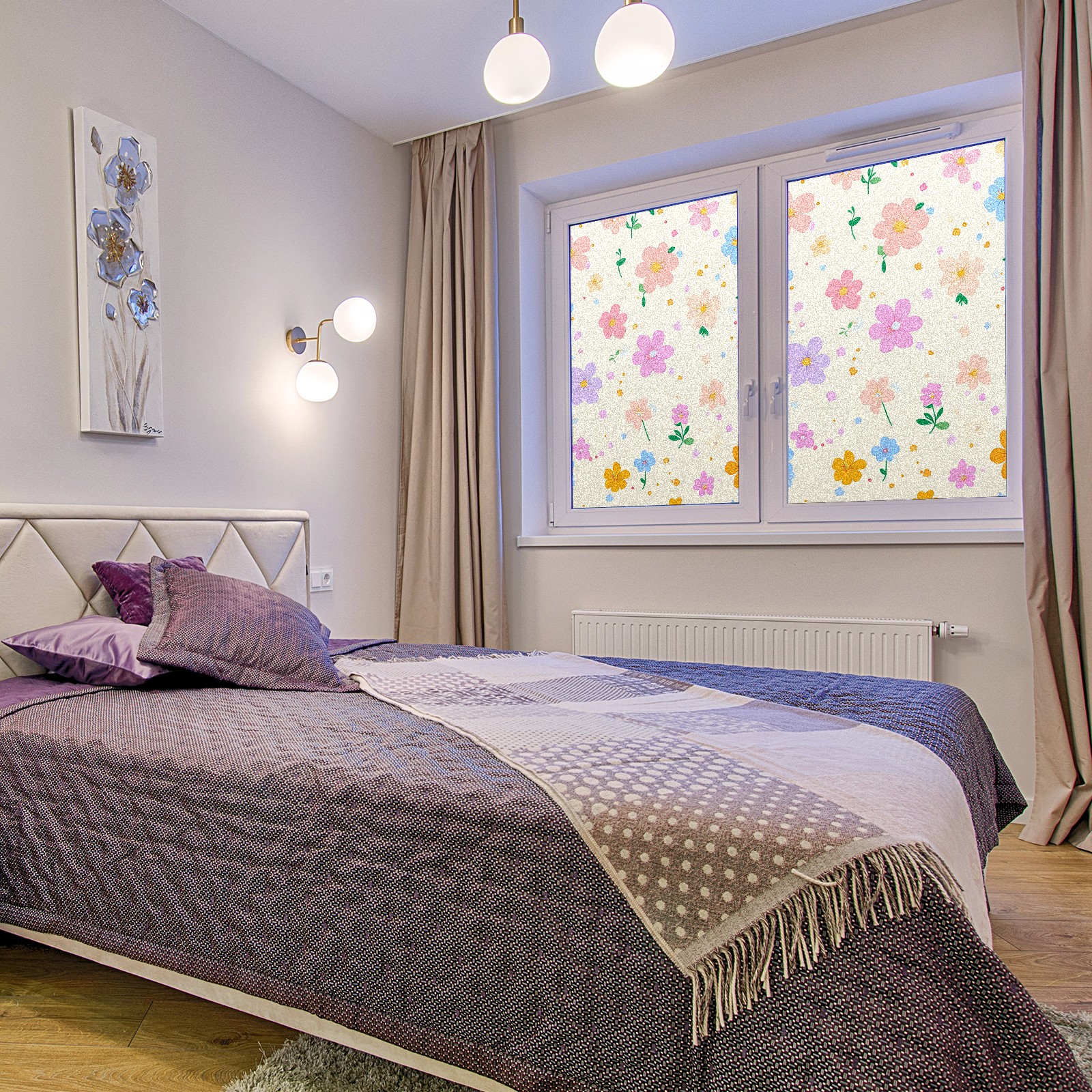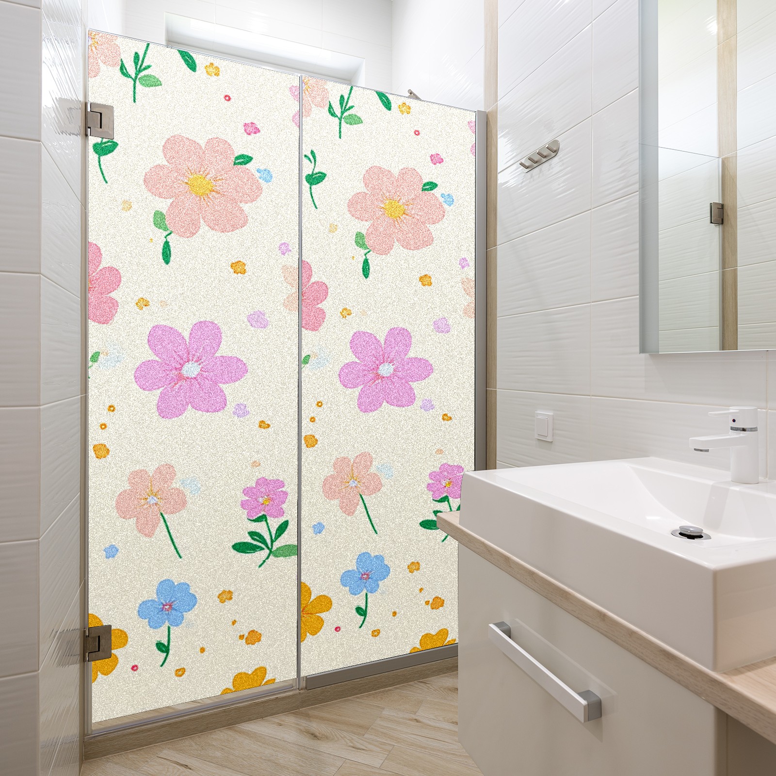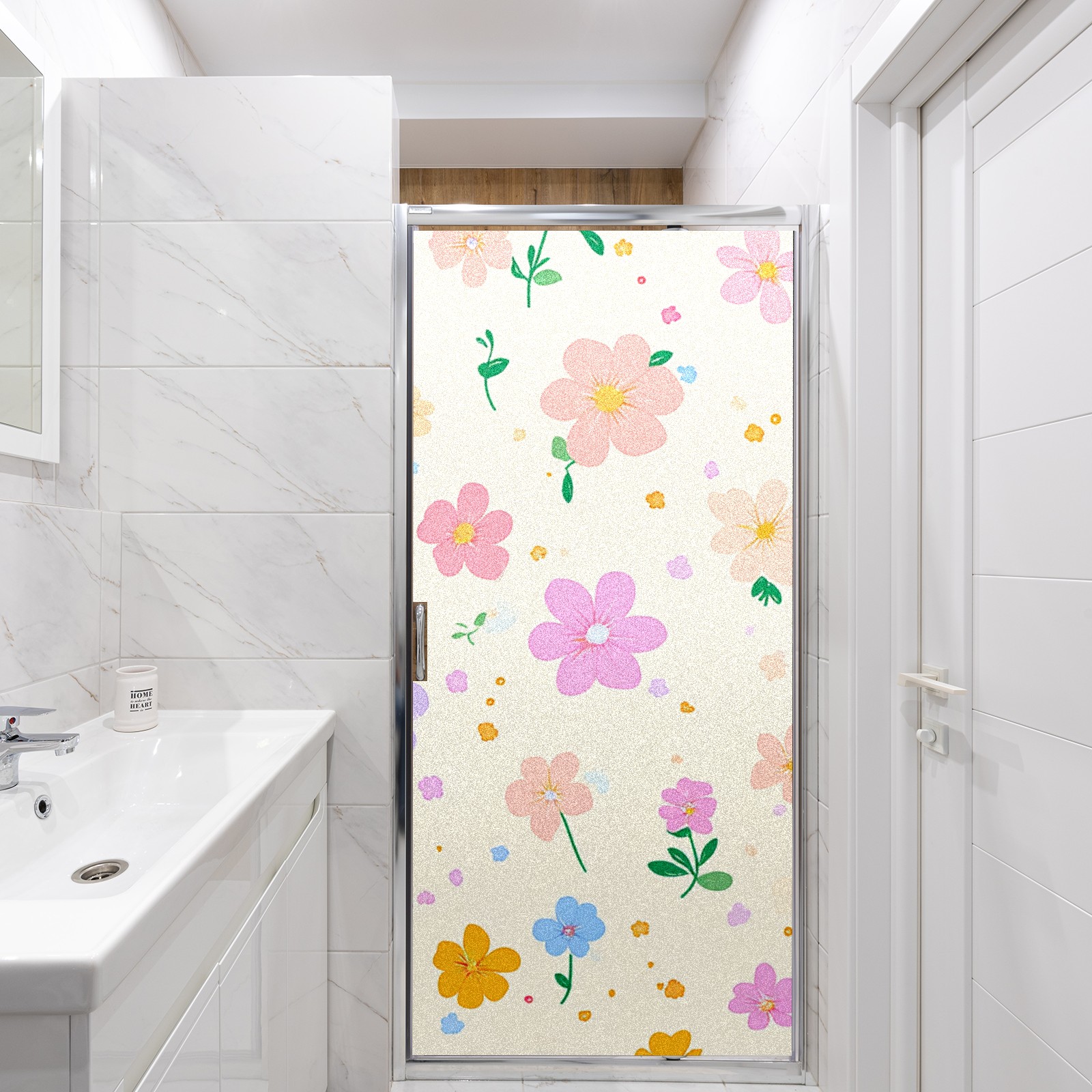 Stained Glass Window Film - Decorative Privacy Film for Windows, Peel and Stick Window Film for Bathroom/Office/Shower, Reusable and Easy to Cut 17.7"x23.6" (Spring Flowers)