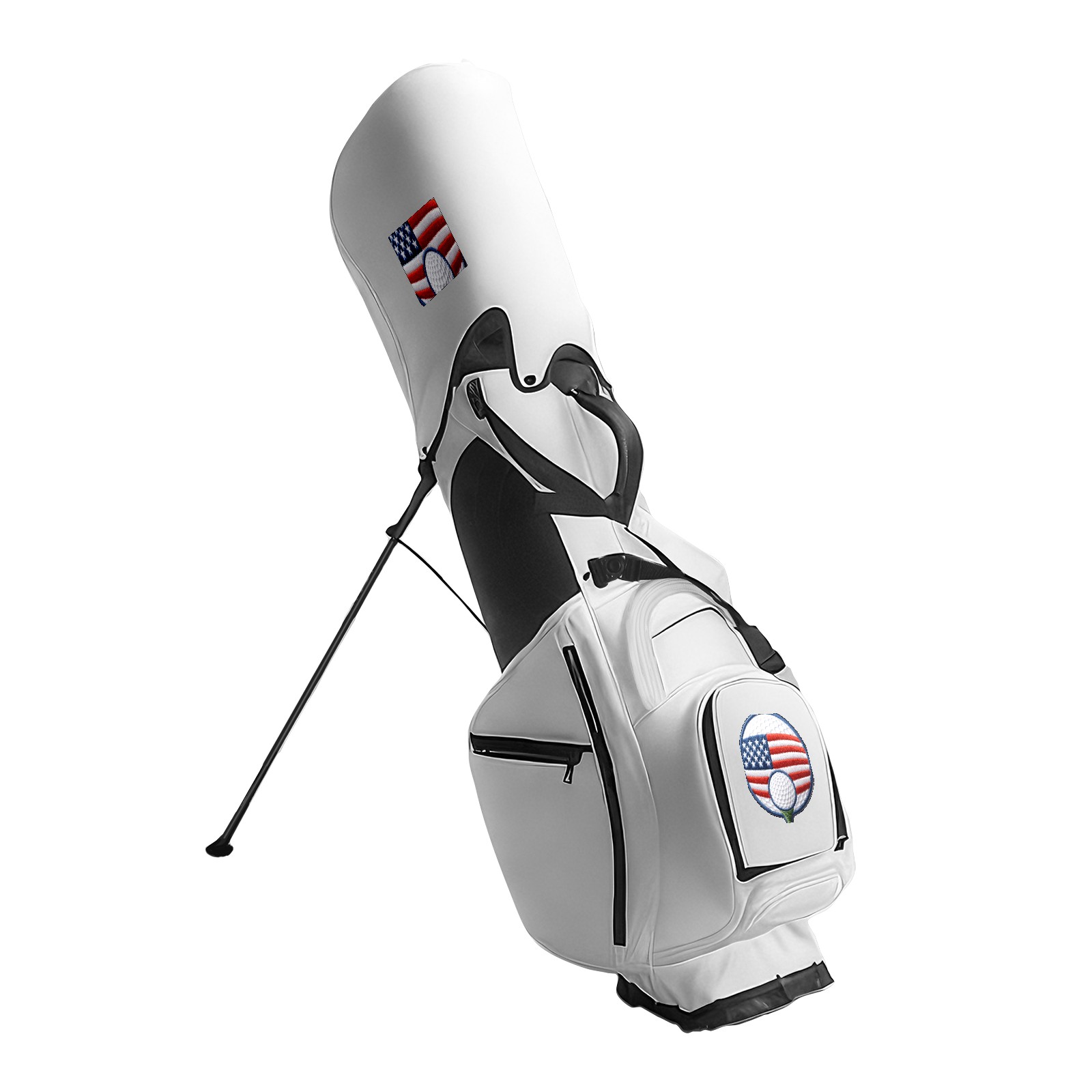 Golf Stand Bag - 5/14 Way Top Dividers, Ergonomic Backpack Strap, 8 Pockets with Cooler, Waterproof Lichee PU Leather, Customizable 15x15cm, Black/White, Includes Rain Cover & Dust Bag