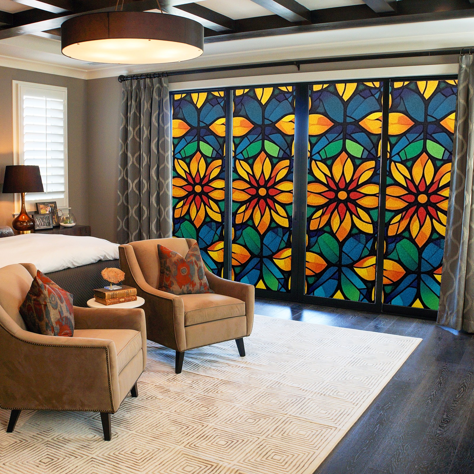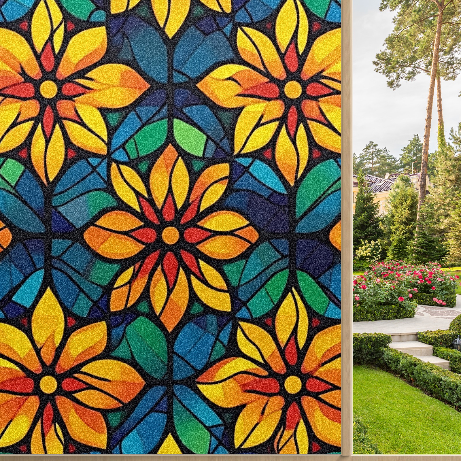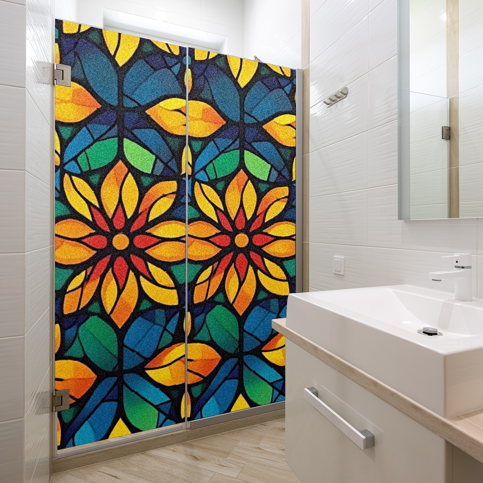 Stained Glass Window Film - Decorative Privacy Film for Windows, Peel and Stick Window Film for Bathroom/Office/Shower, Reusable and Easy to Cut 17.7"x23.6" (Seamless Pattern)