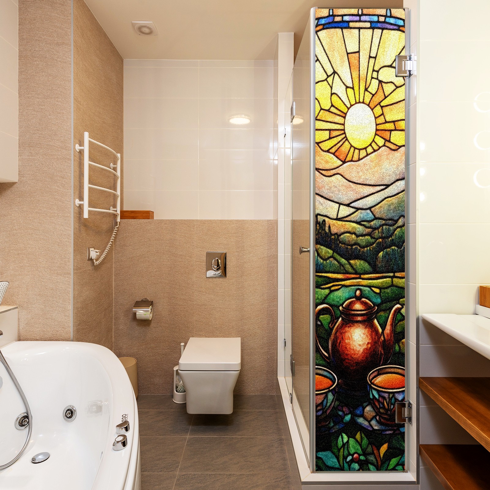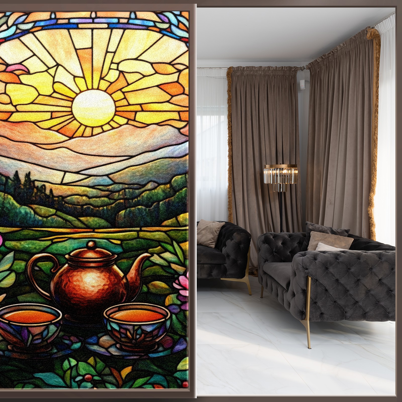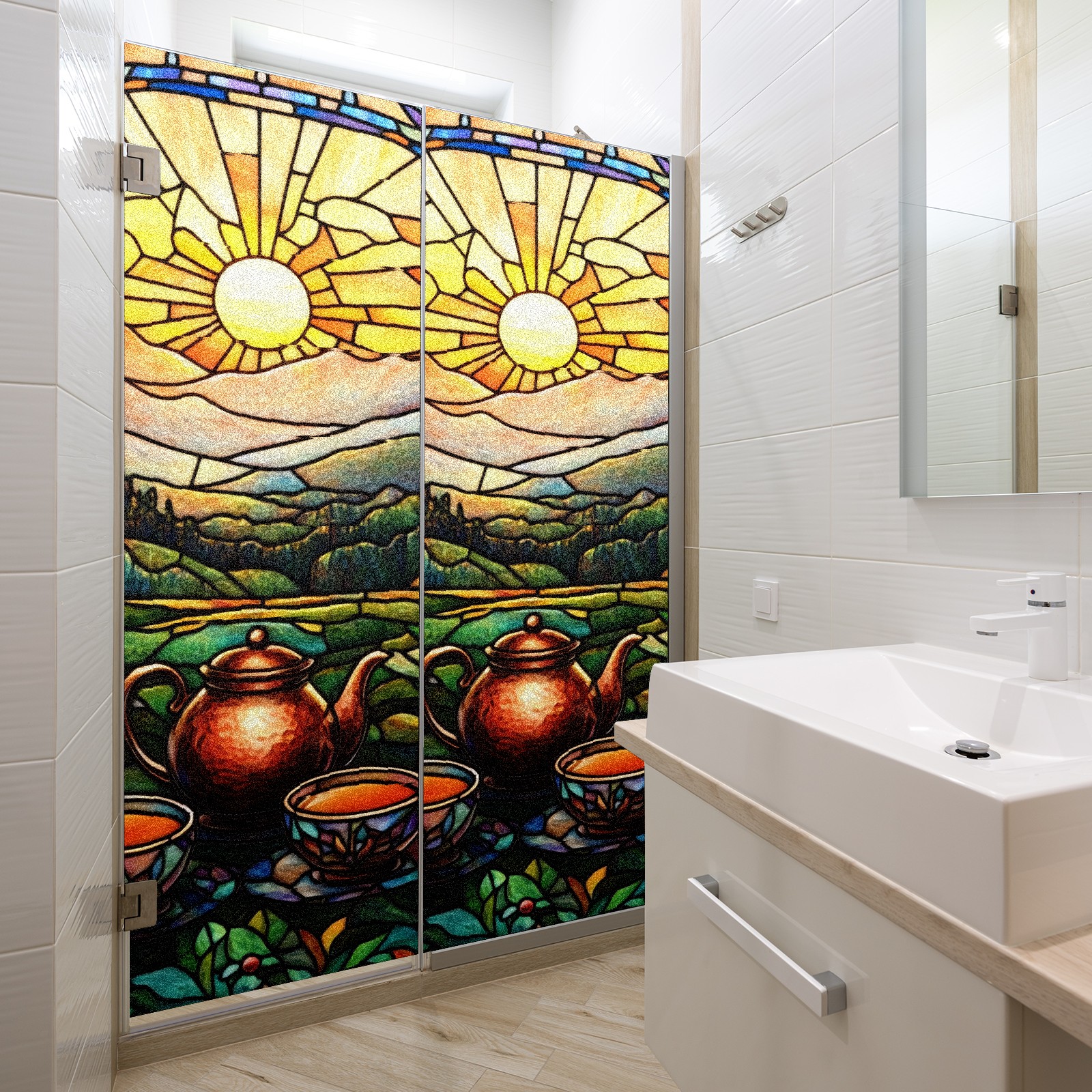 Stained Glass Window Film - Decorative Privacy Film for Windows, Peel and Stick Window Film for Bathroom/Office/Shower, Reusable and Easy to Cut 17.7"x23.6" (Sun Rising)