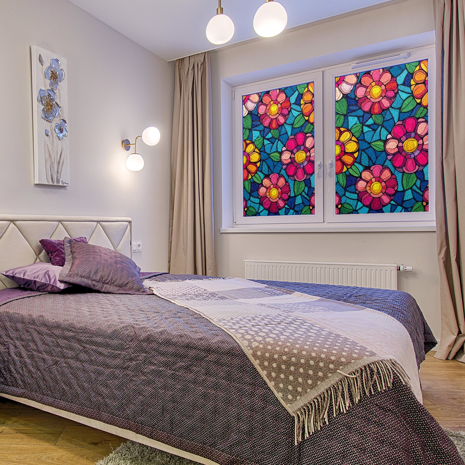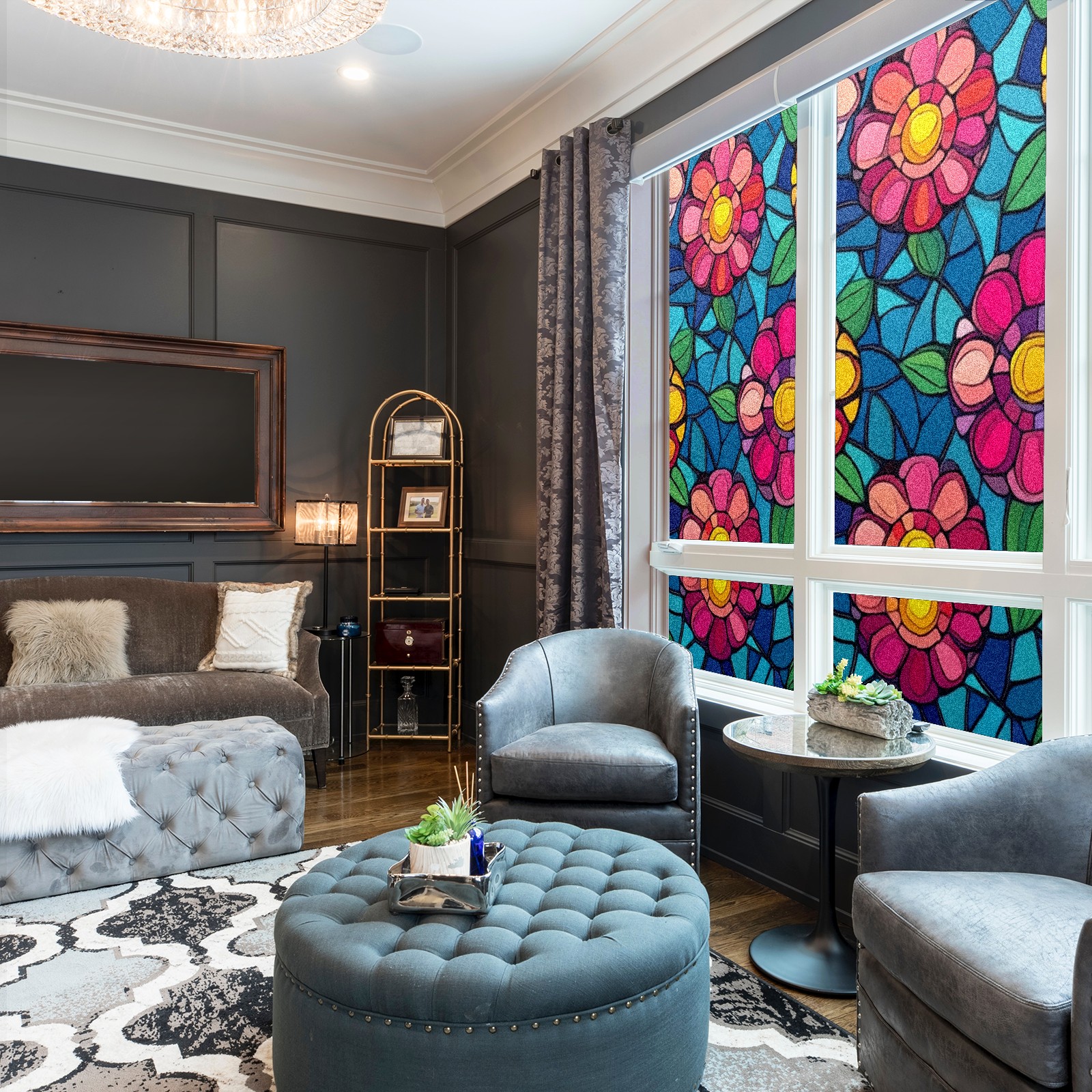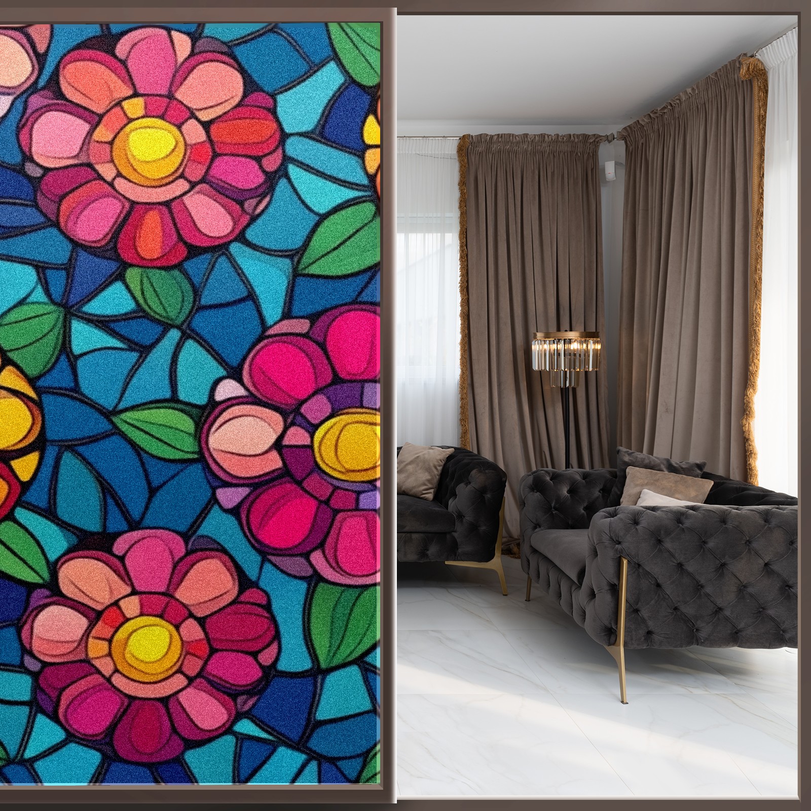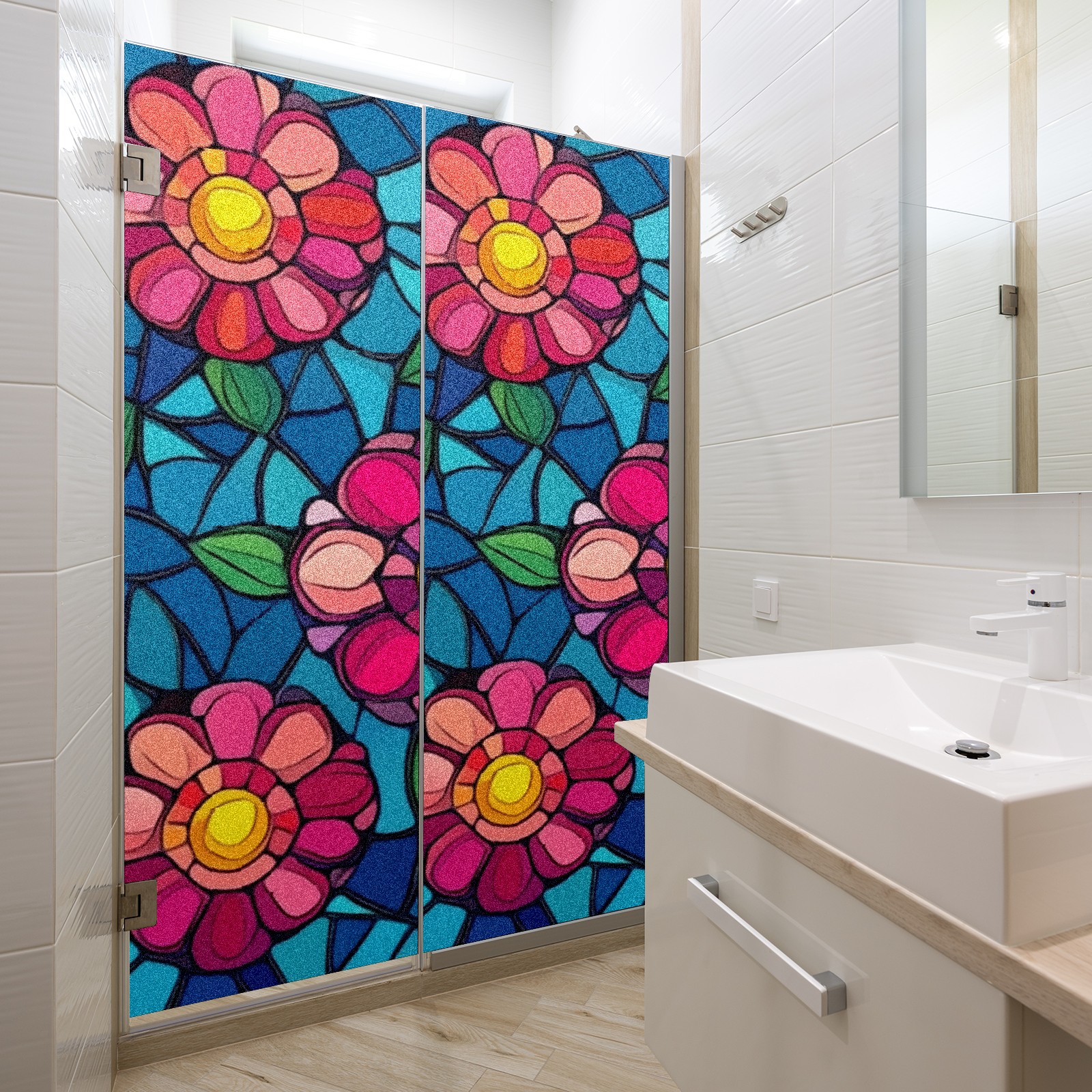 Stained Glass Window Film - Decorative Privacy Film for Windows, Peel and Stick Window Film for Bathroom/Office/Shower, Reusable and Easy to Cut 17.7"x23.6" (Pink Floral)