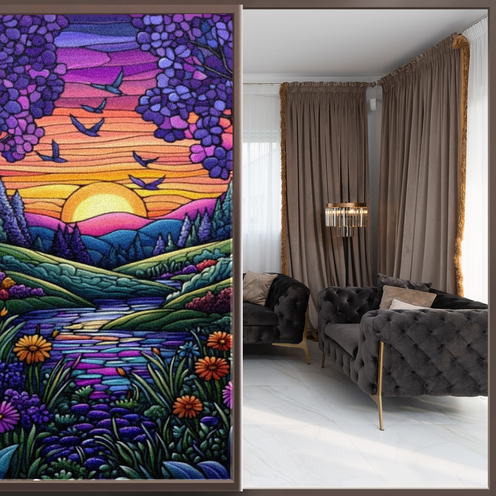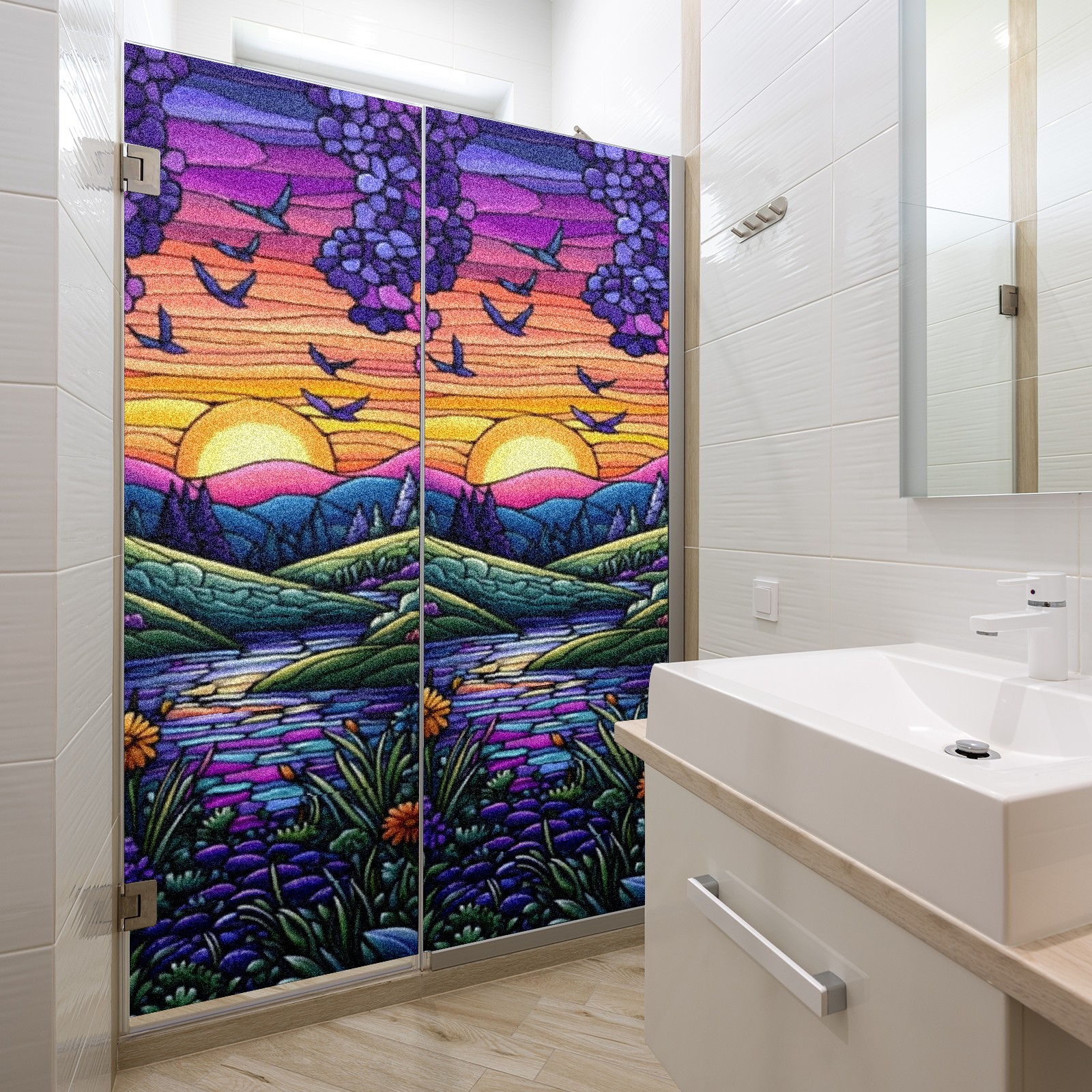 Stained Glass Window Film - Decorative Privacy Film for Windows, Peel and Stick Window Film for Bathroom/Office/Shower, Reusable and Easy to Cut 17.7"x23.6" (Purple And Blue Sunset)