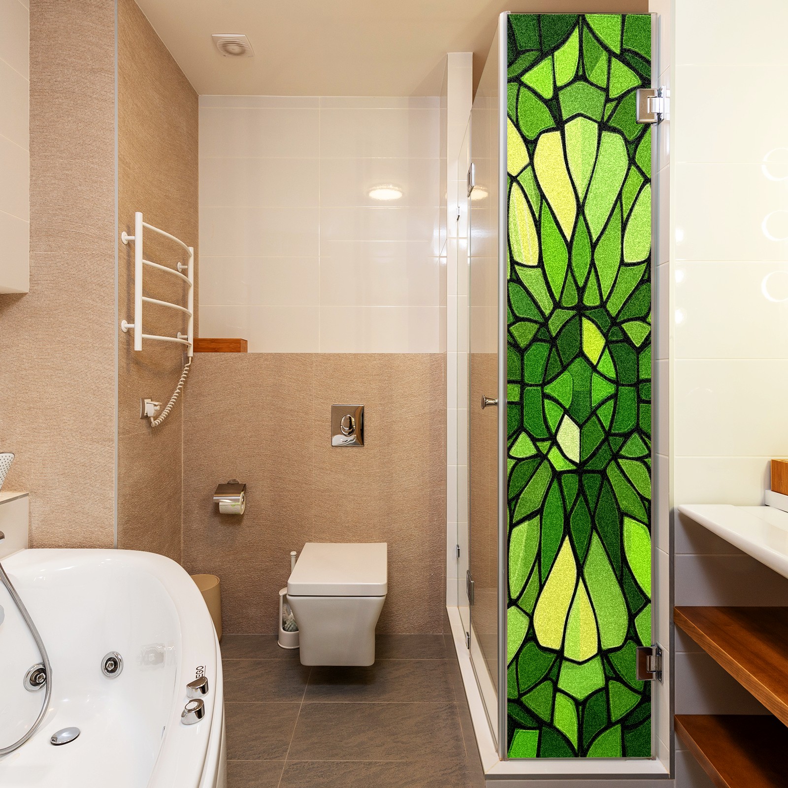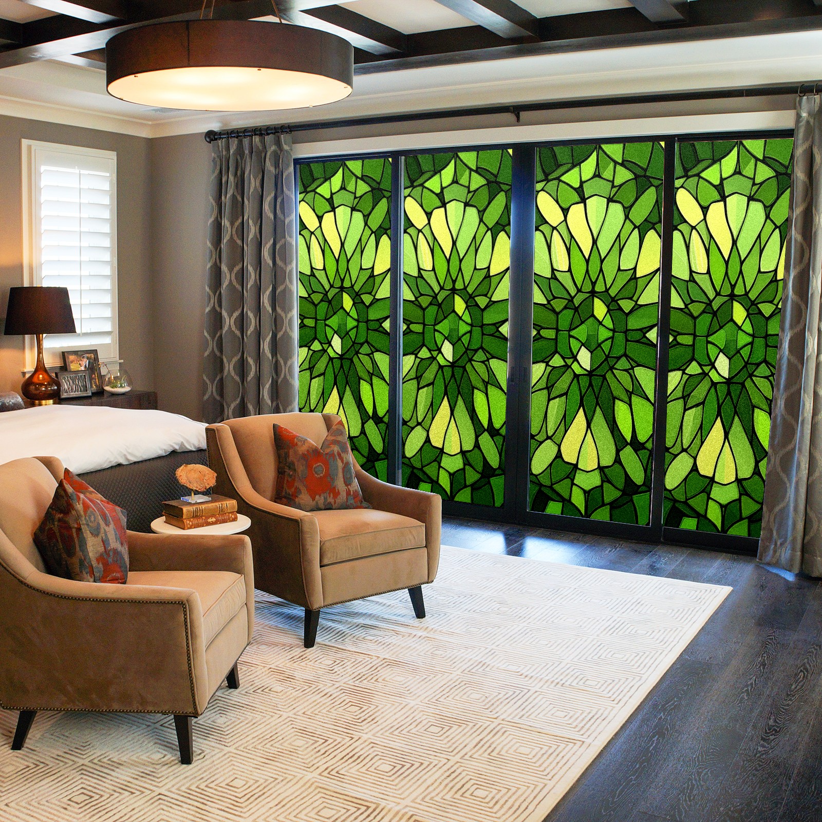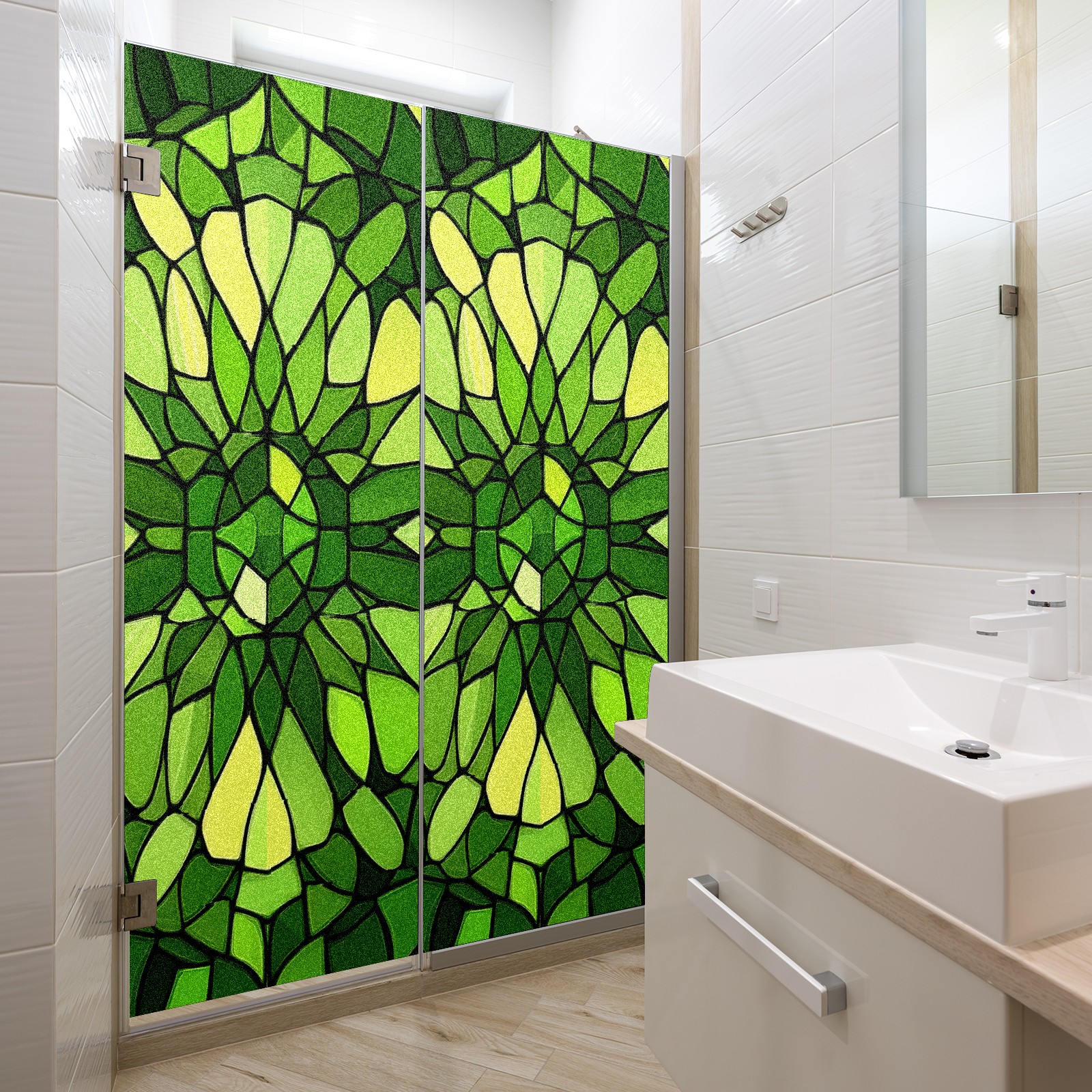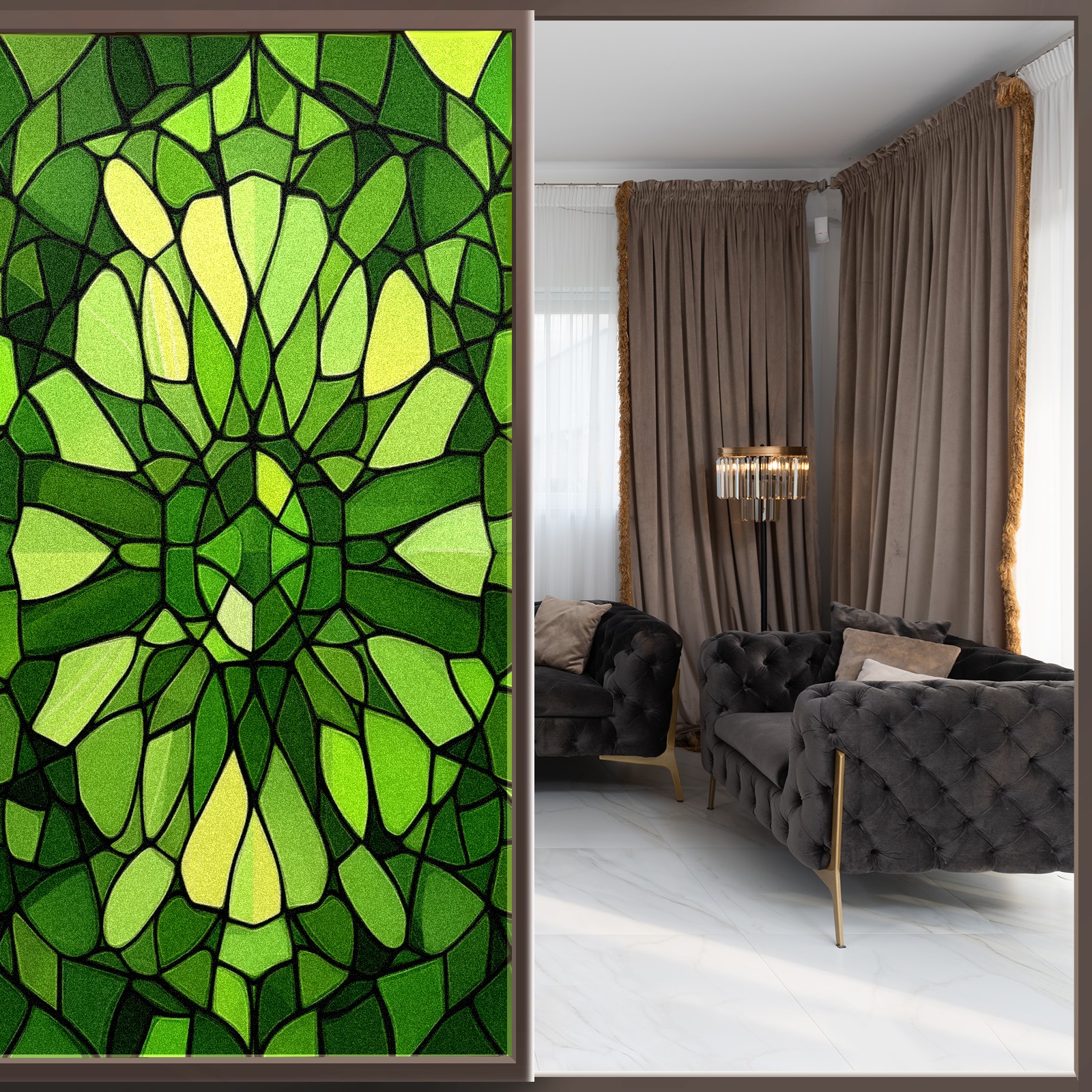Stained Glass Window Film - Decorative Privacy Film for Windows, Peel and Stick Window Film for Bathroom/Office/Shower, Reusable and Easy to Cut 17.7"x23.6" (Green Stained Glass)