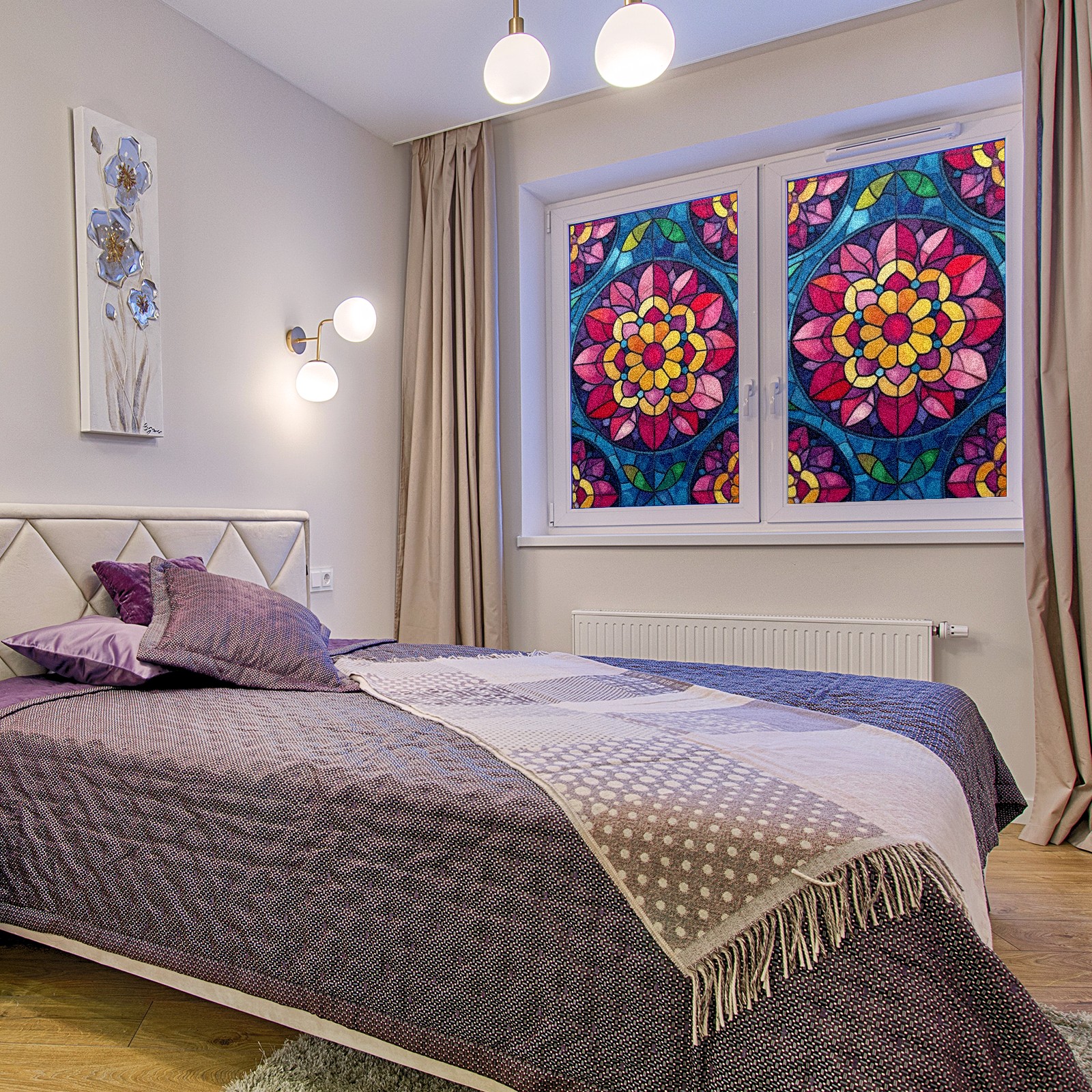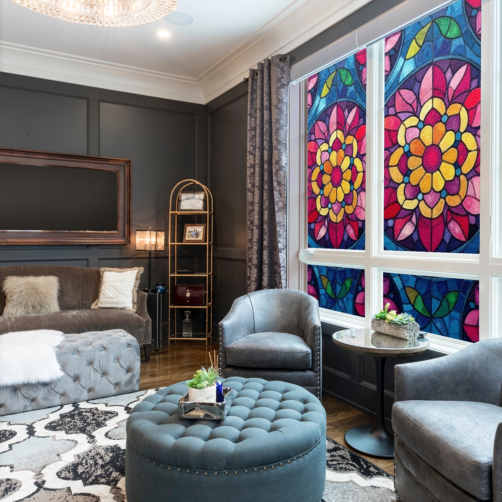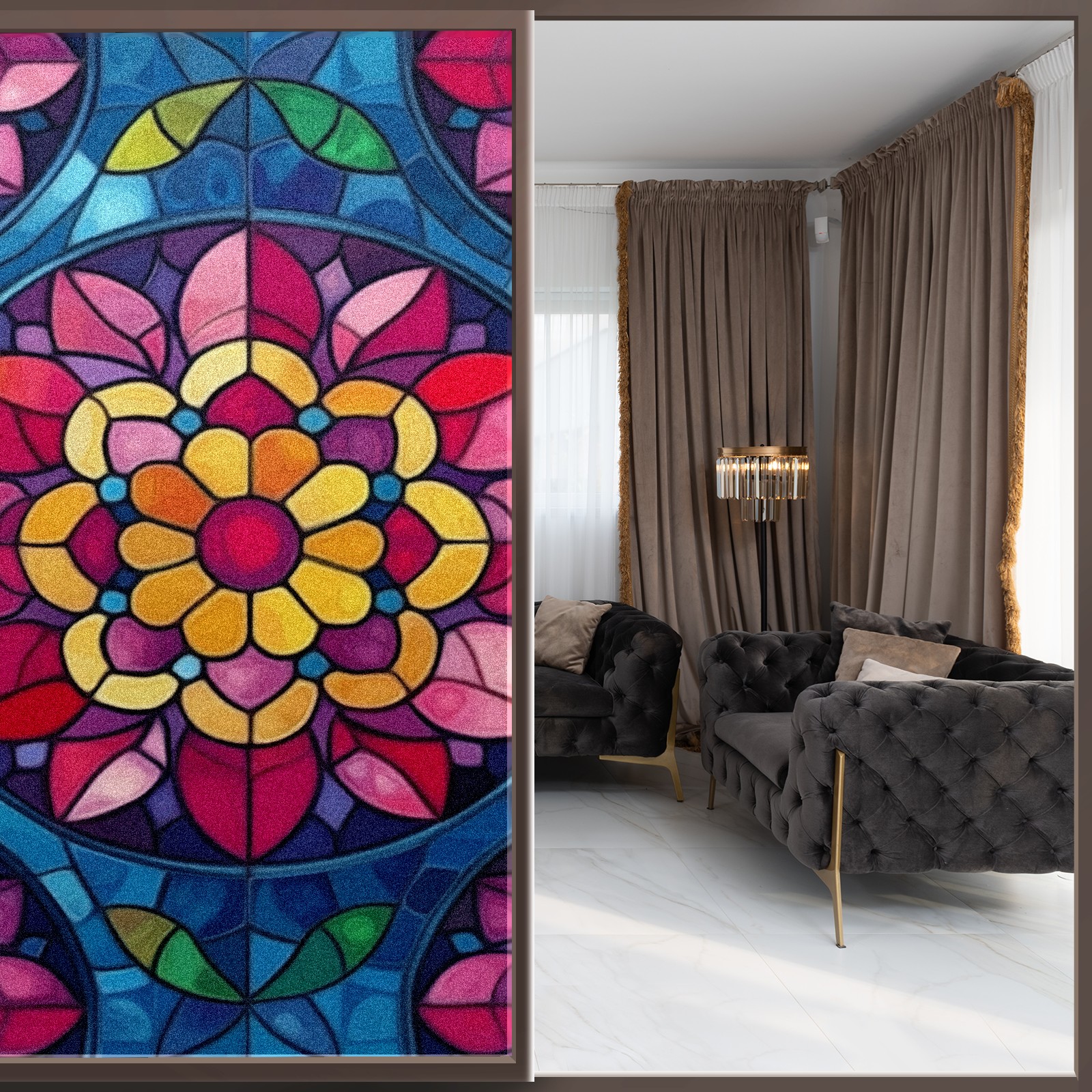 Stained Glass Window Film - Decorative Privacy Film for Windows, Peel and Stick Window Film for Bathroom/Office/Shower, Reusable and Easy to Cut 17.7"x23.6" (Pink Flower)