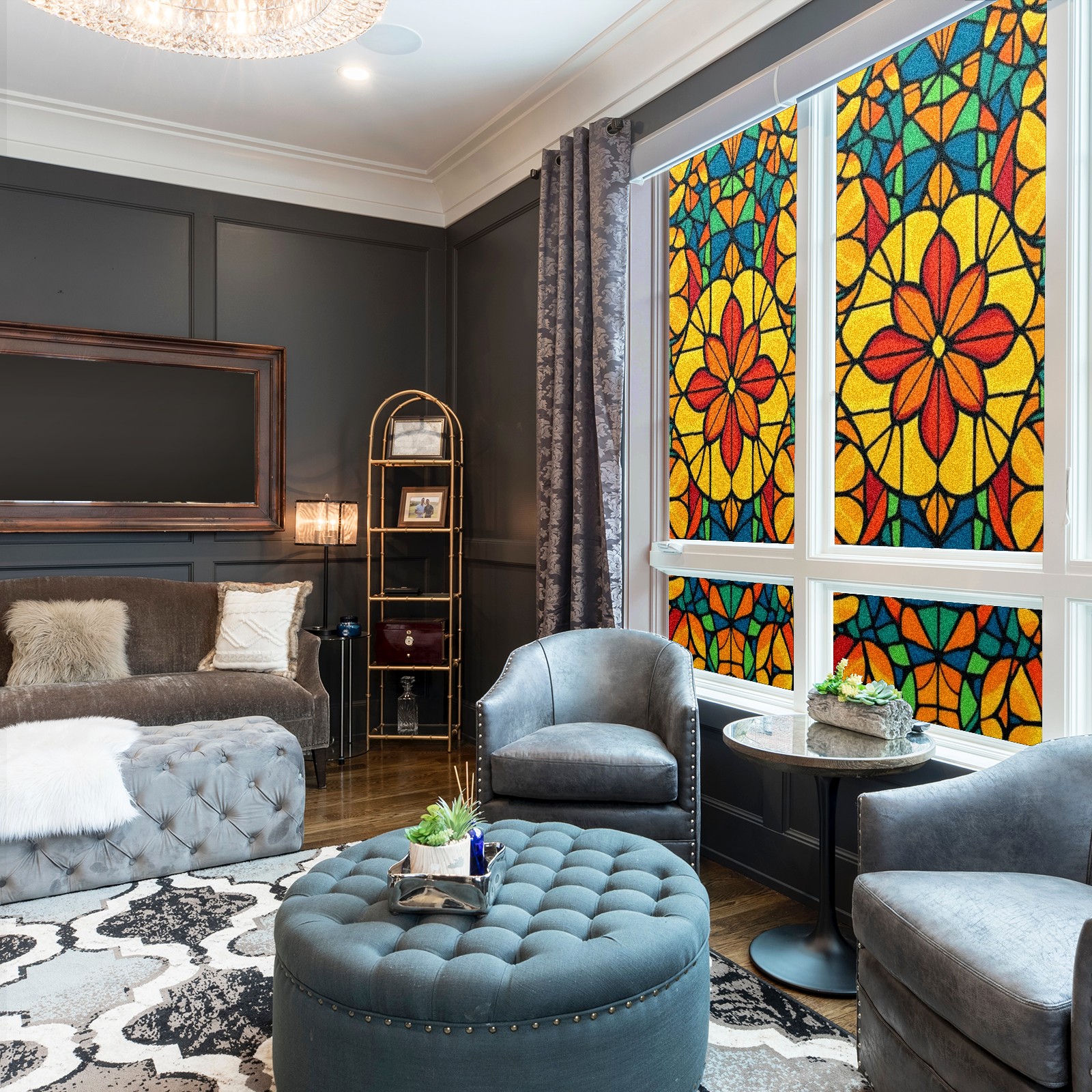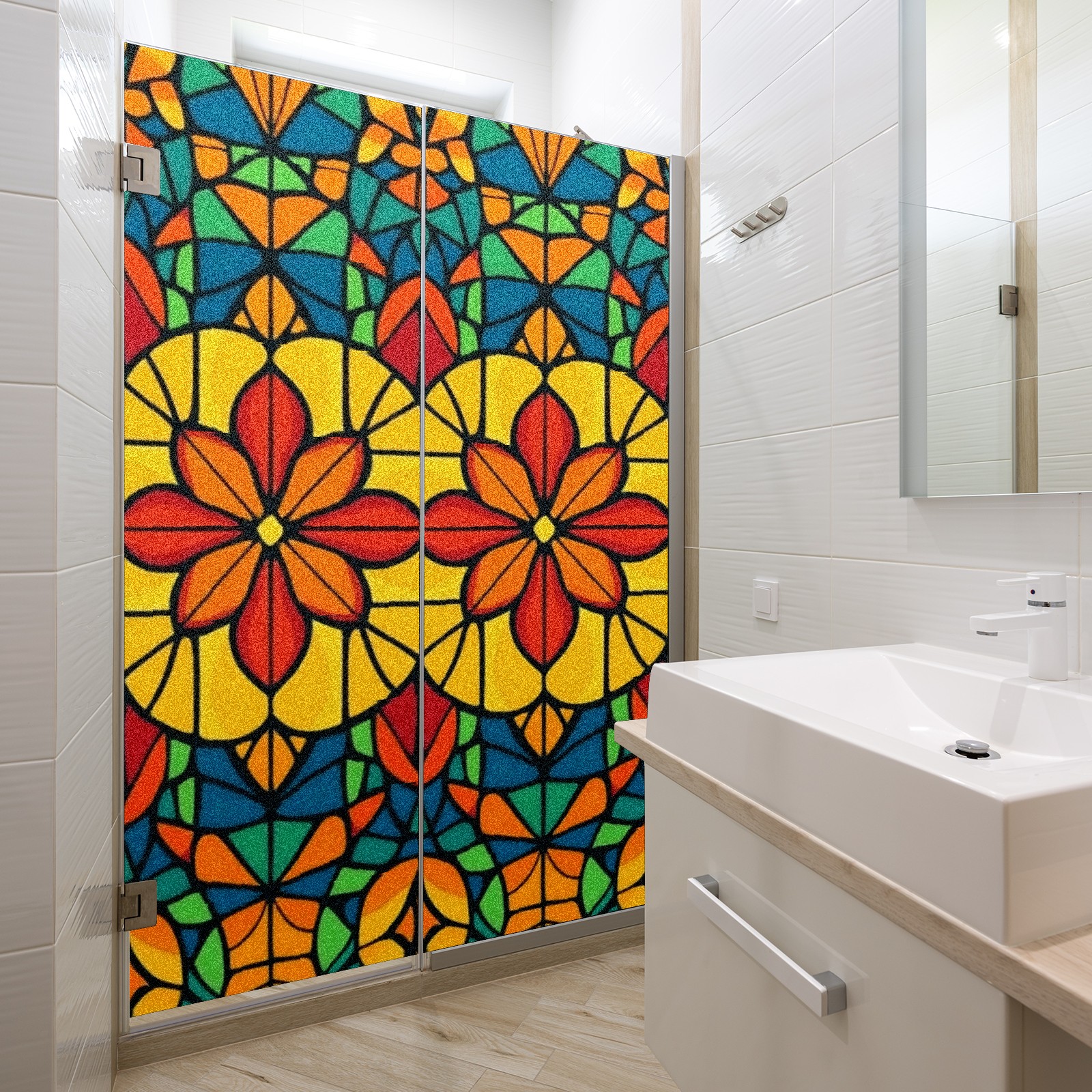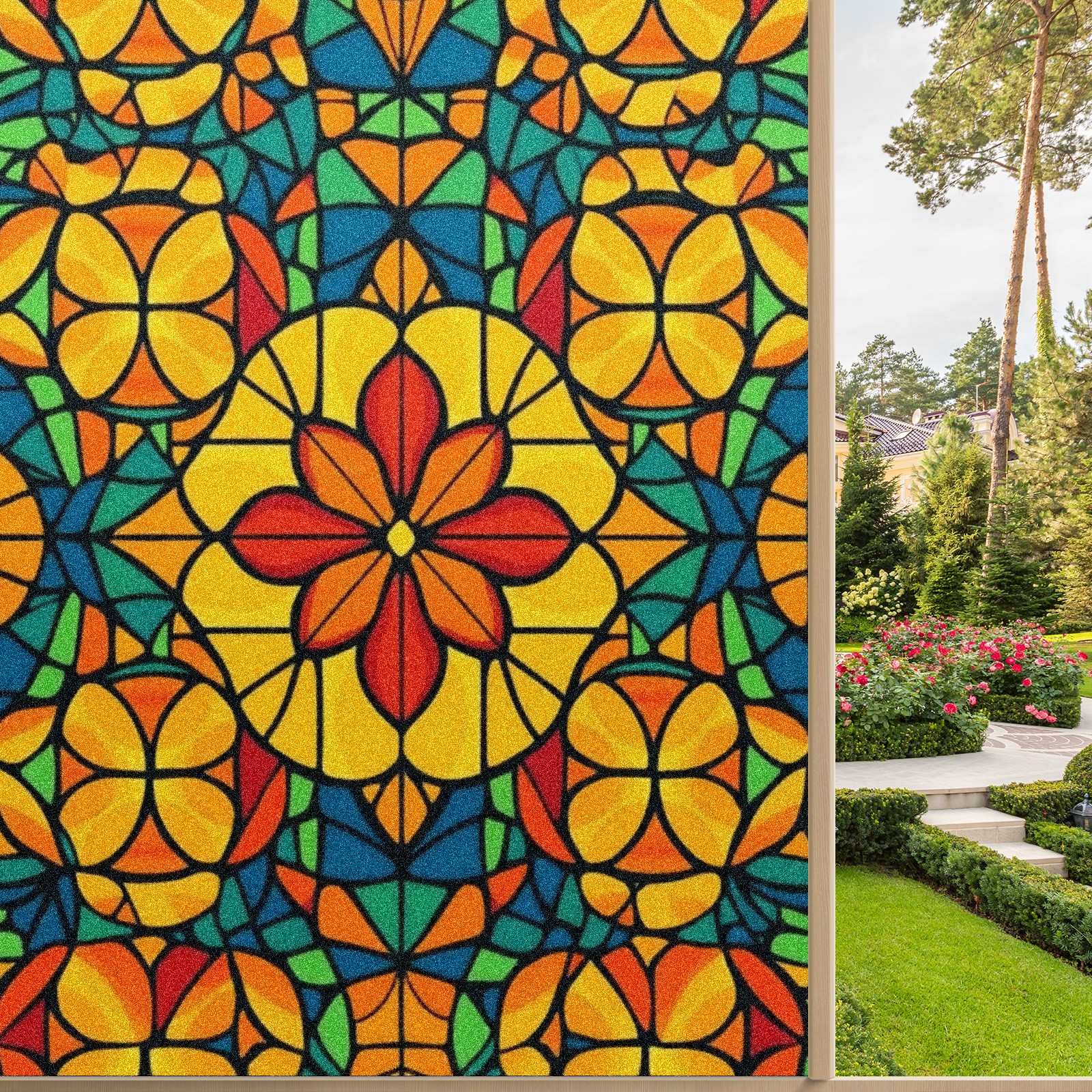 Stained Glass Window Film - Decorative Privacy Film for Windows, Peel and Stick Window Film for Bathroom/Office/Shower, Reusable and Easy to Cut 17.7"x23.6" (Colorful Stained Glass)