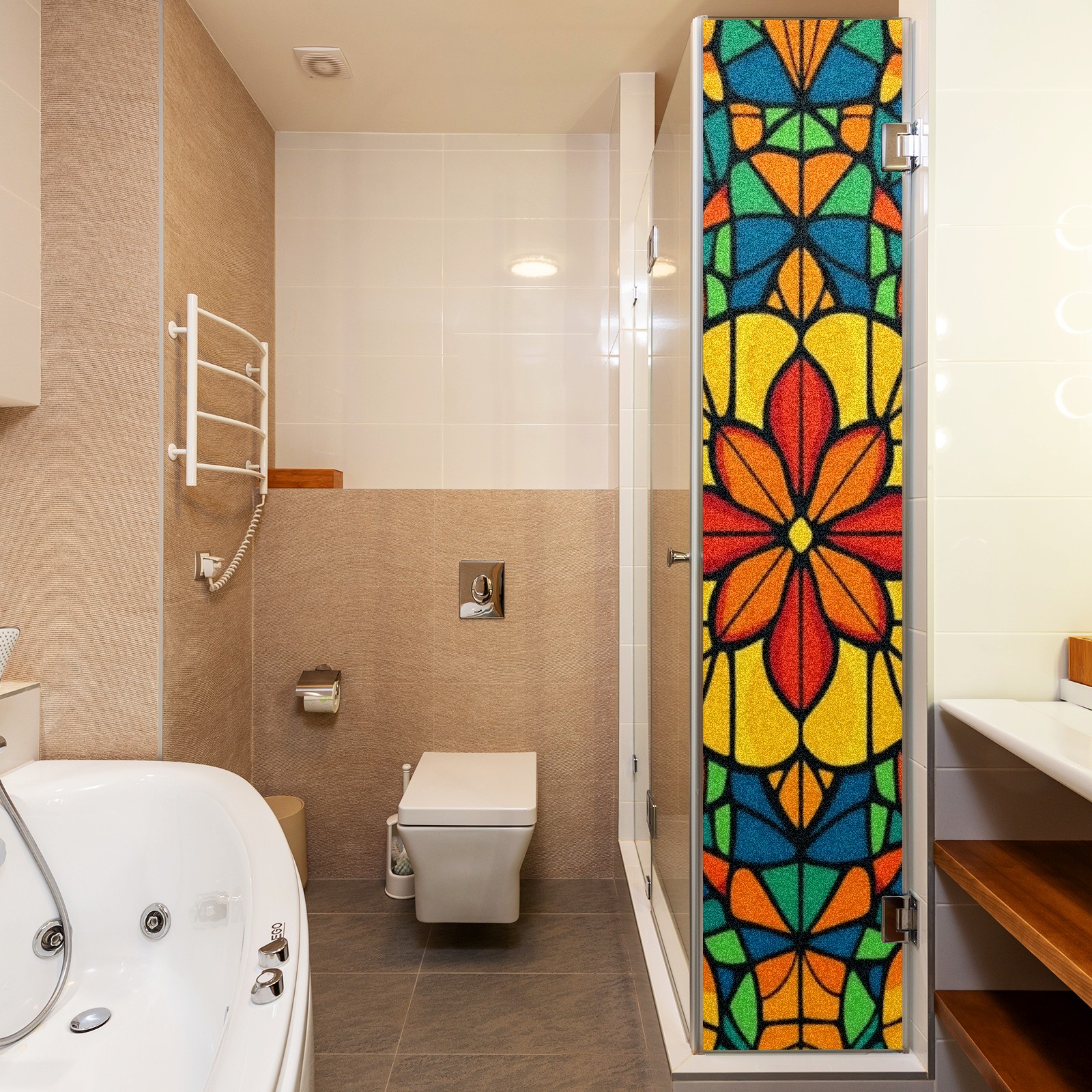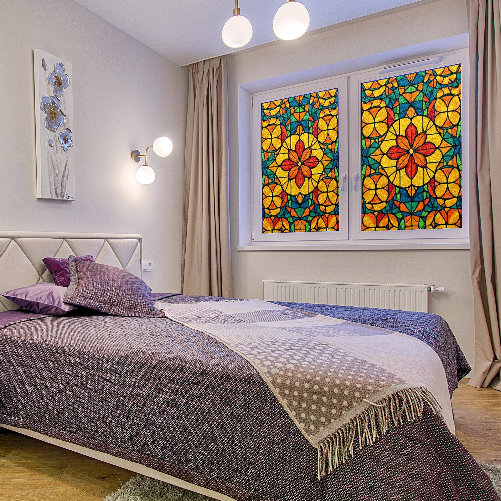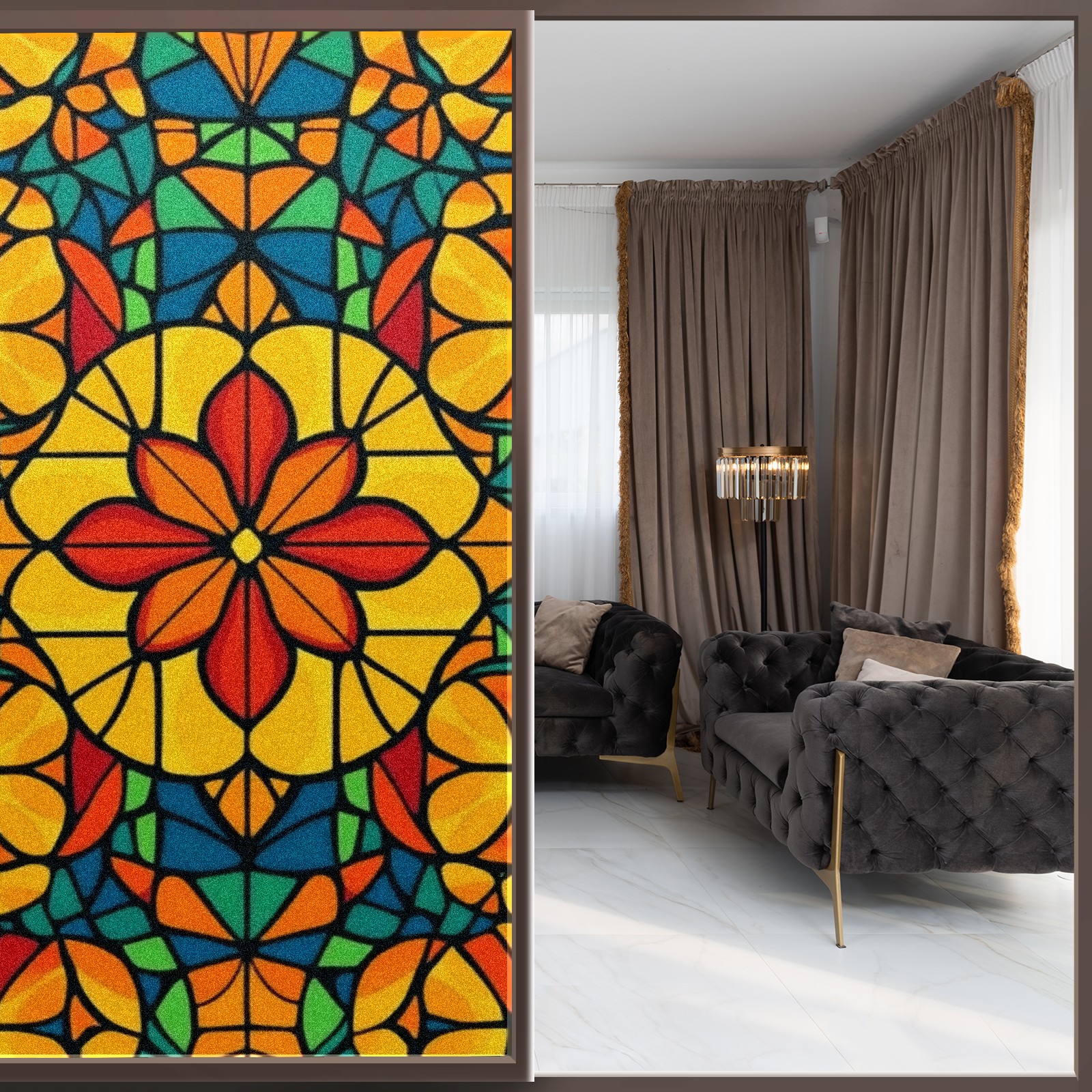 Stained Glass Window Film - Decorative Privacy Film for Windows, Peel and Stick Window Film for Bathroom/Office/Shower, Reusable and Easy to Cut 17.7"x23.6" (Colorful Stained Glass)