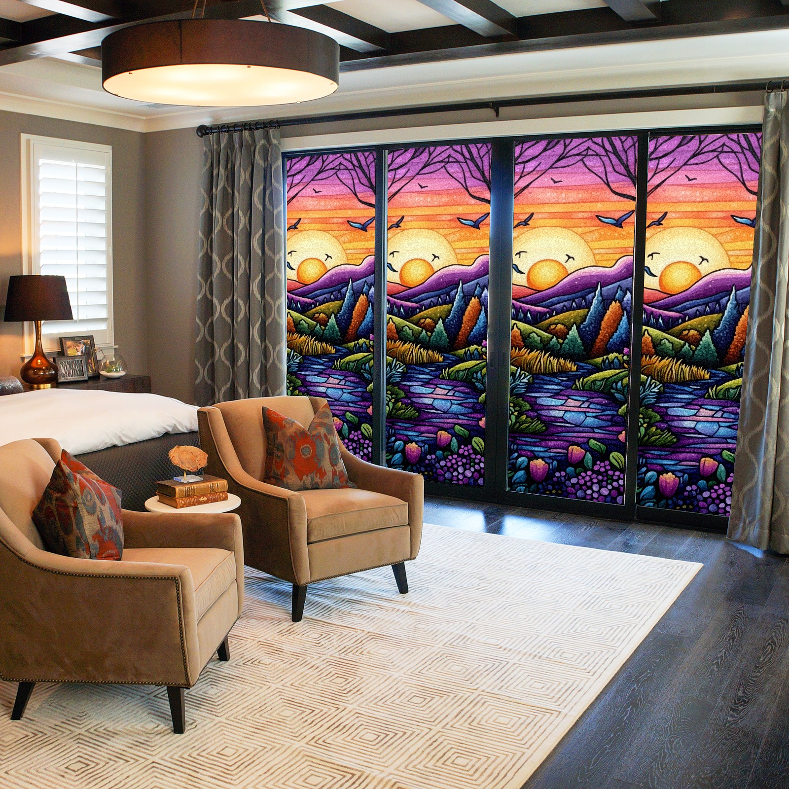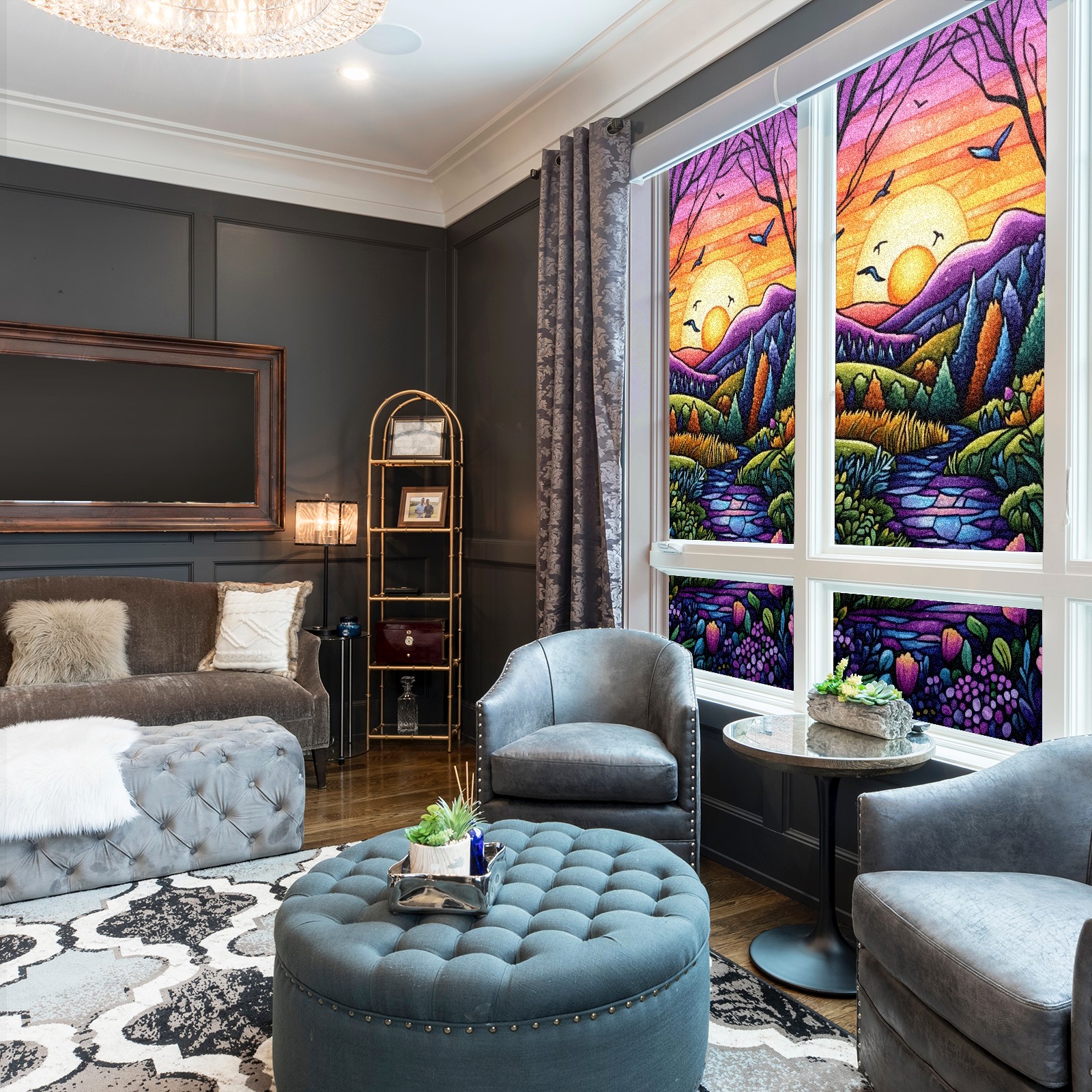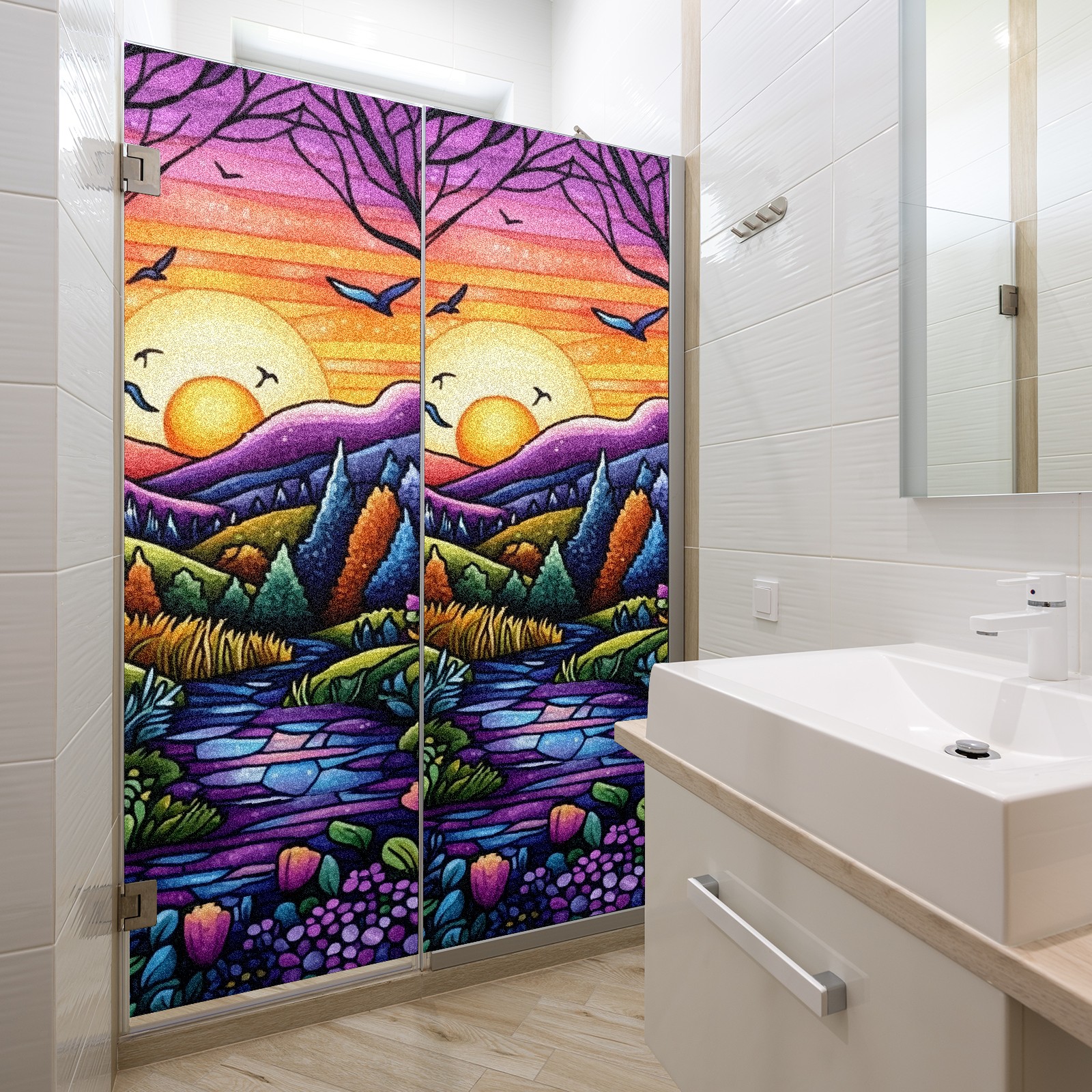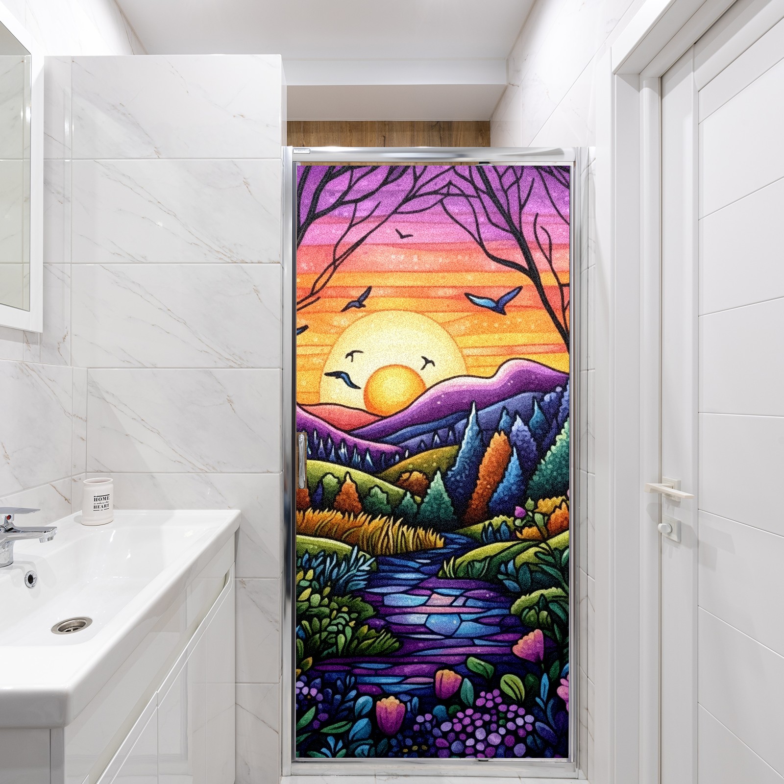 Stained Glass Window Film - Decorative Privacy Film for Windows, Peel and Stick Window Film for Bathroom/Office/Shower, Reusable and Easy to Cut 17.7"x23.6" (Beautiful Forest Scene)
