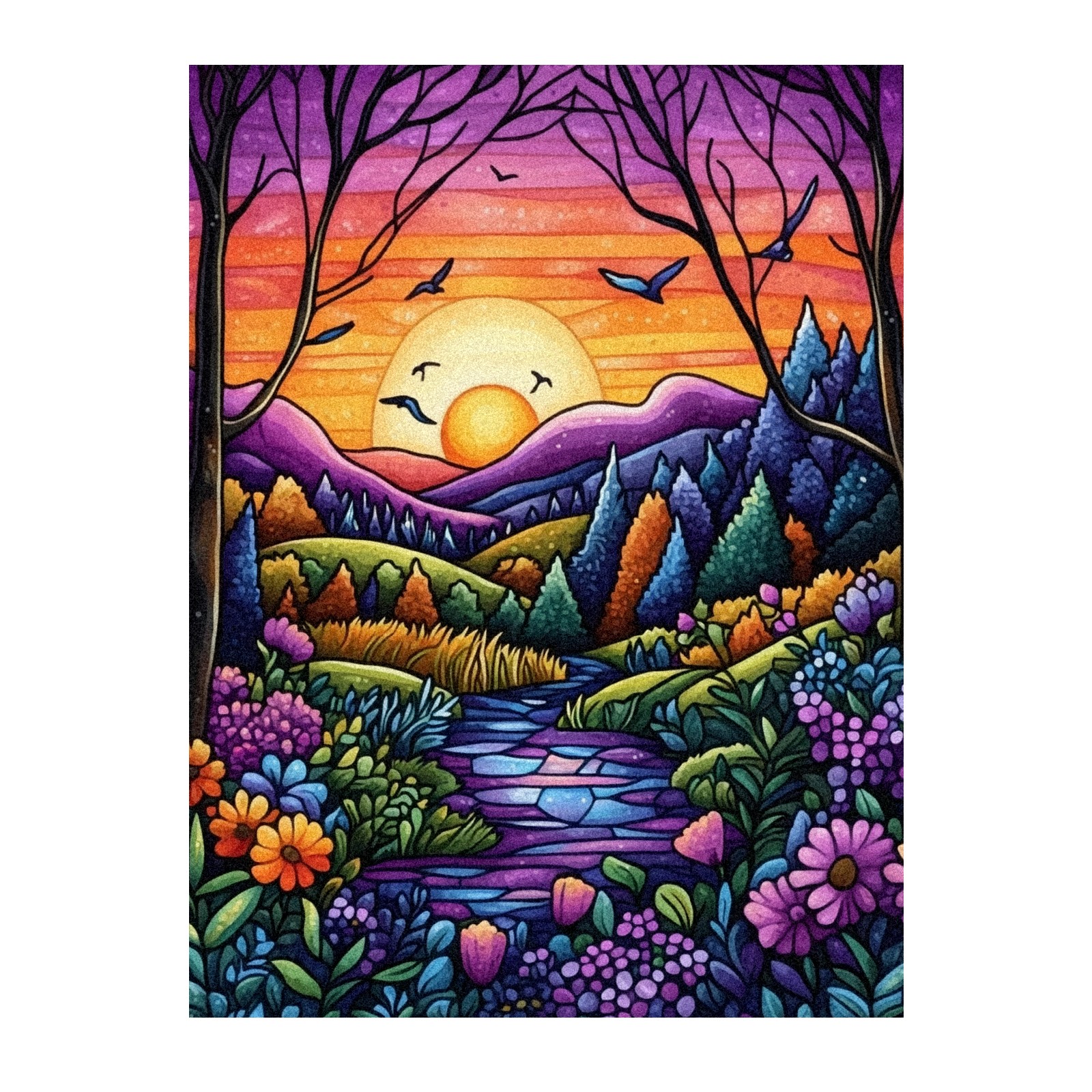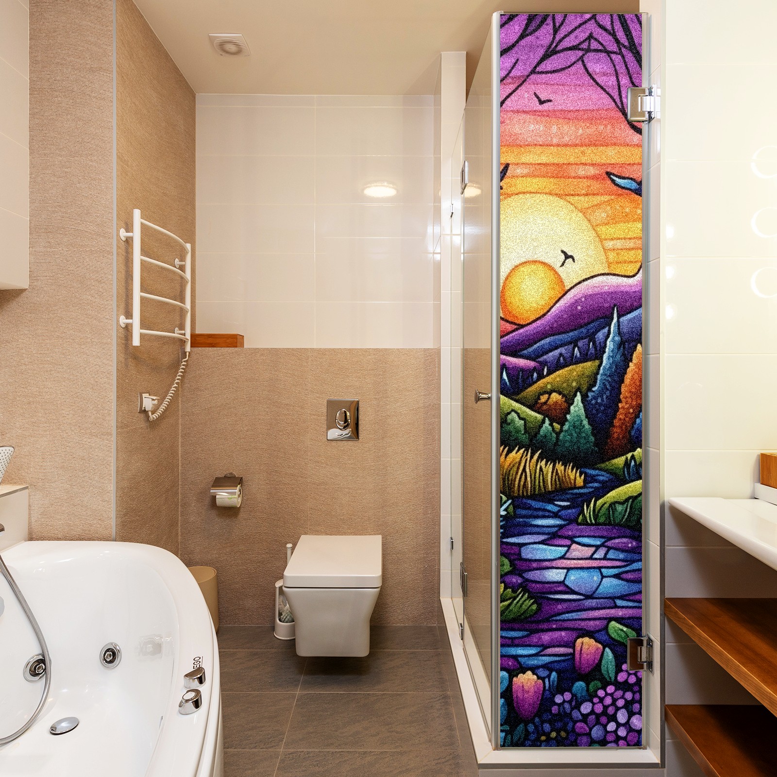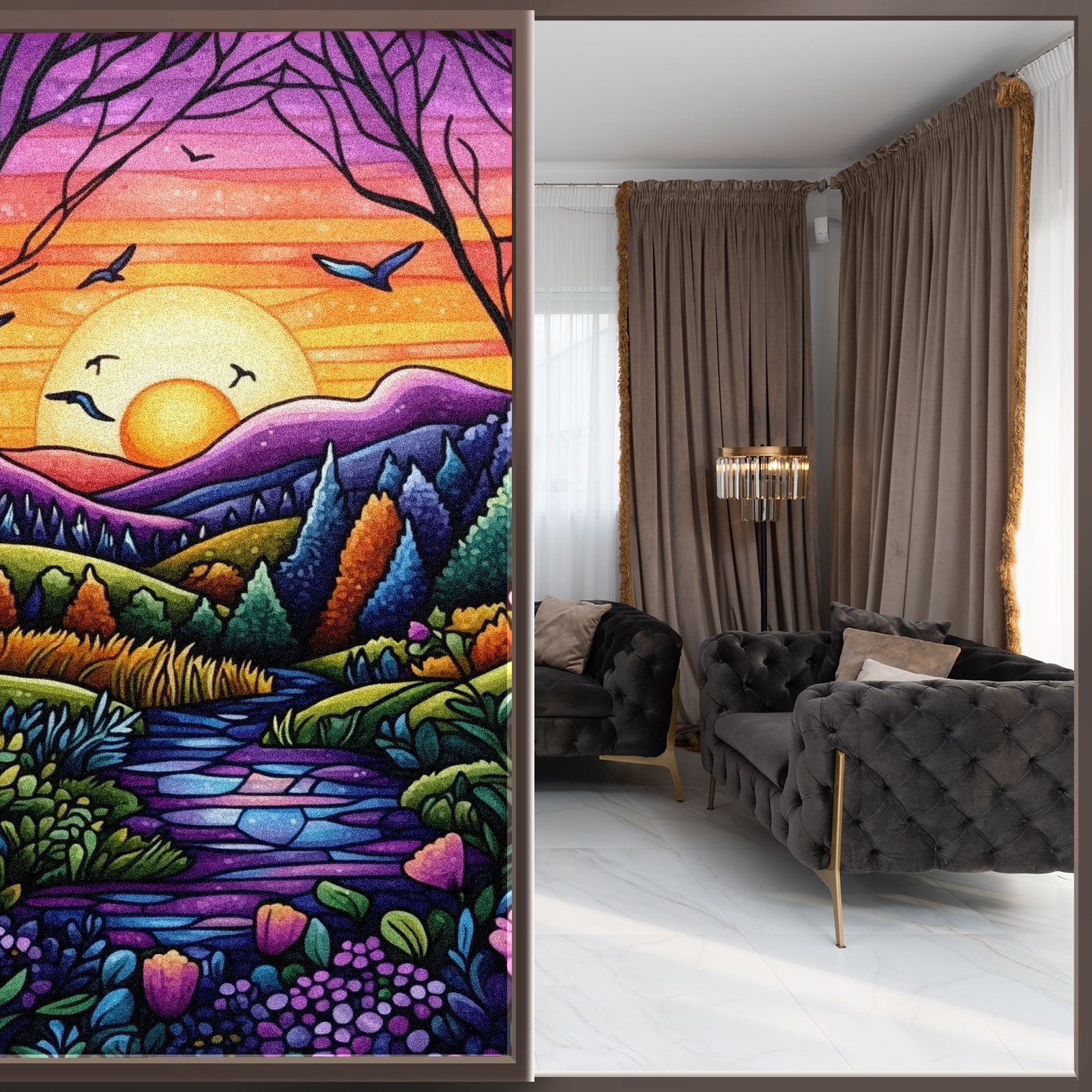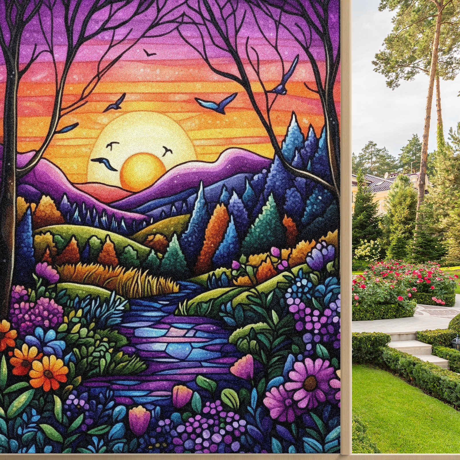 Stained Glass Window Film - Decorative Privacy Film for Windows, Peel and Stick Window Film for Bathroom/Office/Shower, Reusable and Easy to Cut 17.7"x23.6" (Beautiful Forest Scene)
