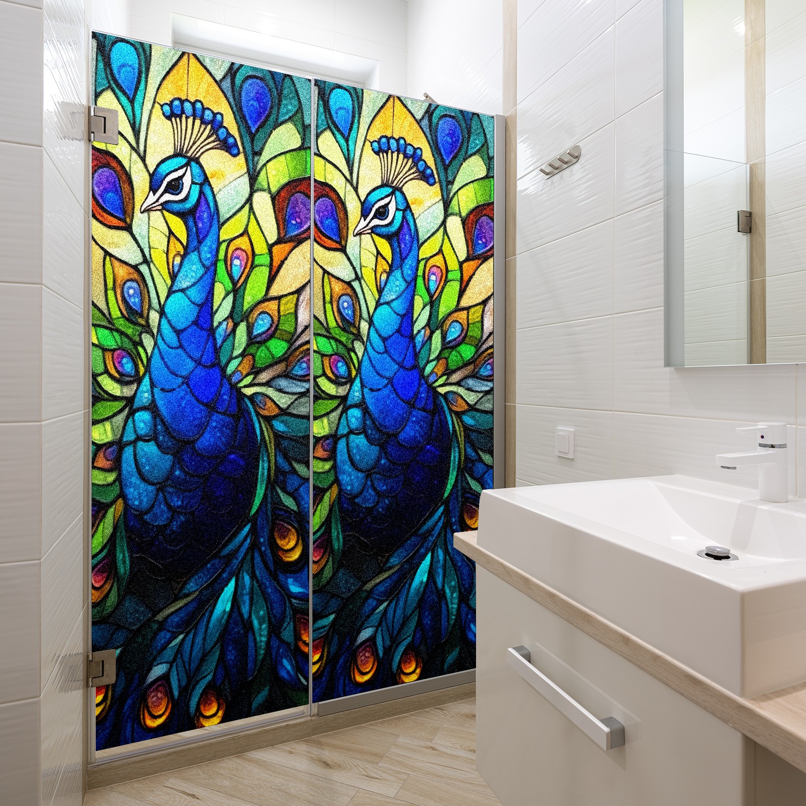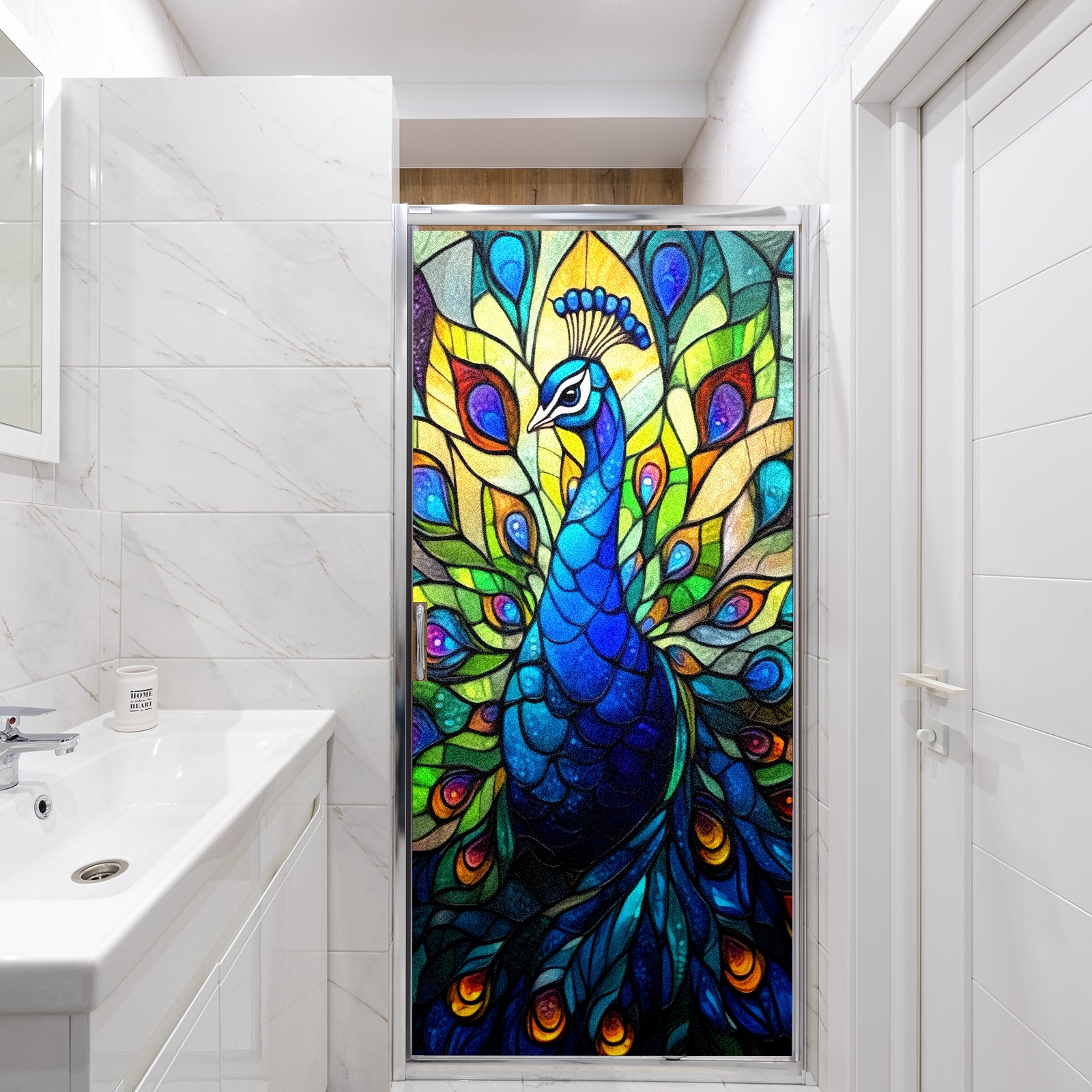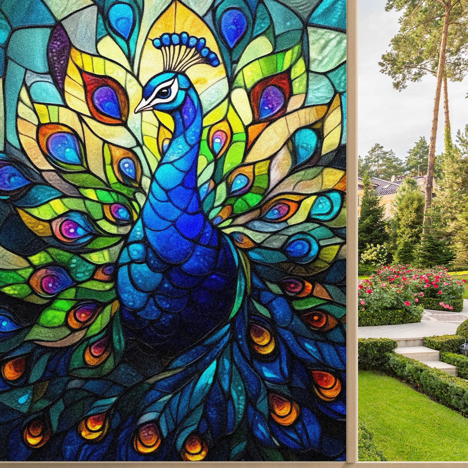 Stained Glass Window Film - Decorative Privacy Film for Windows, Peel and Stick Window Film for Bathroom/Office/Shower, Reusable and Easy to Cut 17.7"x23.6" (Peacock)