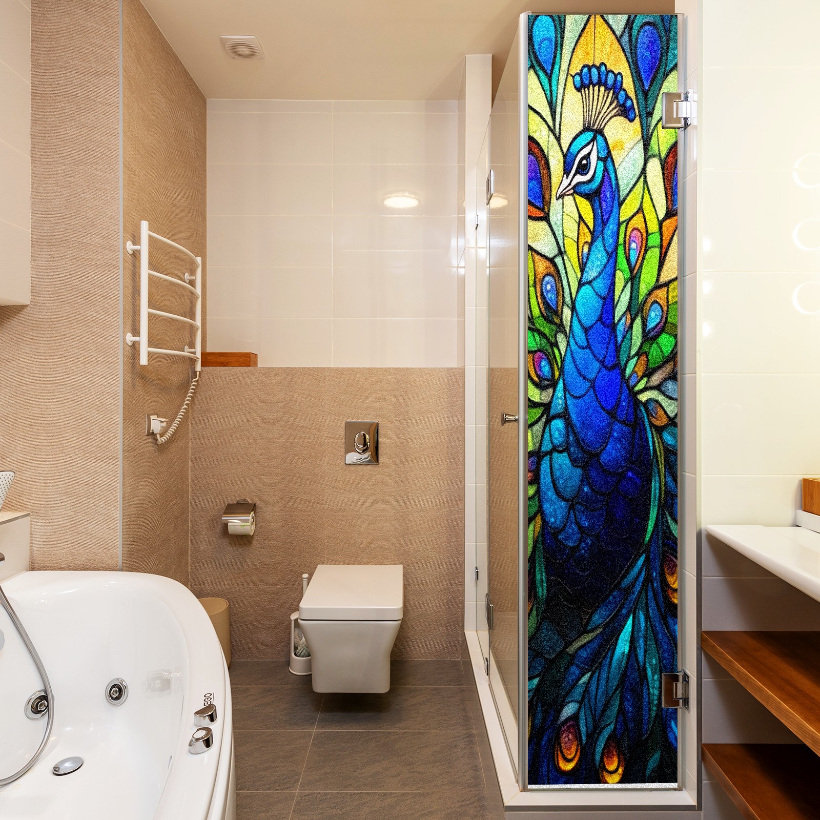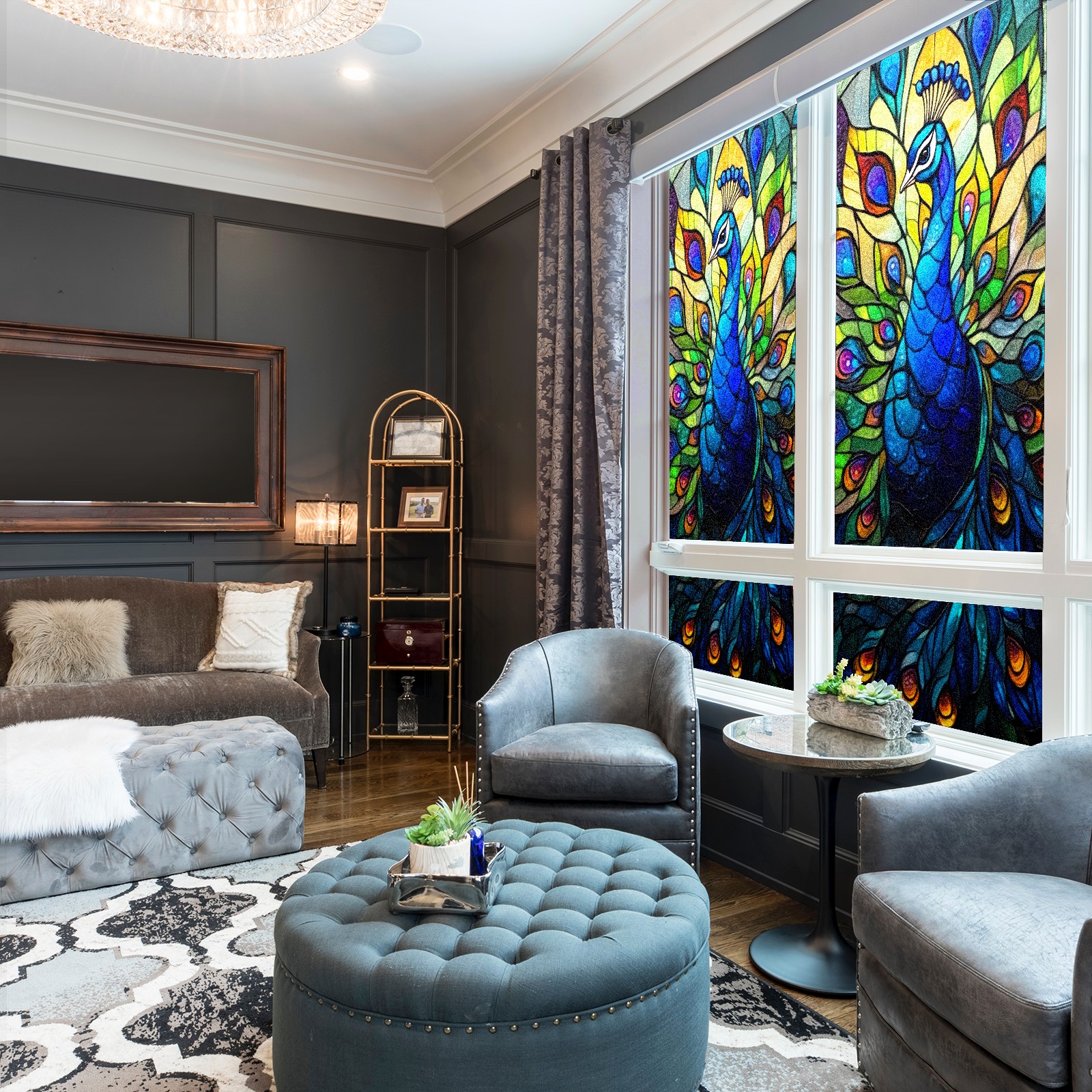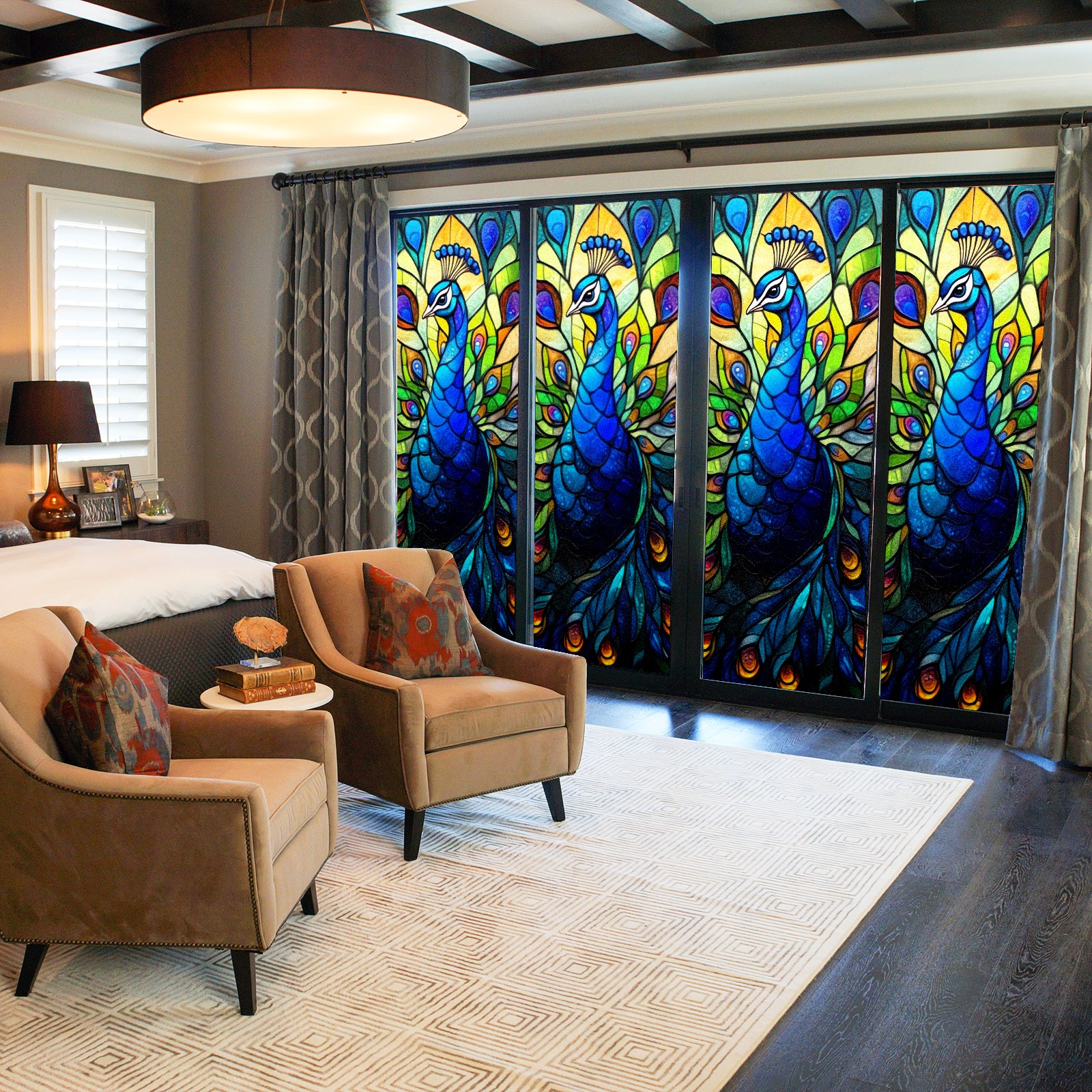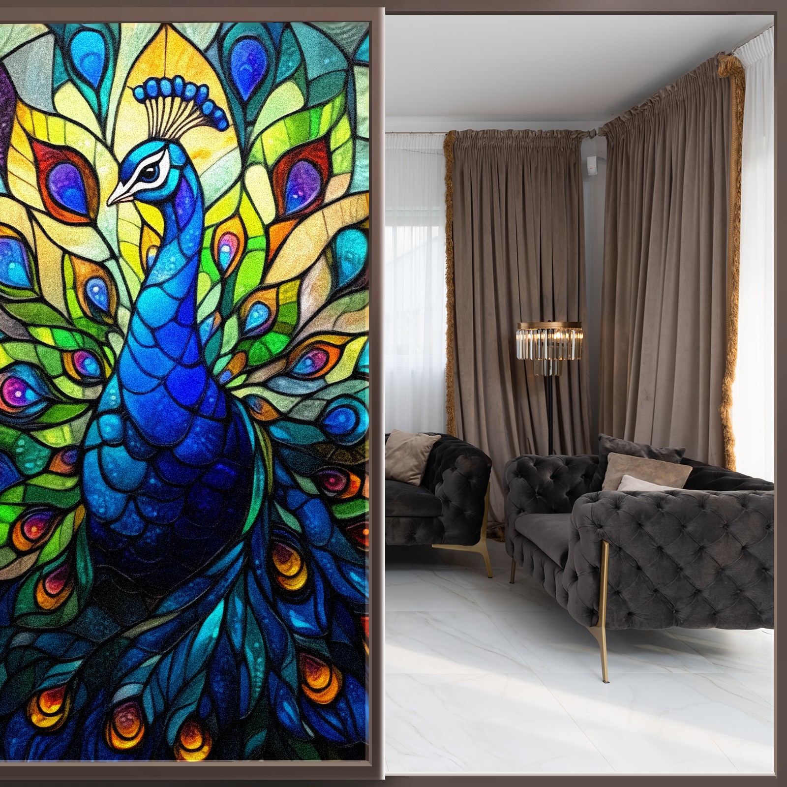 Stained Glass Window Film - Decorative Privacy Film for Windows, Peel and Stick Window Film for Bathroom/Office/Shower, Reusable and Easy to Cut 17.7"x23.6" (Peacock)
