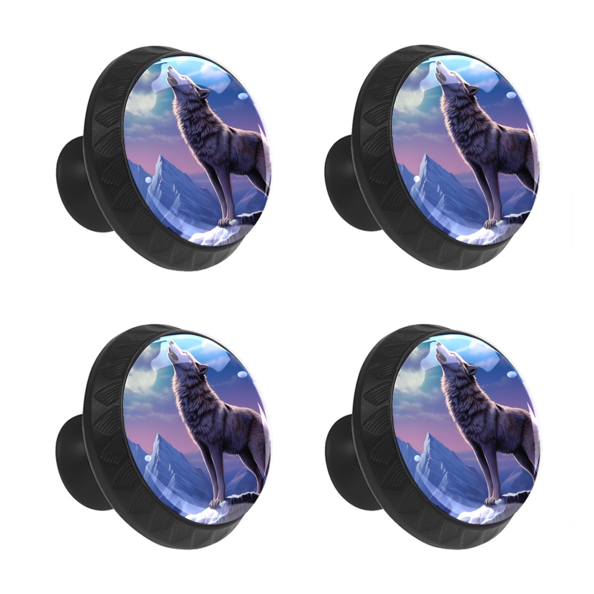 4 Pack Moon Night Cabinet Knobs Hardware Glass Drawer Pulls Knobs for Dresser Kitchen Bathroom Cabinets Drawers Black Furniture Cupboard Wardrobe Handles Round, 1-3/8''
