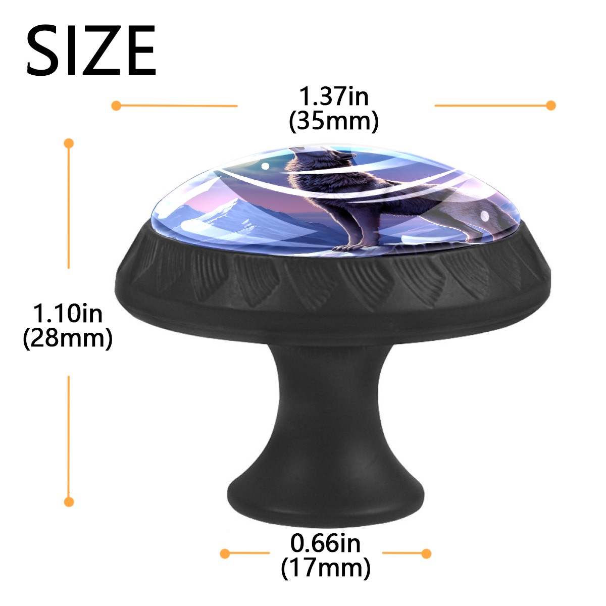• <p><b>Package Includes:</b></p> <p>Drawer Knobs x 4</p> <p>1.10 Inches Mounting Screws x 4</p> <p>1.37 Inches Mounting Screws x 4</p> <p><br></p> <p></p> <p>Crystal Glass Diameter: 1.37 inches (35mm)</p> <p>Knob Height: 1.10 inches (28mm)</p> <p>Base Diameter: 0.66 inches (17mm)</p> <p><b>Practical and Aesthetic:</b></p> <p>The knobs for kitchen cabinets and drawers combine the durability of an ABS base with the high transparency of glass, enhanced by unique patterns that add decoration and cuteness. It’s both practical and visually appealing.</p> <p><b>Pattern Design:</b></p> <p>Clear patterns add decoration and personalization. Cabinet knobs and pulls enhance visual appeal and can match different home styles, meeting diverse design needs.</p> <p><b>Easy Installation:</b></p> <p>Equipped with mounting screws, the ABS base can be securely attached to the drawer with ease.</p> <p><b>Easy Cleaning:</b></p> <p>The smooth surface of the round glass drawer knobs resists dust and stains, making it easy to clean with just a damp cloth.</p> <p><b>Wear-Resistant:</b></p> <p>The bathroom cabinet knobs are designed to resist scratches and fading, maintaining their good appearance over long-term use.</p>
