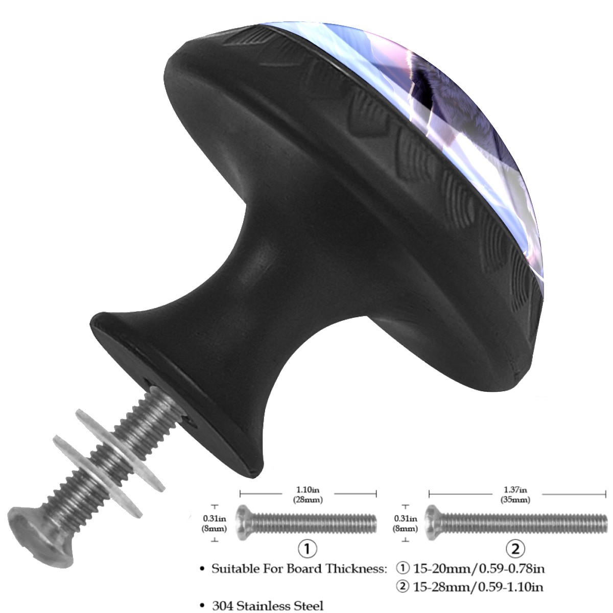 <p><b>Package Includes:</b></p> <p>Drawer Knobs x 4</p> <p>1.10 Inches Mounting Screws x 4</p> <p>1.37 Inches Mounting Screws x 4</p> <p><br></p> <p></p> <p>Crystal Glass Diameter: 1.37 inches (35mm)</p> <p>Knob Height: 1.10 inches (28mm)</p> <p>Base Diameter: 0.66 inches (17mm)</p> <p><b>Practical and Aesthetic:</b></p> <p>The knobs for kitchen cabinets and drawers combine the durability of an ABS base with the high transparency of glass, enhanced by unique patterns that add decoration and cuteness. It’s both practical and visually appealing.</p> <p><b>Pattern Design:</b></p> <p>Clear patterns add decoration and personalization. Cabinet knobs and pulls enhance visual appeal and can match different home styles, meeting diverse design needs.</p> <p><b>Easy Installation:</b></p> <p>Equipped with mounting screws, the ABS base can be securely attached to the drawer with ease.</p> <p><b>Easy Cleaning:</b></p> <p>The smooth surface of the round glass drawer knobs resists dust and stains, making it easy to clean with just a damp cloth.</p> <p><b>Wear-Resistant:</b></p> <p>The bathroom cabinet knobs are designed to resist scratches and fading, maintaining their good appearance over long-term use.</p>