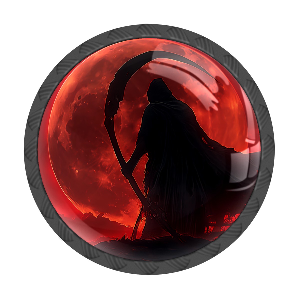 4 Pack Moon Night Grim Reaper Cabinet Knobs Hardware Glass Drawer Pulls Knobs for Dresser Kitchen Bathroom Cabinets Drawers Black Furniture Cupboard Wardrobe Handles Round, 1-3/8''