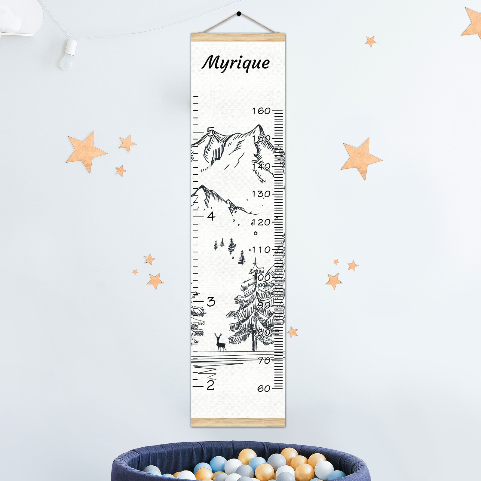 Personalized Kids Name Growth Chart Ruler for Wall Wood Frame Canvas Height Measure Chart 13.4x56 in Hanging Growth Chart Winter Mountain4.28 Boys Girls Room Decor