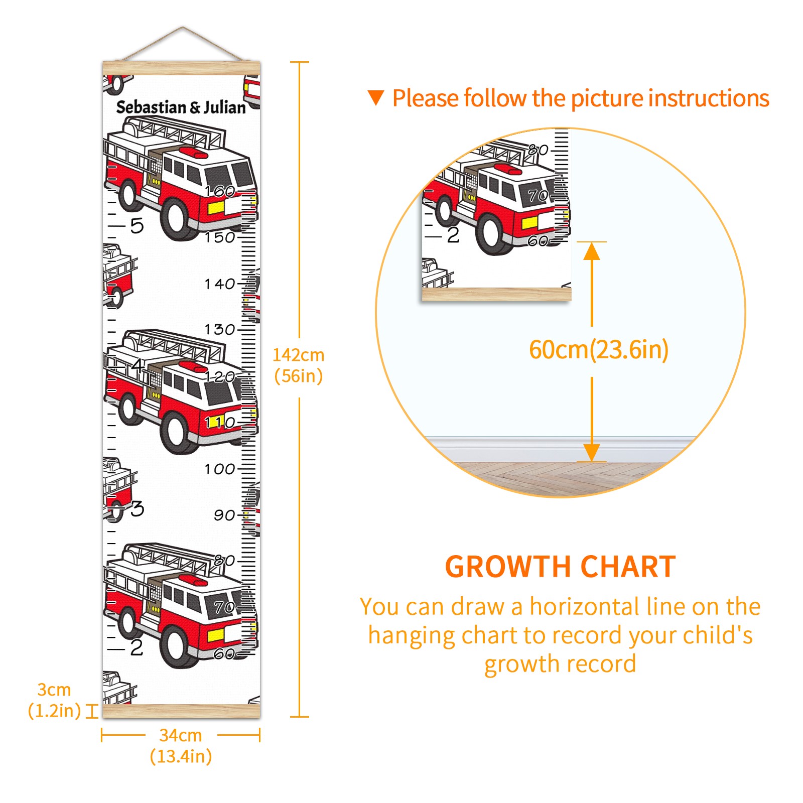 Personalized Kids Name Growth Chart Ruler for Wall Wood Frame Canvas Height Measure Chart 13.4x56 in Hanging Growth Chart Fire Truck4.29 Boys Girls Room Decor