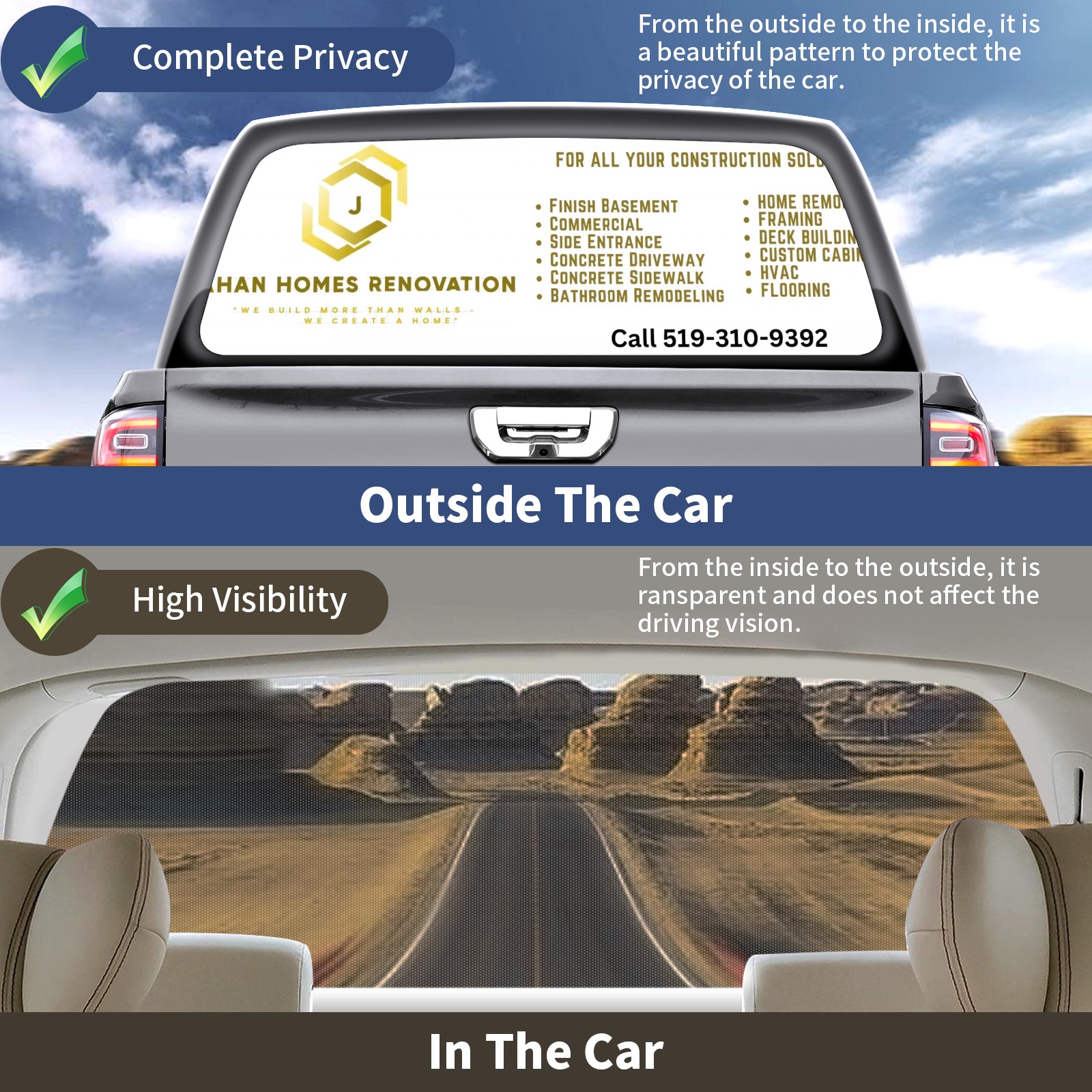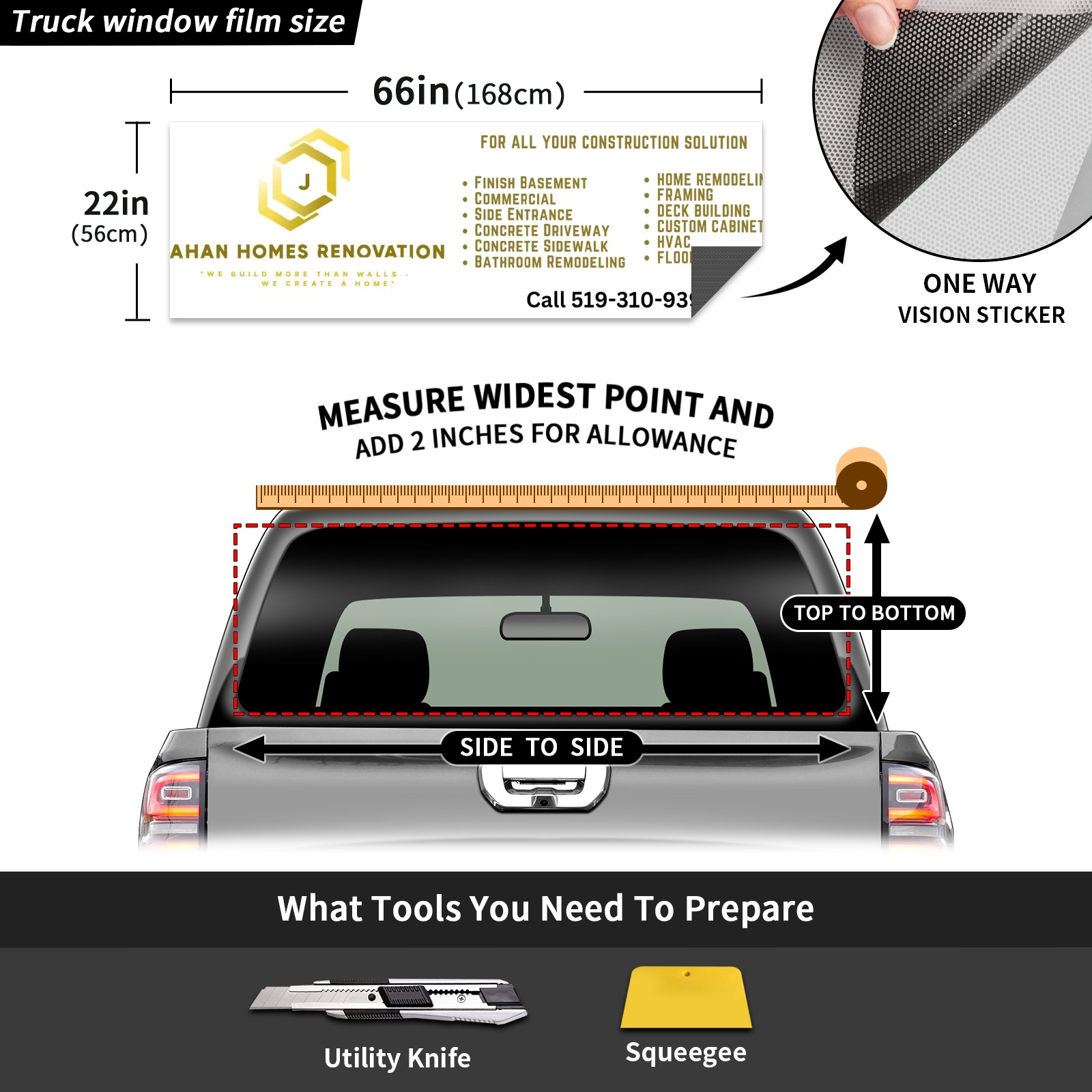 65x18 英寸 Custom Rear Window Graphic Decals for Trucks Personalized Pickup Car Window Stickers 66" x 22" Truck Back Window Perforated Vinyl Window Film Decal Design Your Own Back Window Graphic