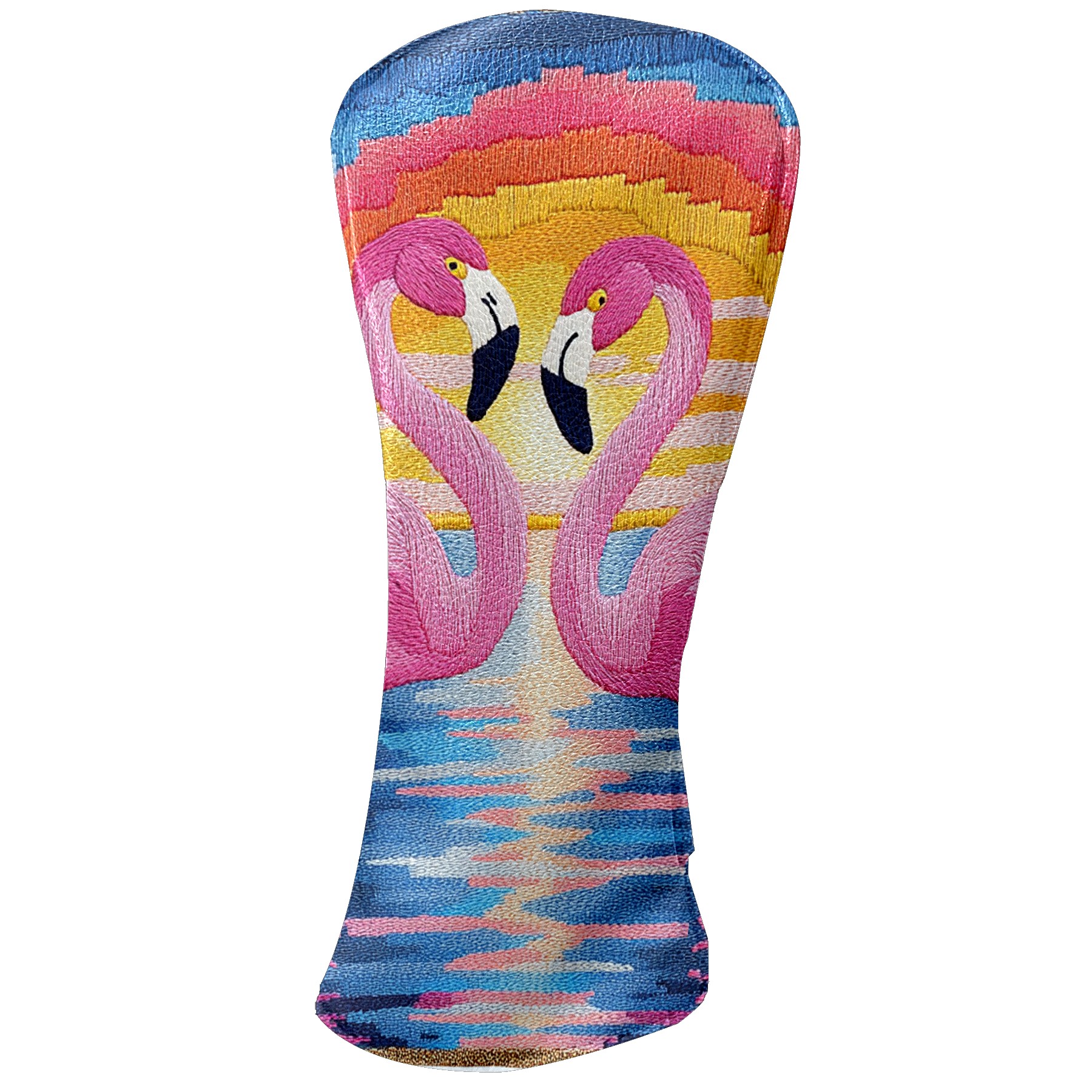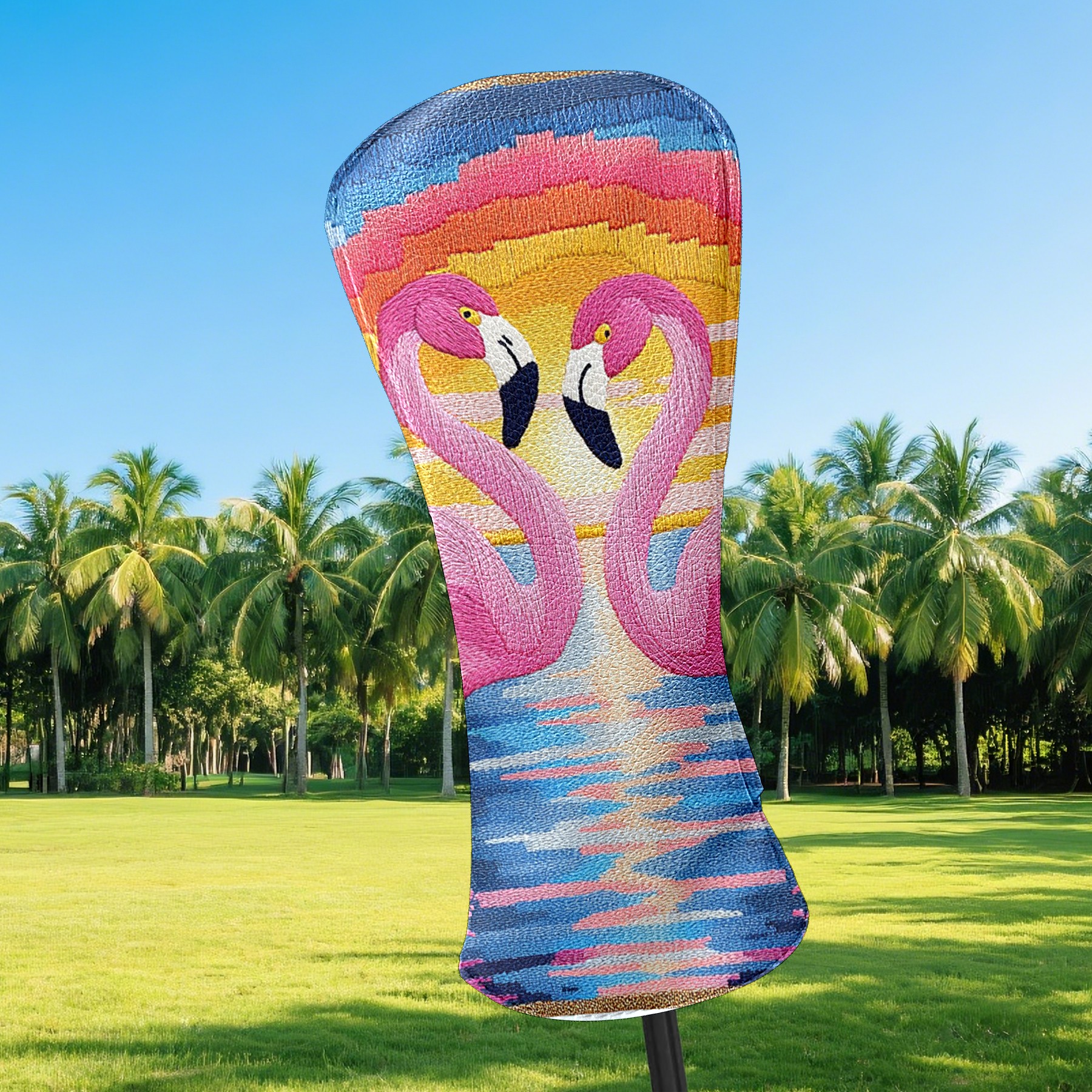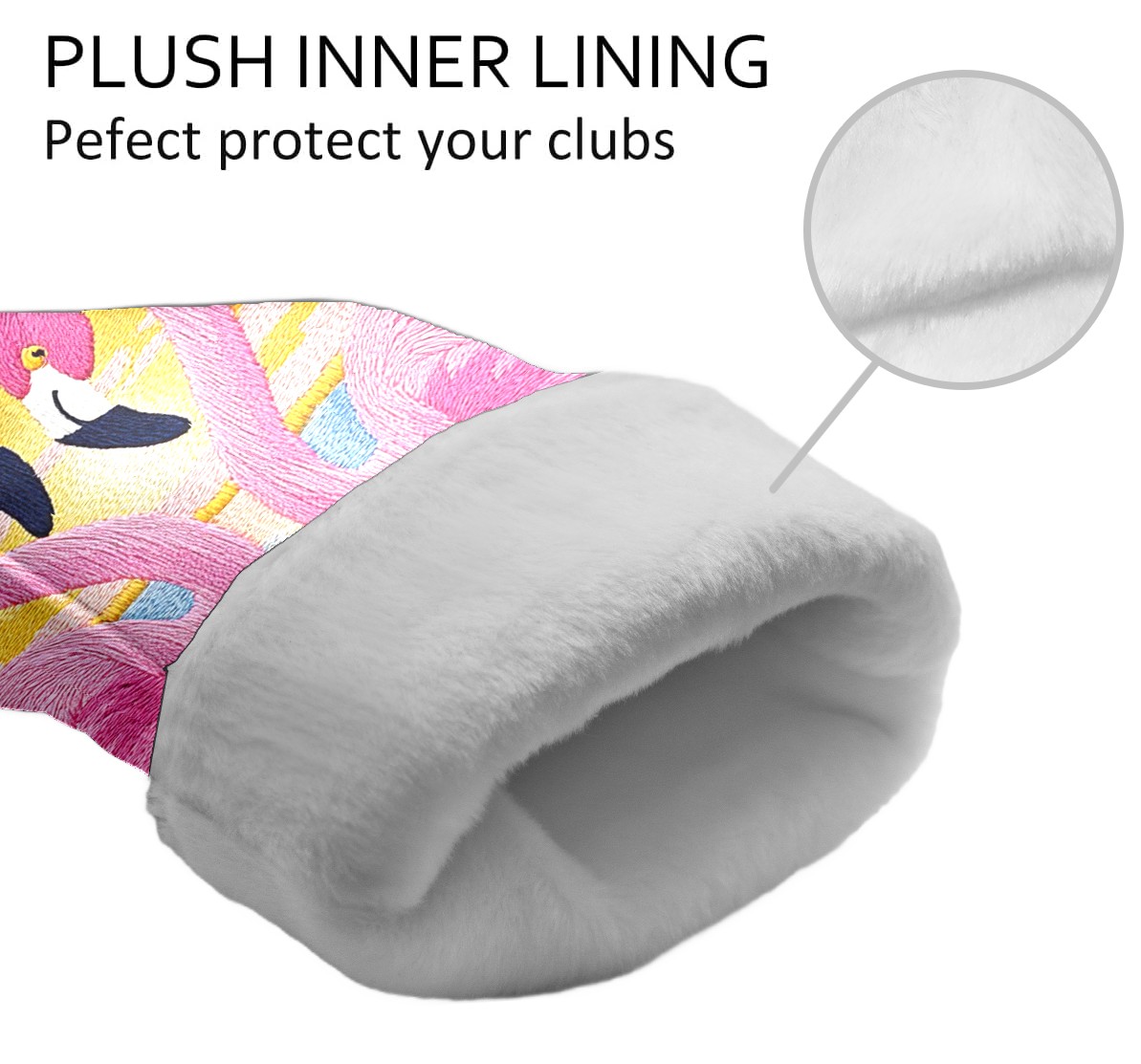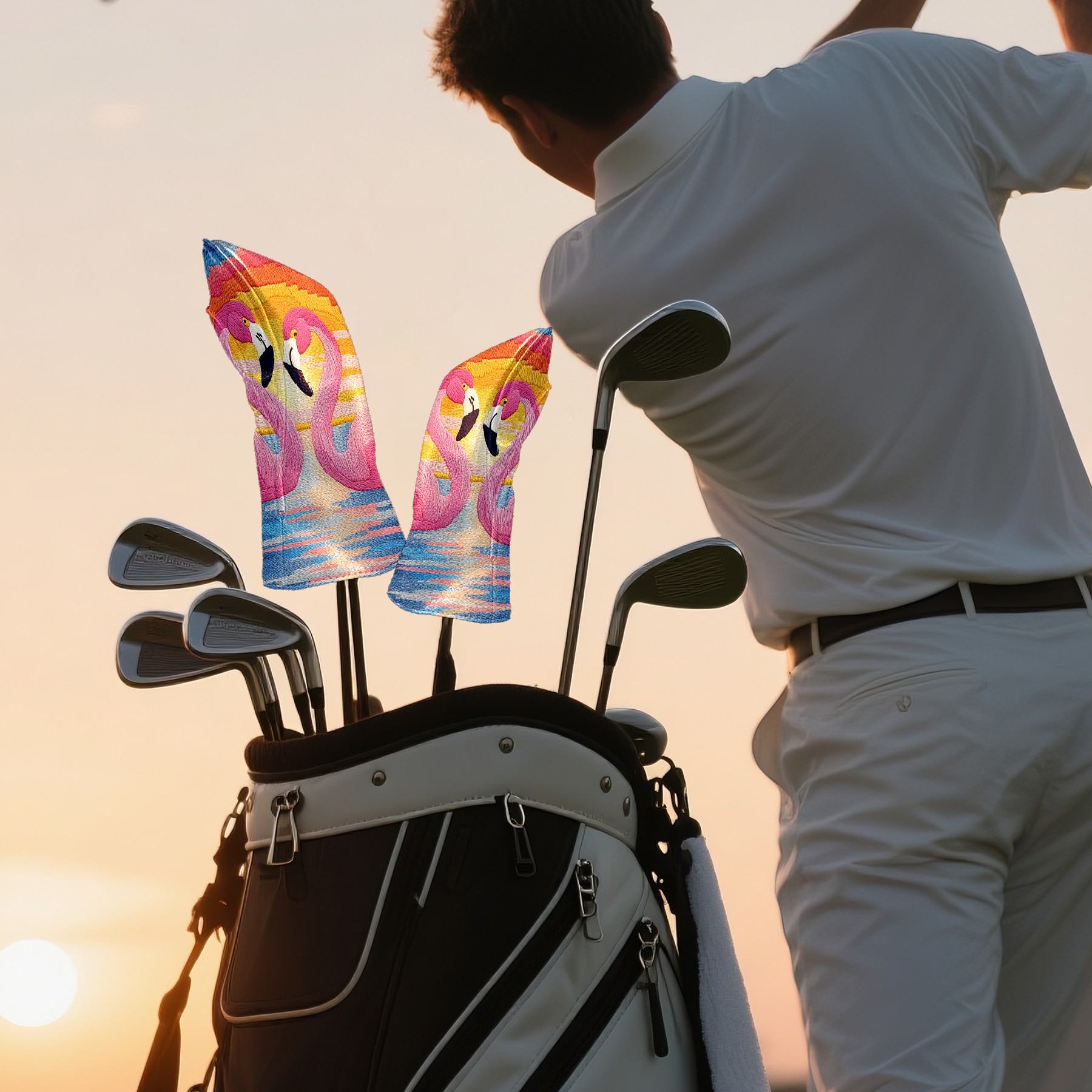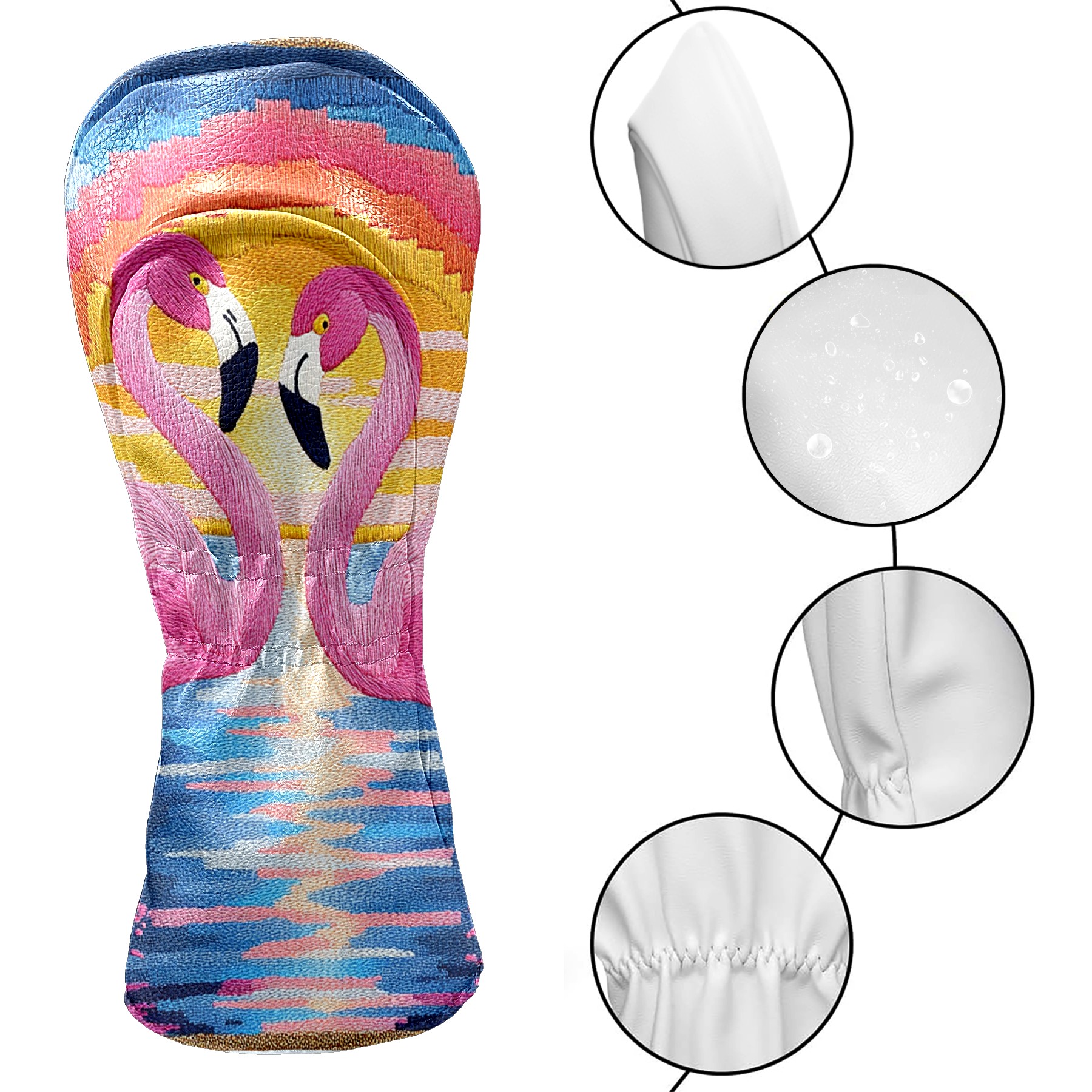 Golf Club Covers Premium Leather Golf Club Head Covers for Driver Fairway Woods Clubs, Waterproof Golf Headcovers with Anti-Scratch Lining for Men Women (Pink Flamingos)