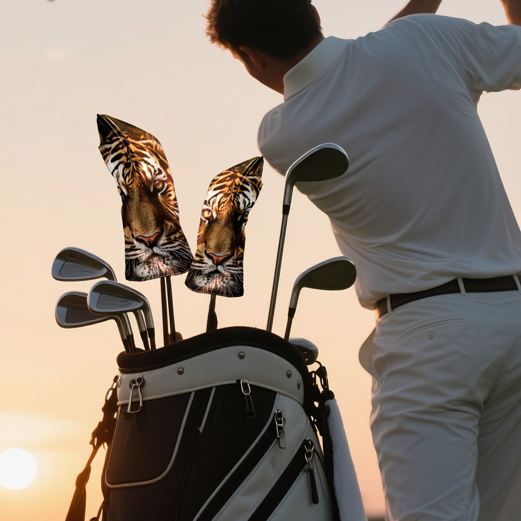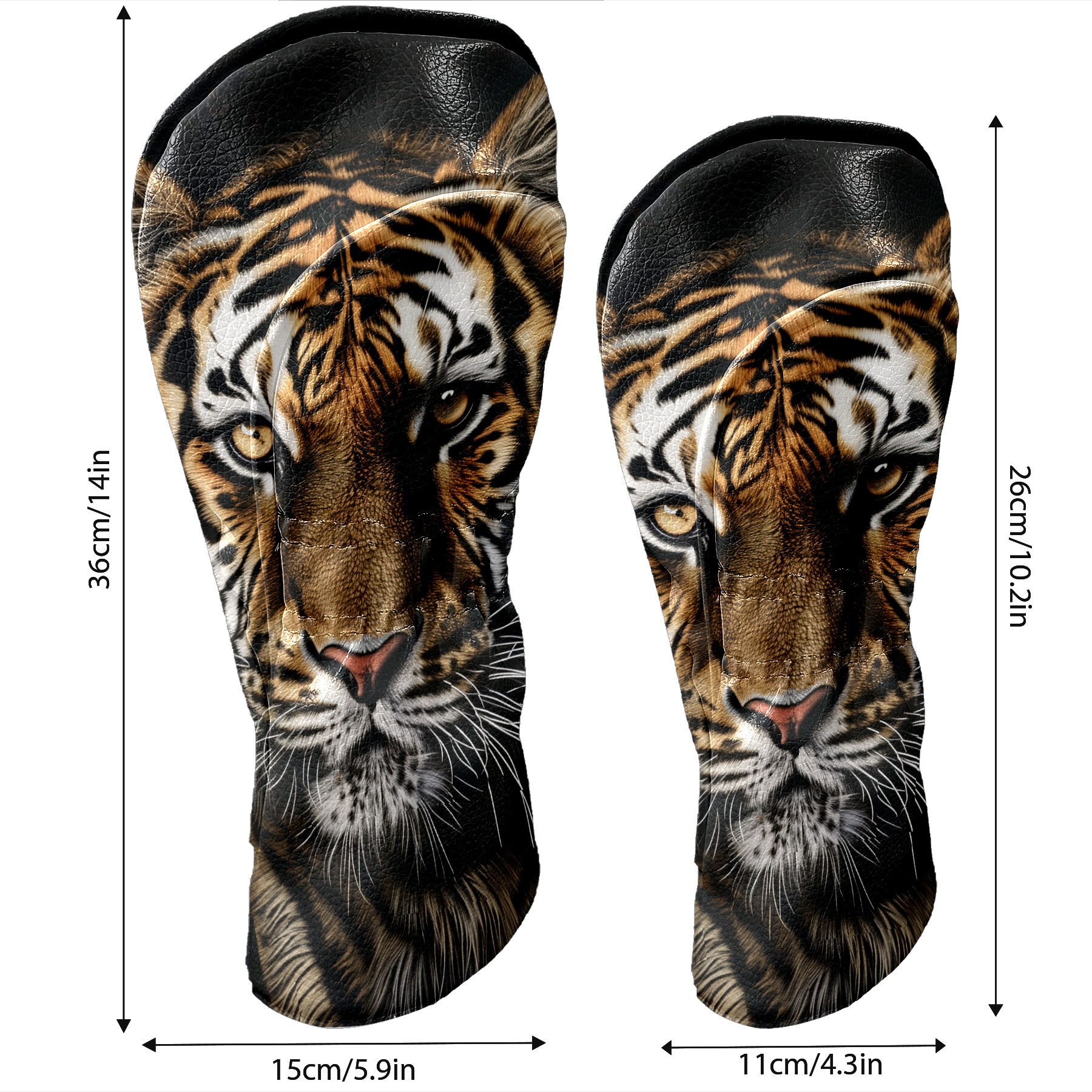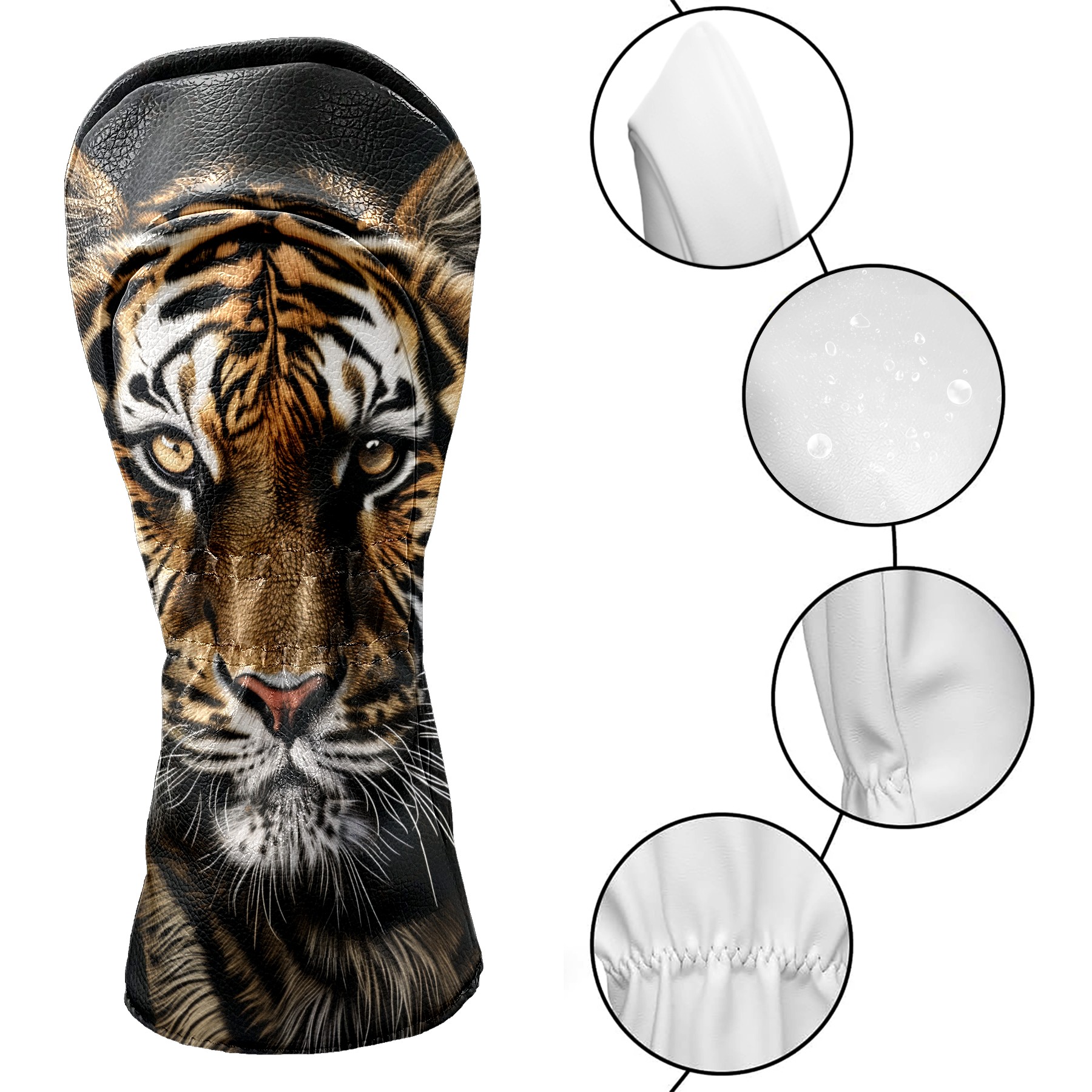 Golf Club Covers Premium Leather Golf Club Head Covers for Driver Fairway Woods Clubs, Waterproof Golf Headcovers with Anti-Scratch Lining for Men Women (Tiger Black)