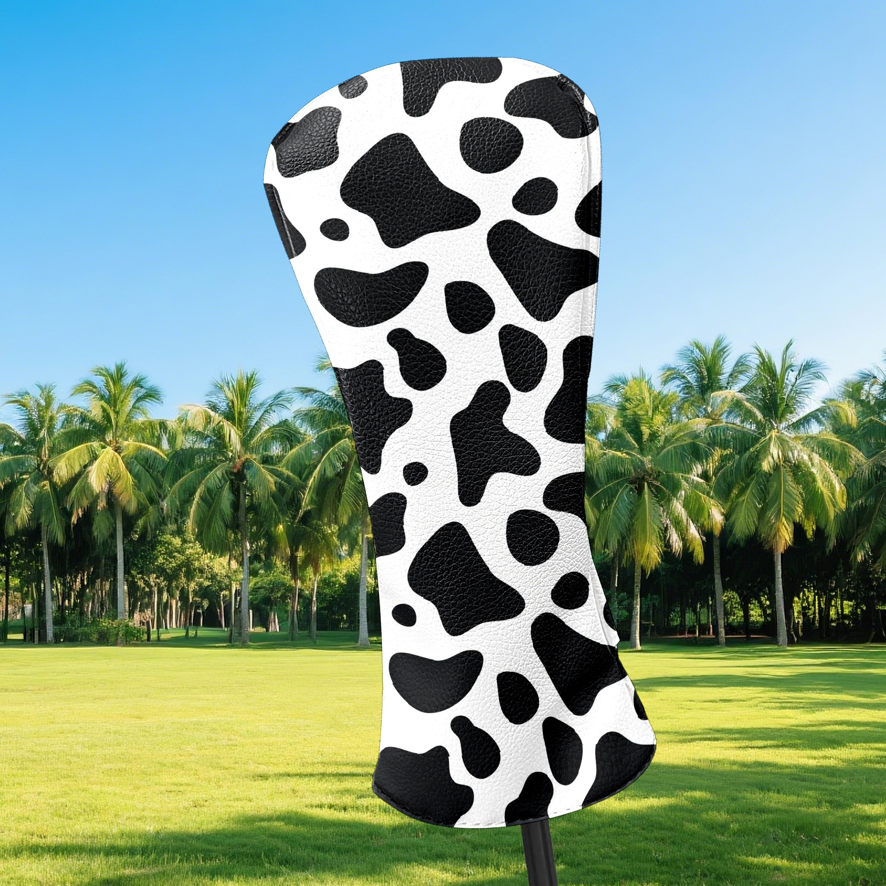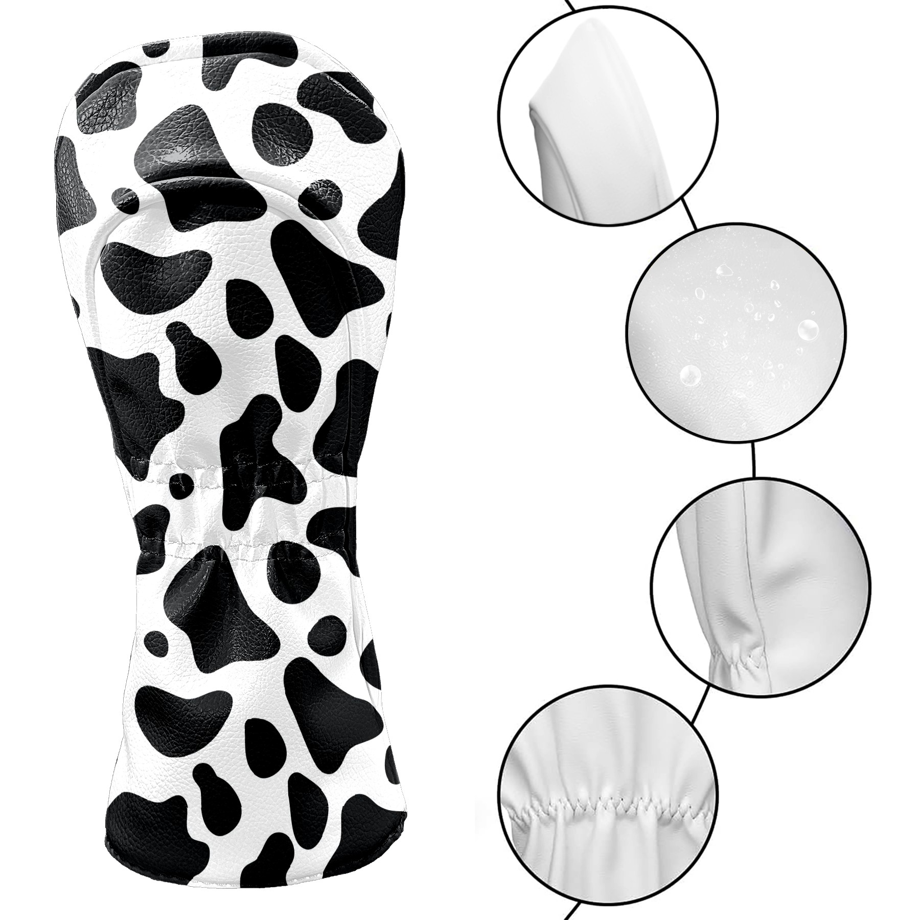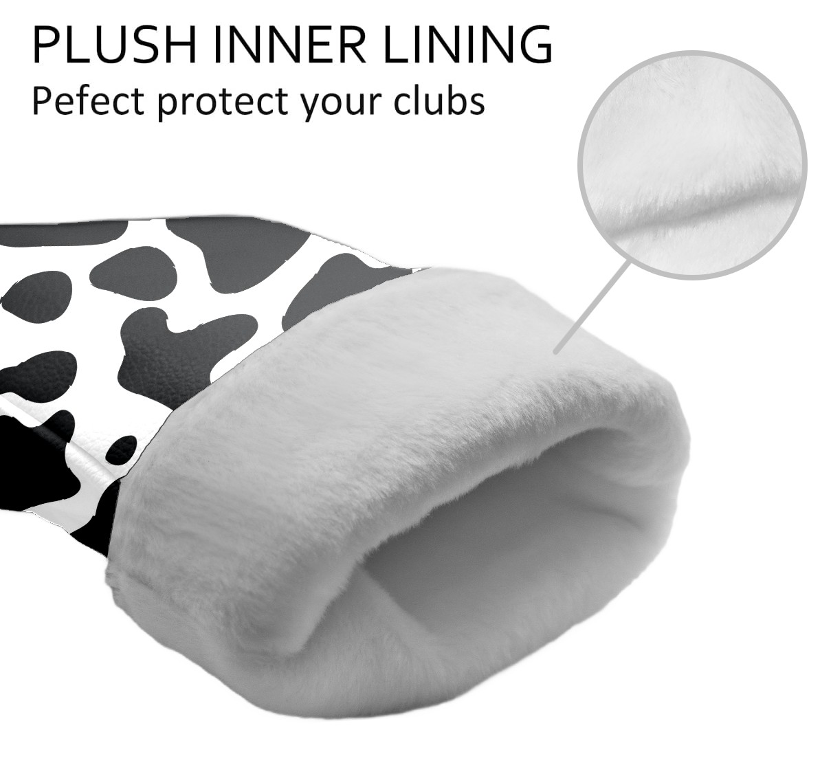 Golf Club Covers Premium Leather Golf Club Head Covers for Driver Fairway Woods Clubs, Waterproof Golf Headcovers with Anti-Scratch Lining for Men Women (Cow Print)