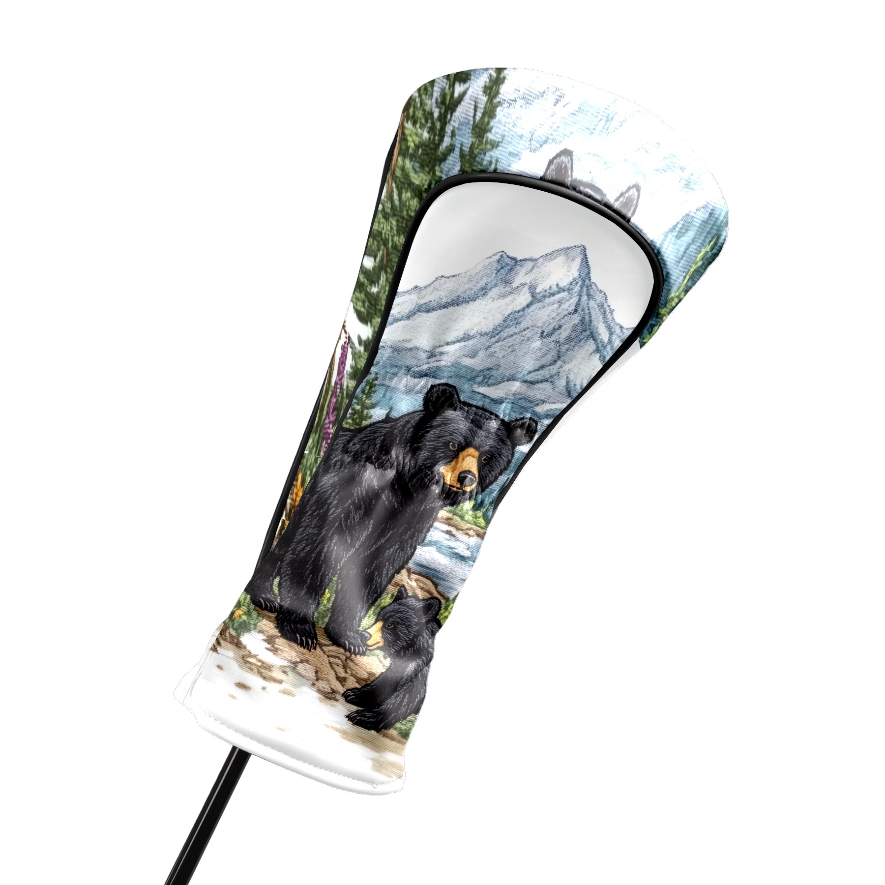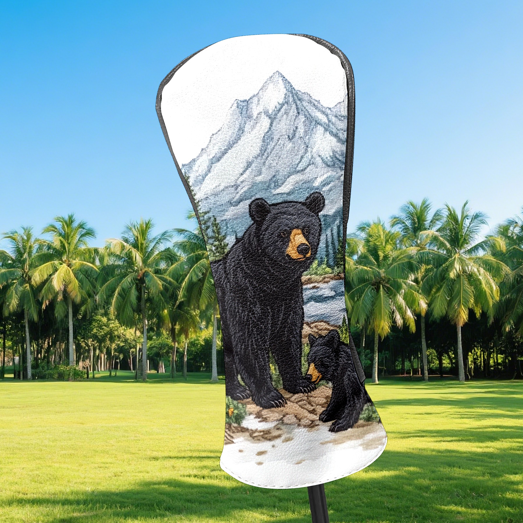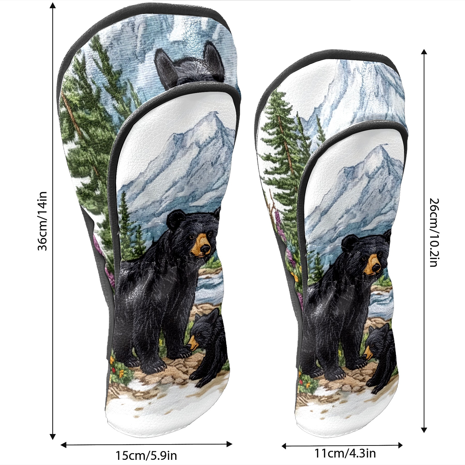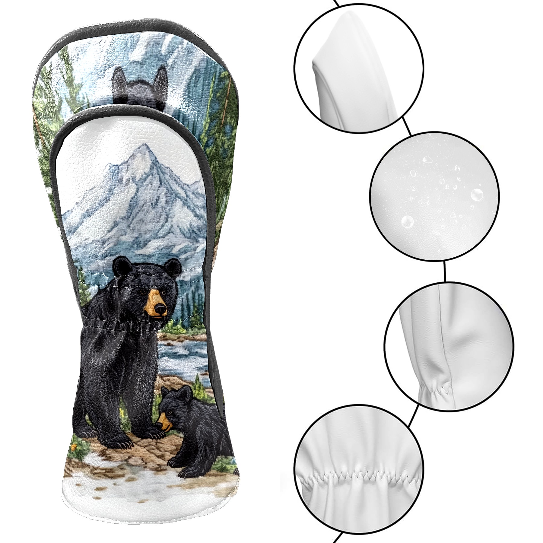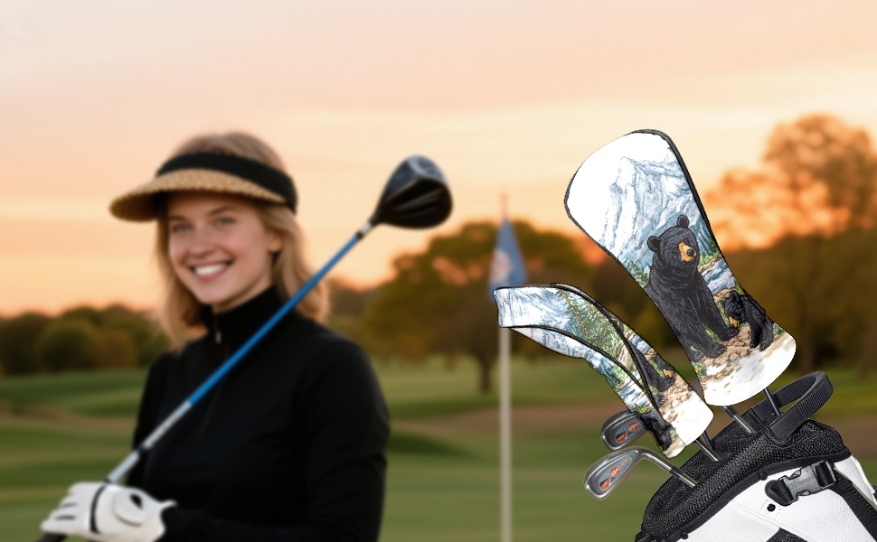 Golf Club Covers Premium Leather Golf Club Head Covers for Driver Fairway Woods Clubs, Waterproof Golf Headcovers with Anti-Scratch Lining for Men Women (Black Bear)