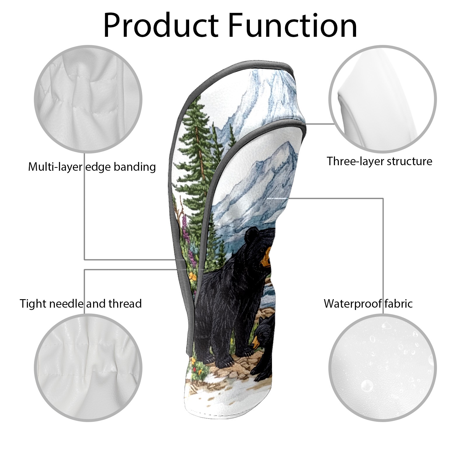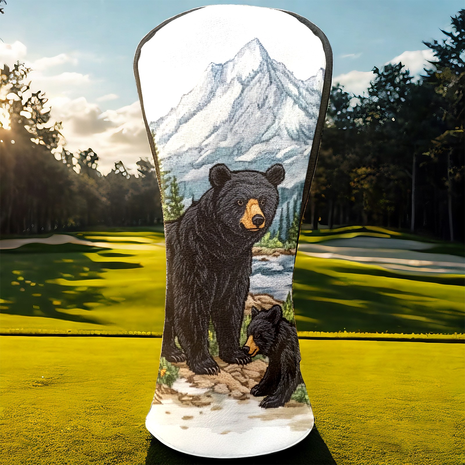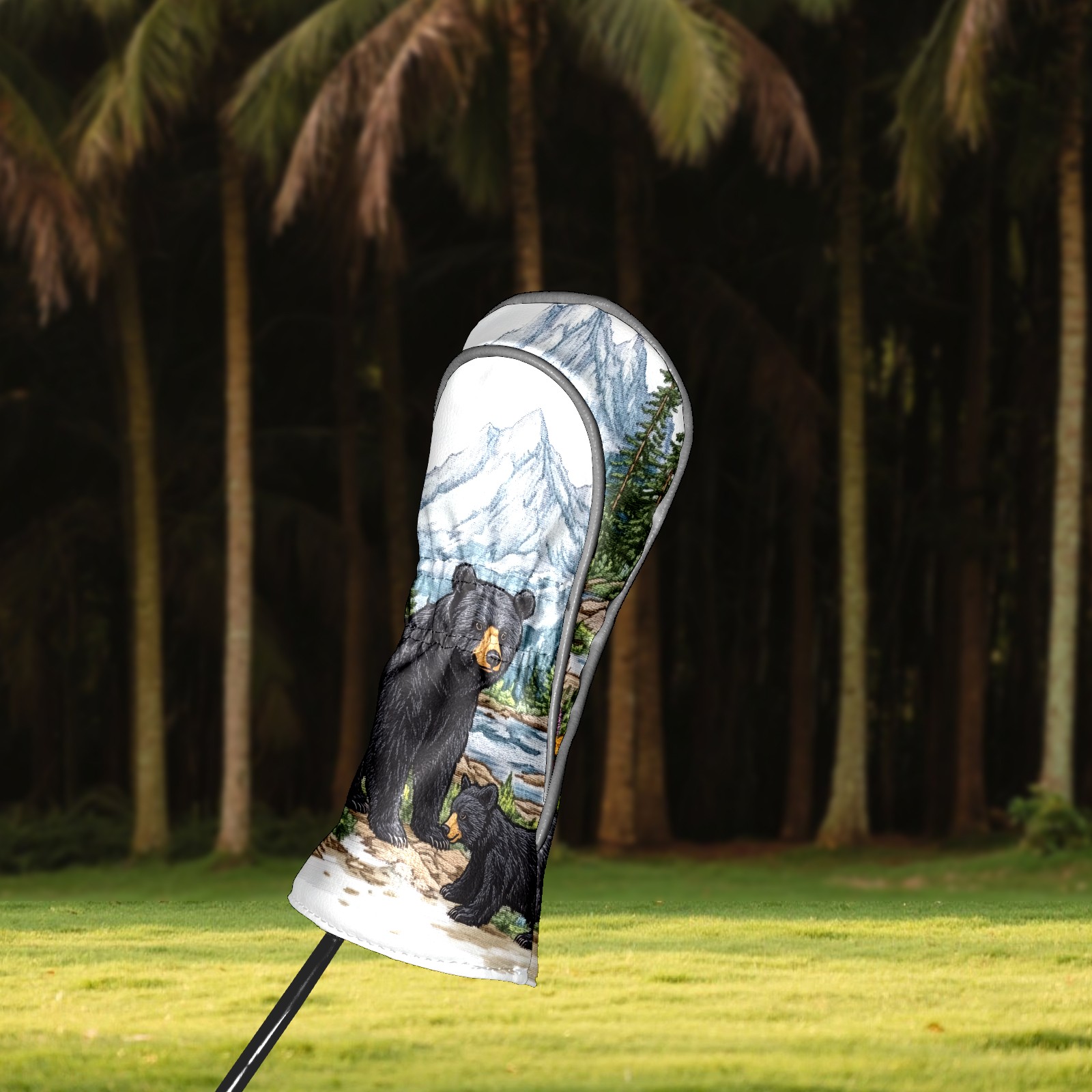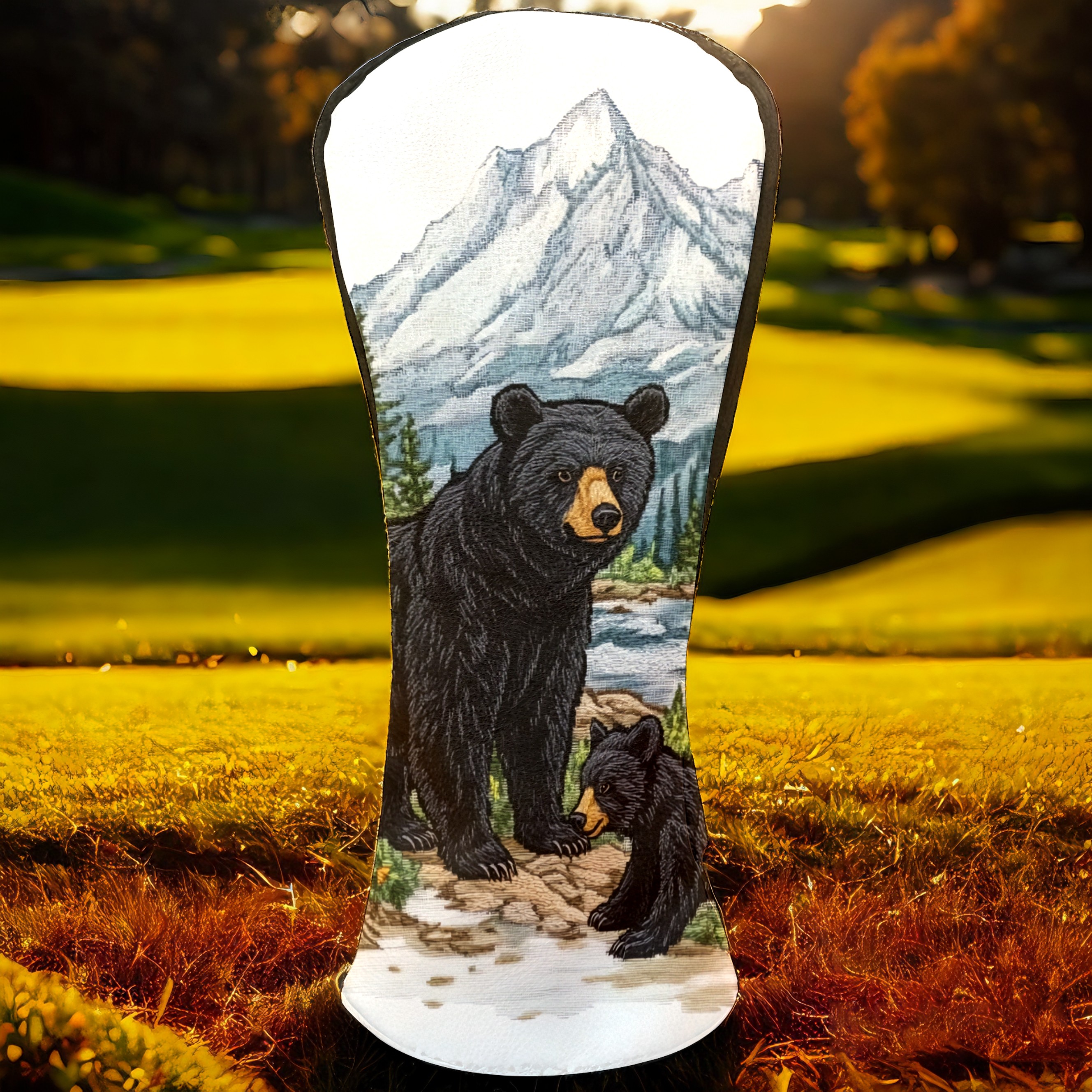 Golf Club Covers Premium Leather Golf Club Head Covers for Driver Fairway Woods Clubs, Waterproof Golf Headcovers with Anti-Scratch Lining for Men Women (Black Bear)