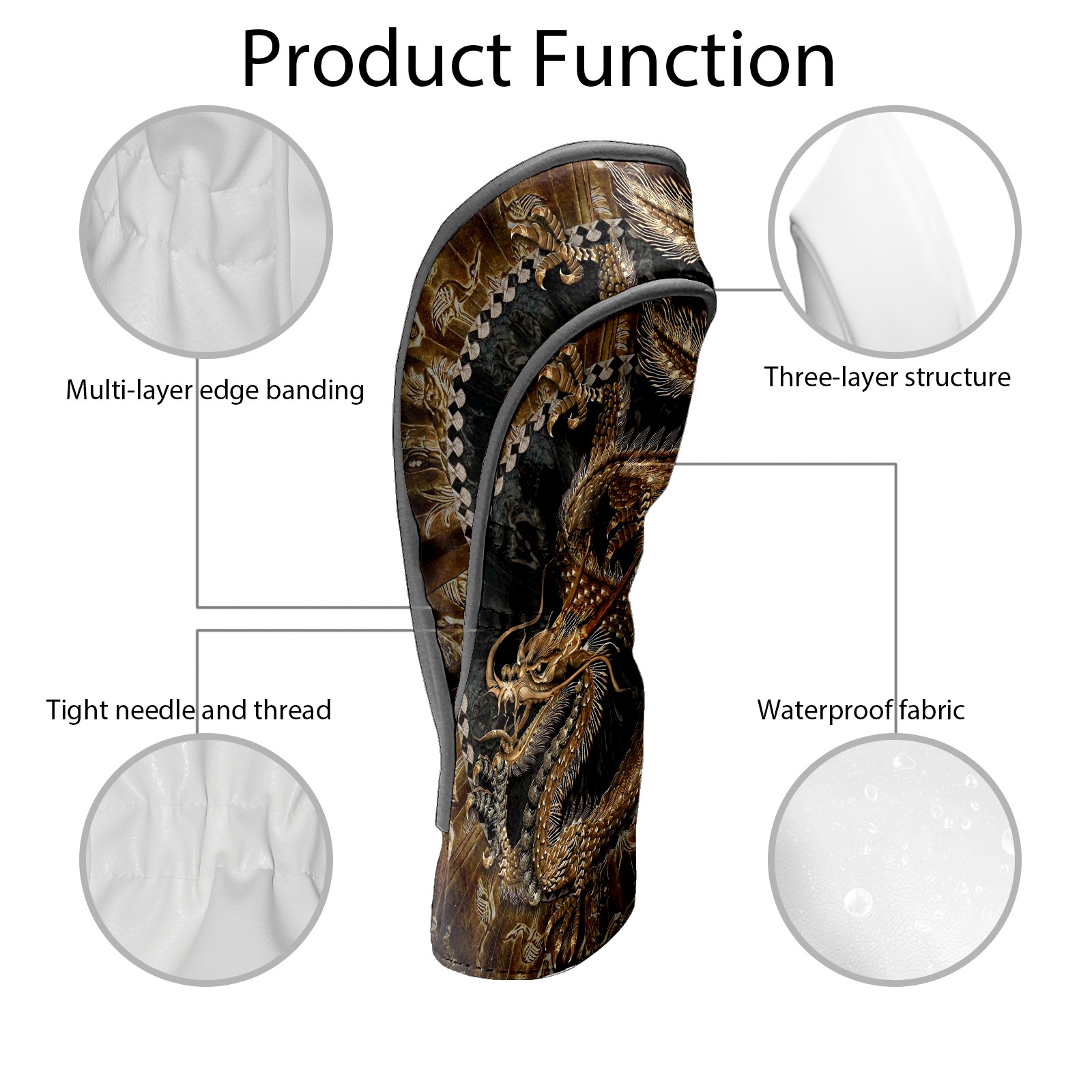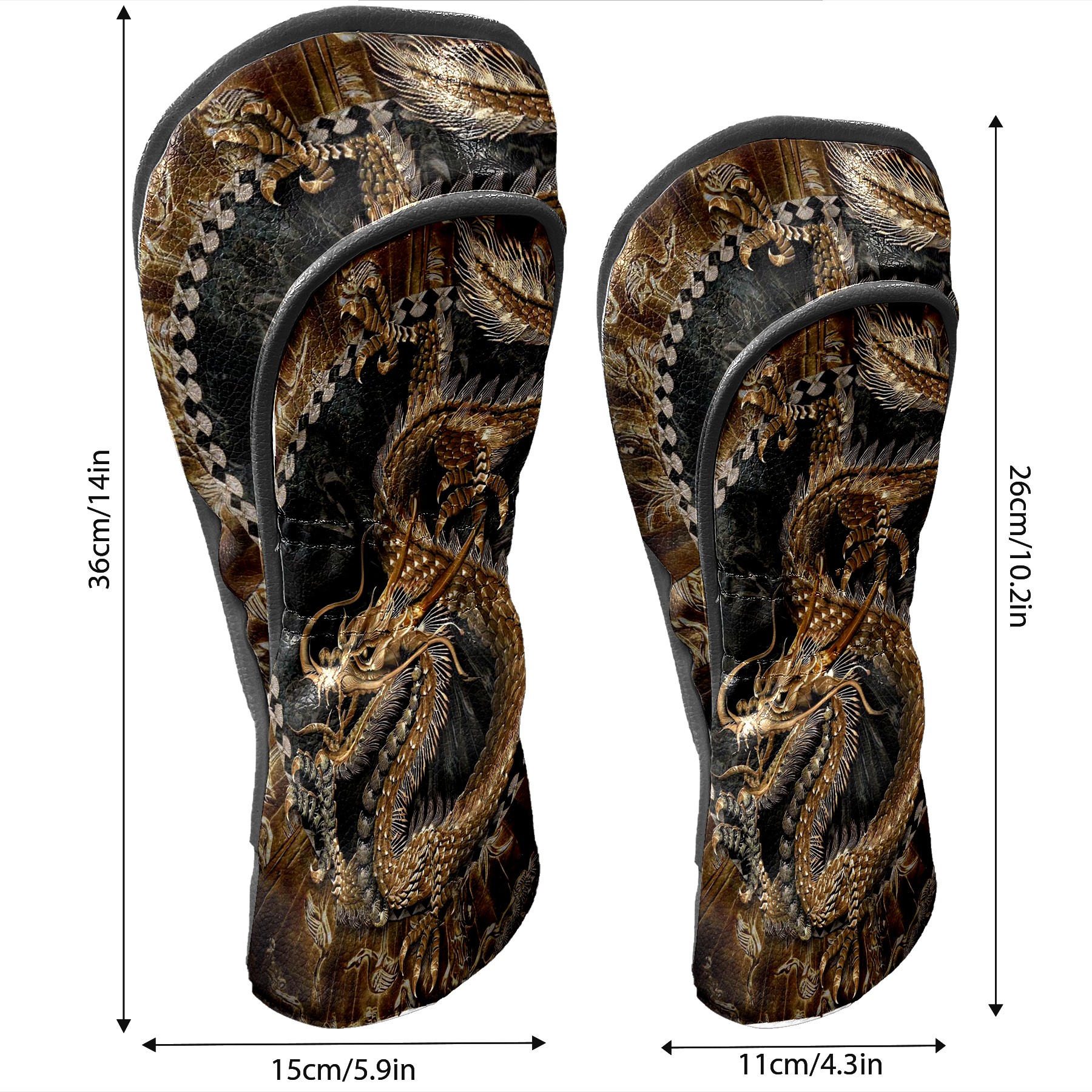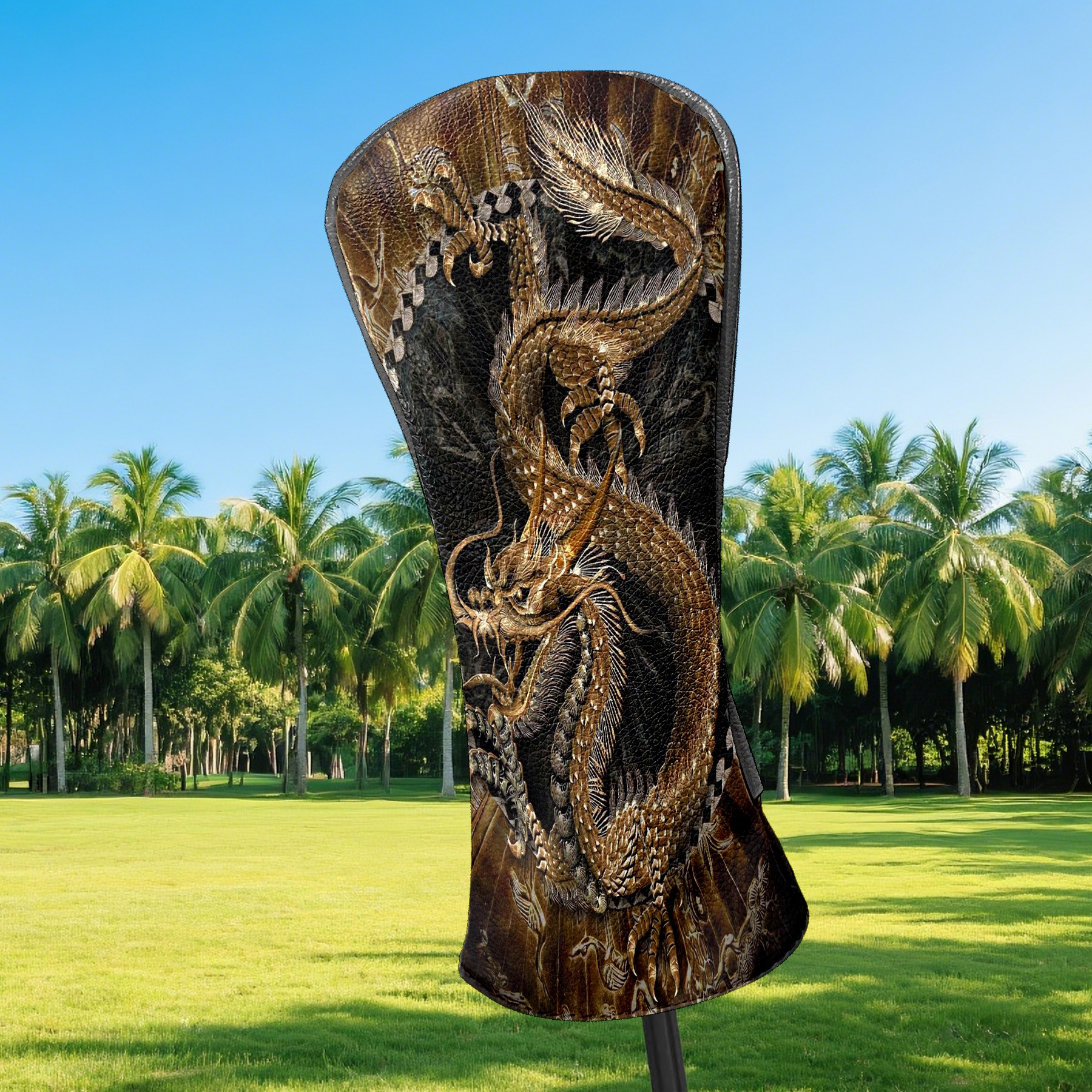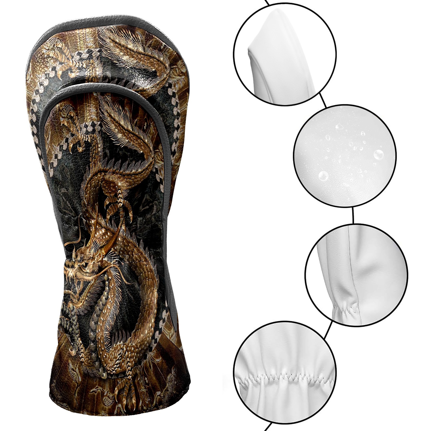 Golf Club Covers Premium Leather Golf Club Head Covers for Driver Fairway Woods Clubs, Waterproof Golf Headcovers with Anti-Scratch Lining for Men Women (Chinese Dragon Loong)