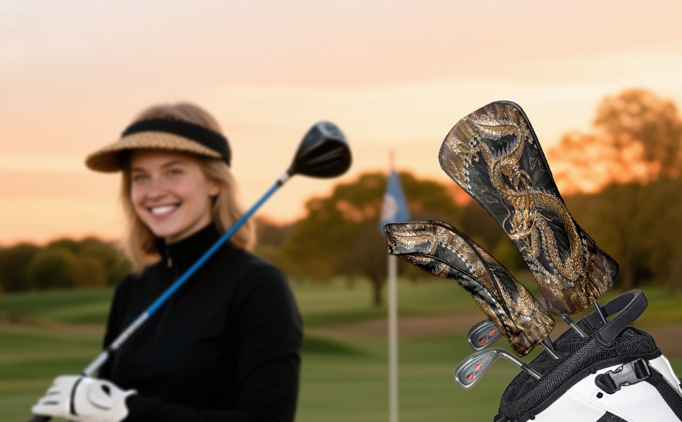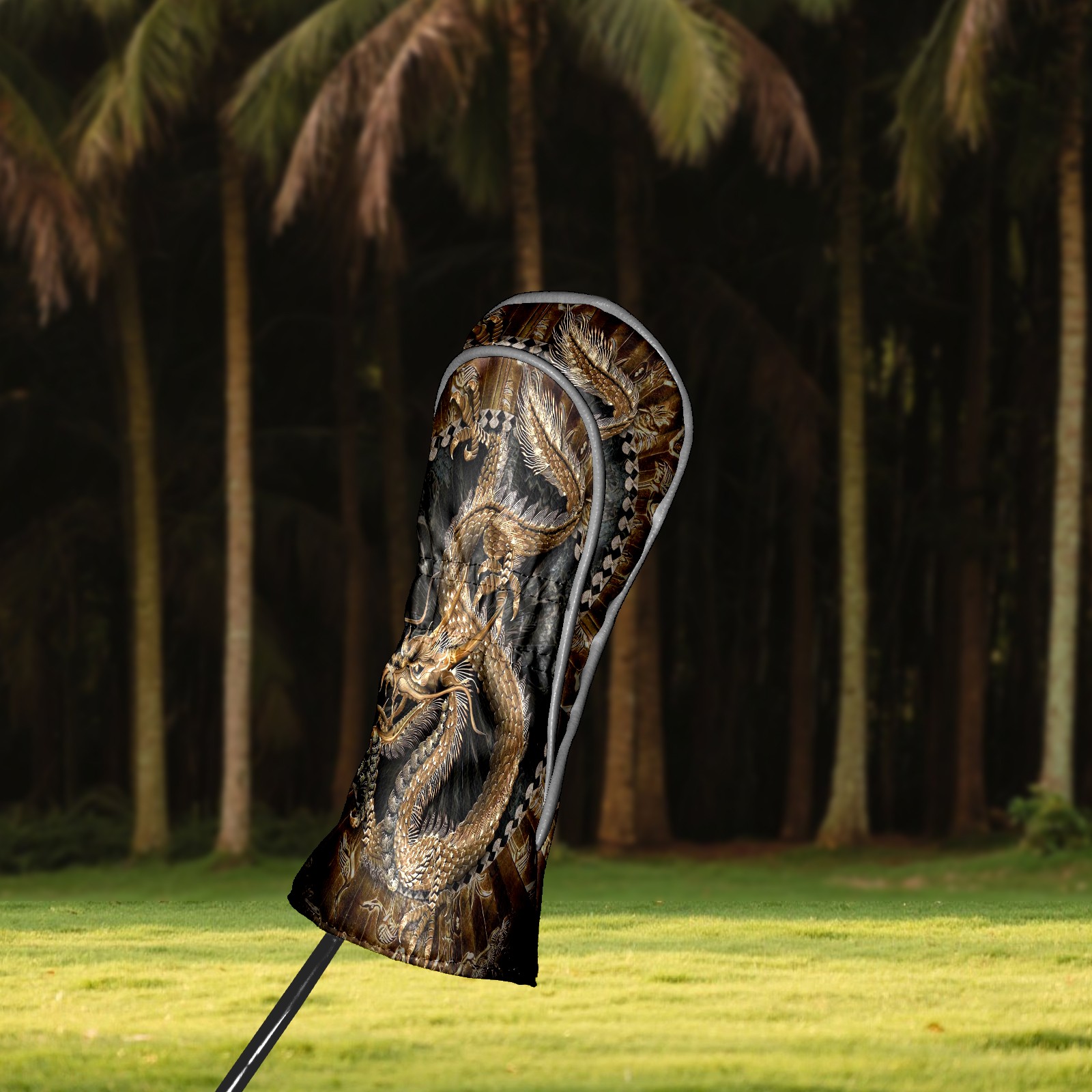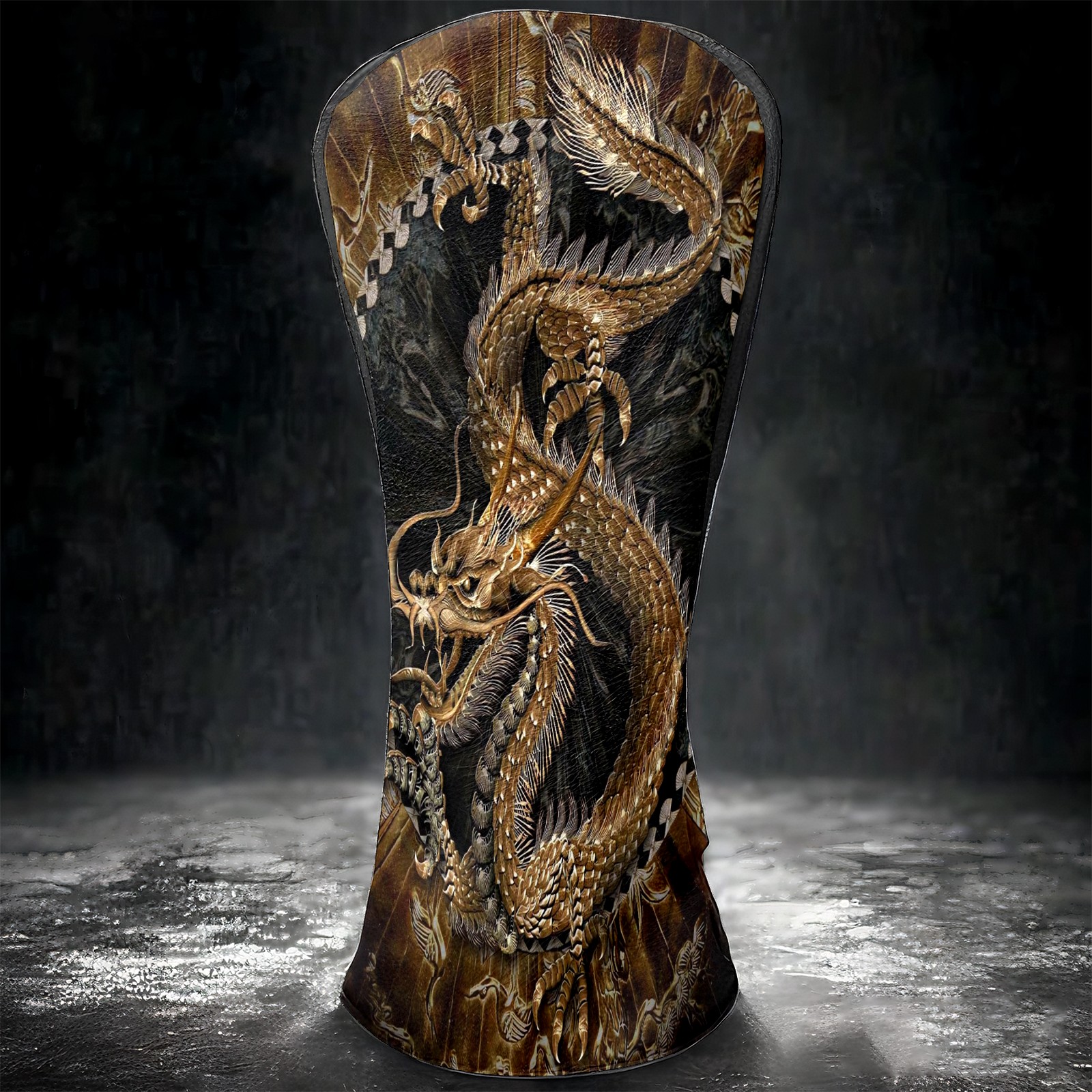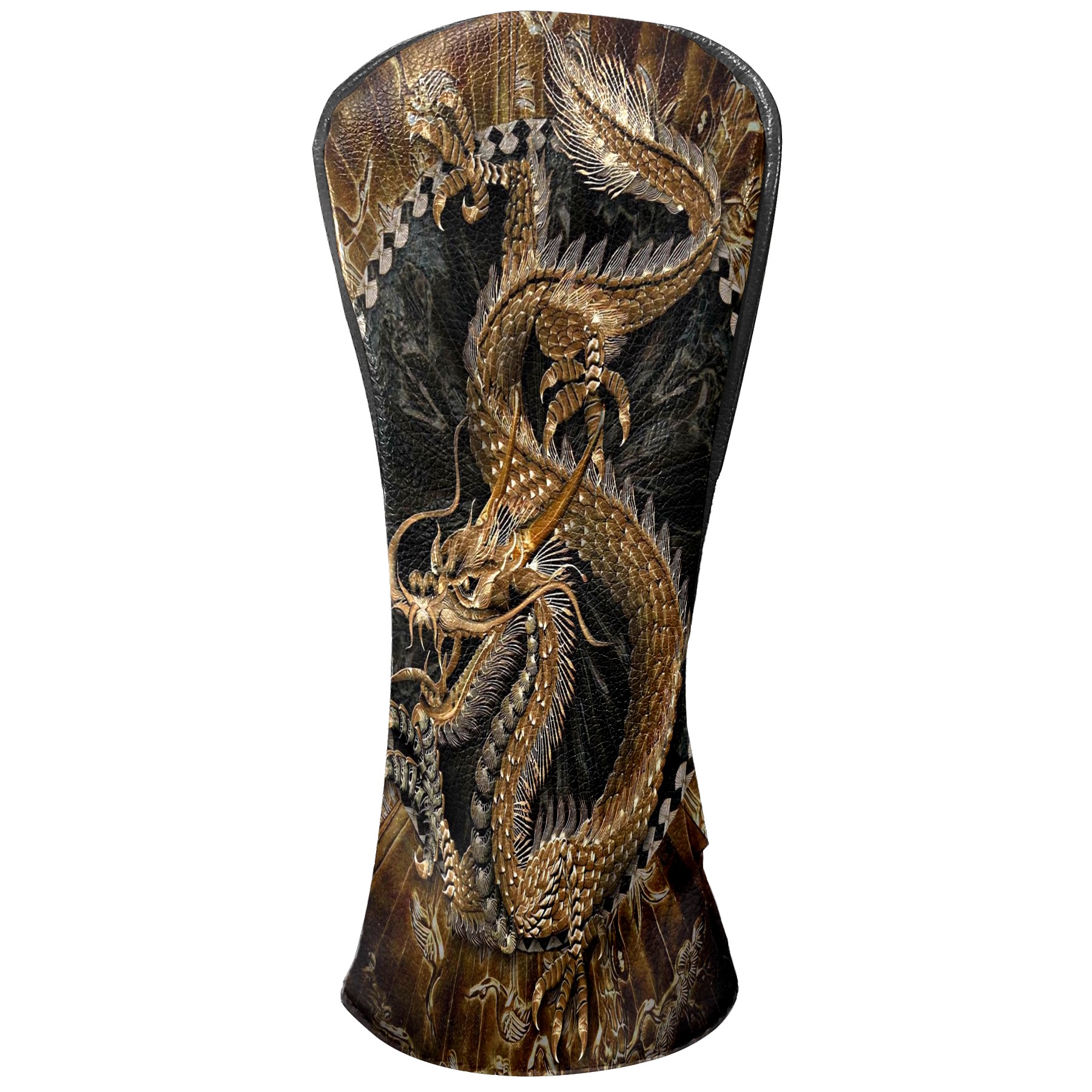 Golf Club Covers Premium Leather Golf Club Head Covers for Driver Fairway Woods Clubs, Waterproof Golf Headcovers with Anti-Scratch Lining for Men Women (Chinese Dragon Loong)