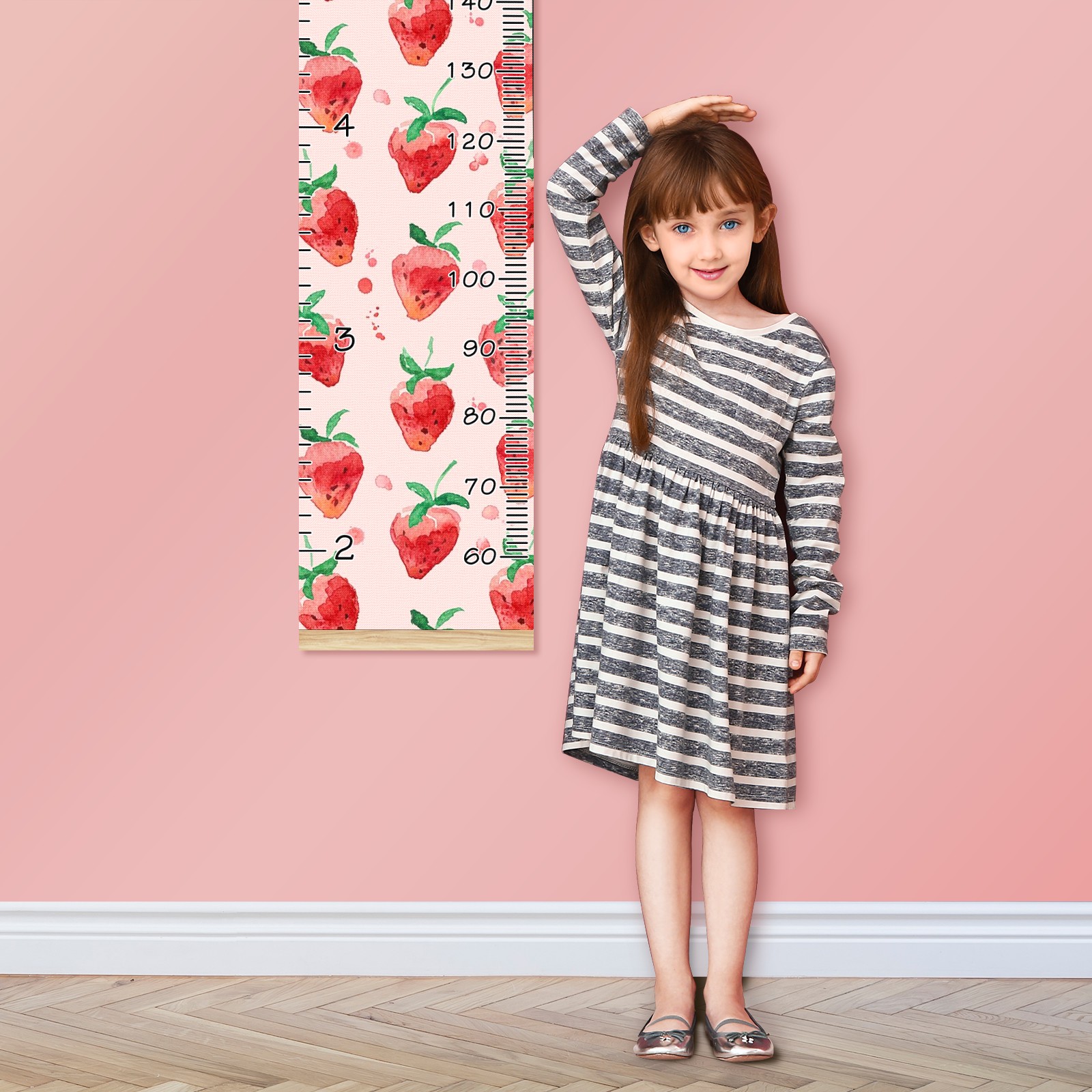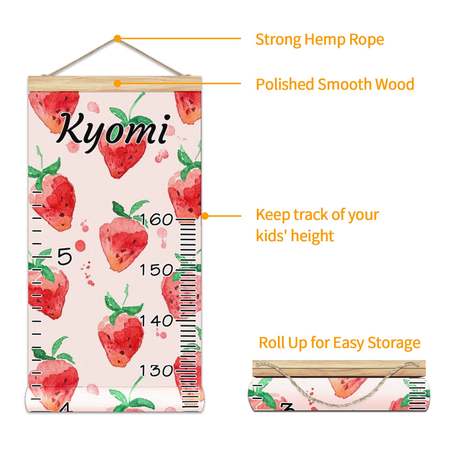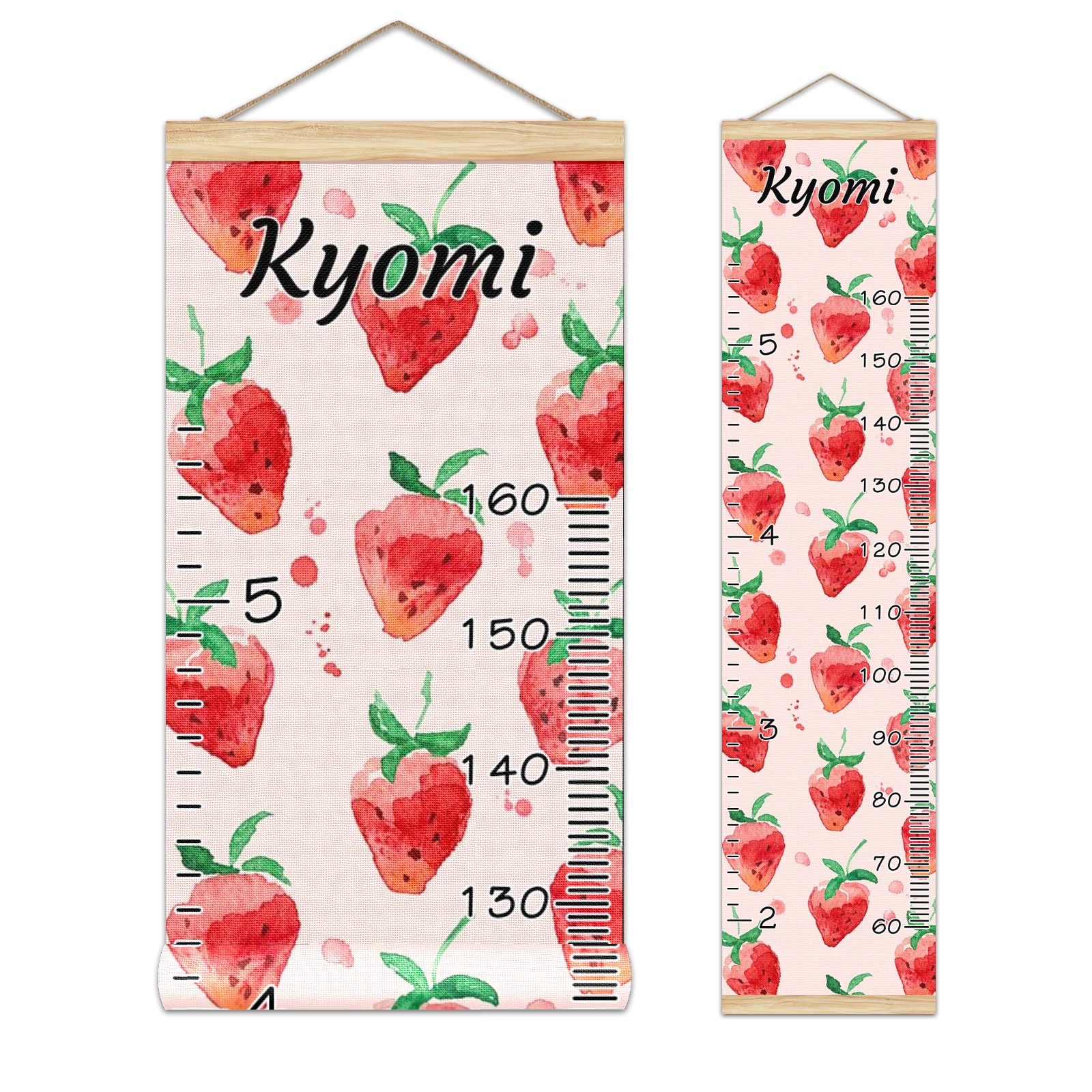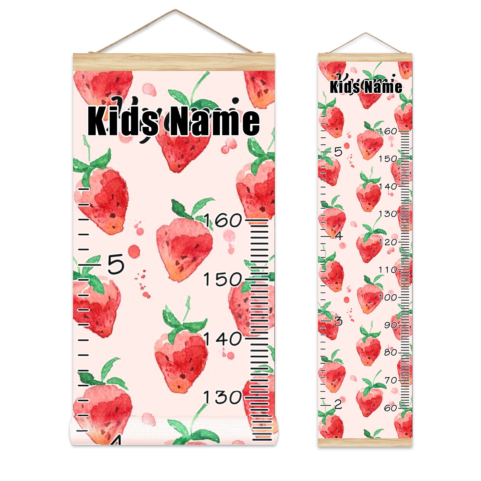 Personalized Kids Name Growth Chart Ruler for Wall Wood Frame Canvas Height Measure Chart 13.4x56 in Hanging Growth Chart Strawberry Fruit5.9 Boys Girls Room Decor