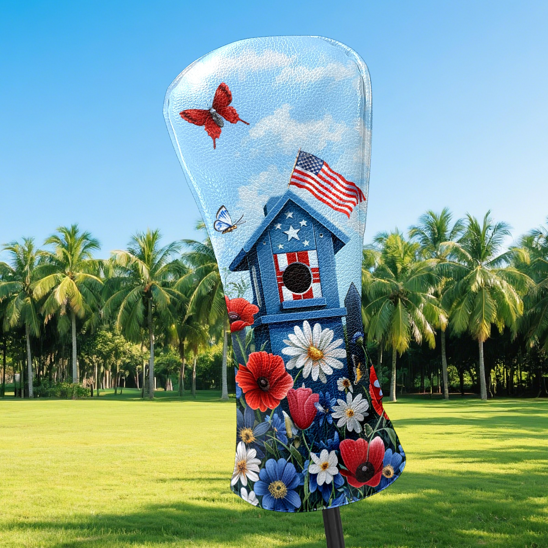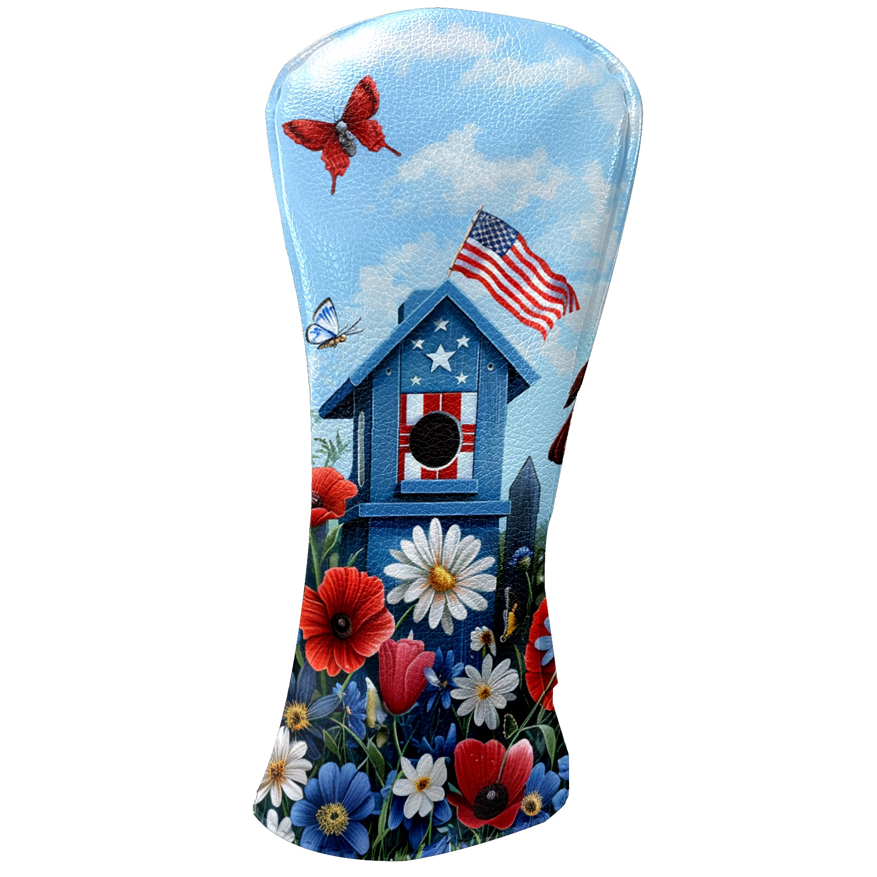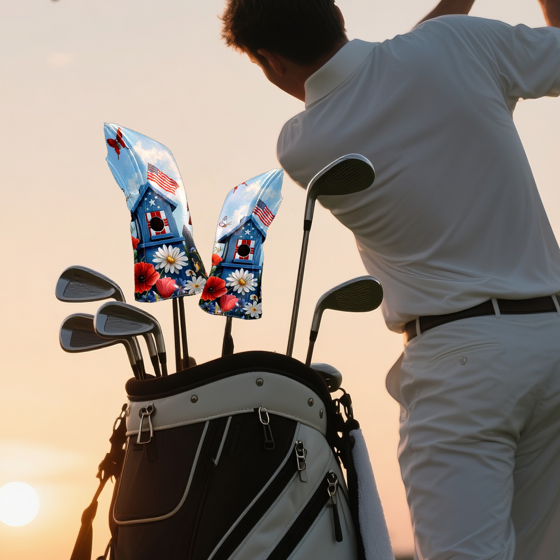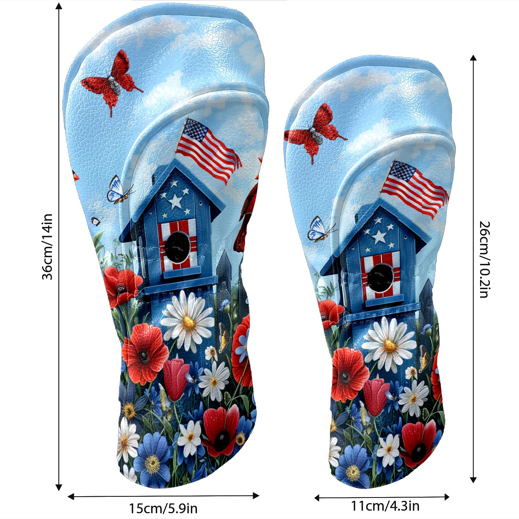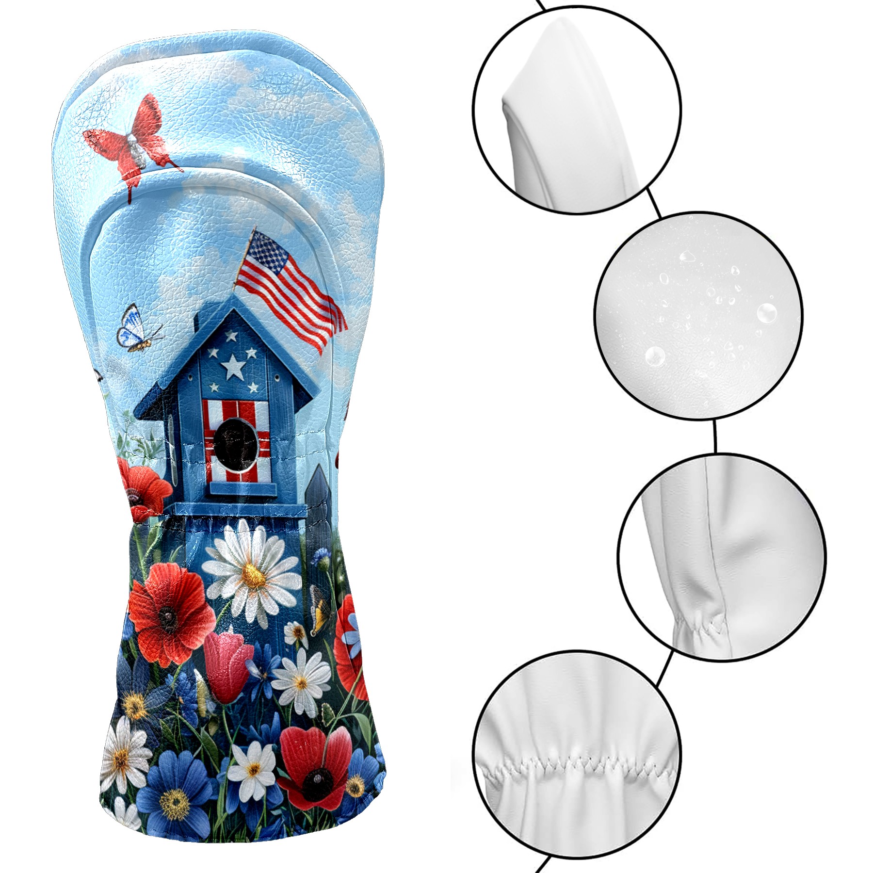 Golf Club Covers Premium Leather Golf Club Head Covers for Driver Fairway Woods Clubs, Waterproof Golf Headcovers with Anti-Scratch Lining for Men Women (American Flowers)