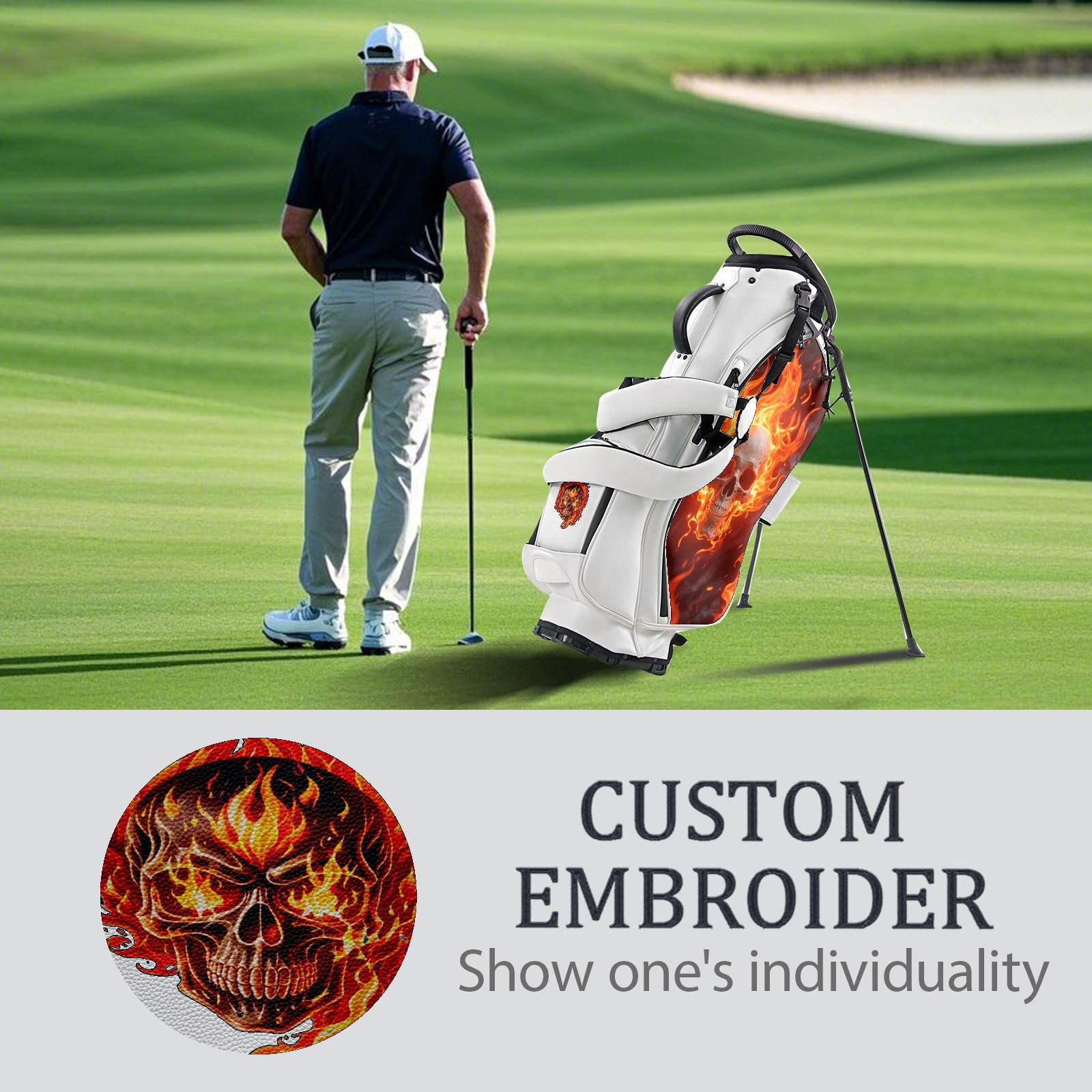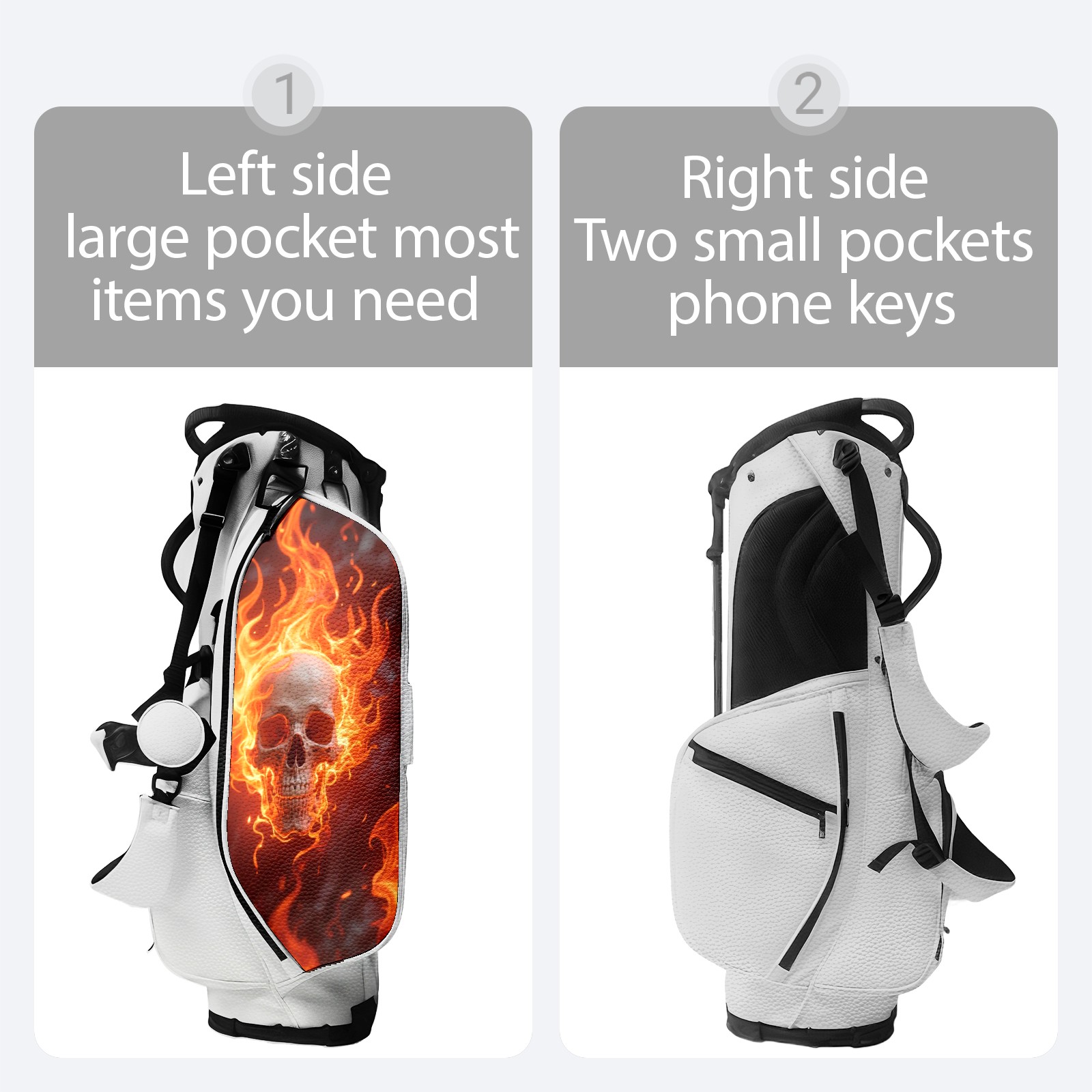 Golf Stand Bag - 14/5 Way Top Dividers, 8 Pockets, Waterproof Lichee PU Leather, Customizable , Black/White, Includes Rain Cover & Dust Bag Skull