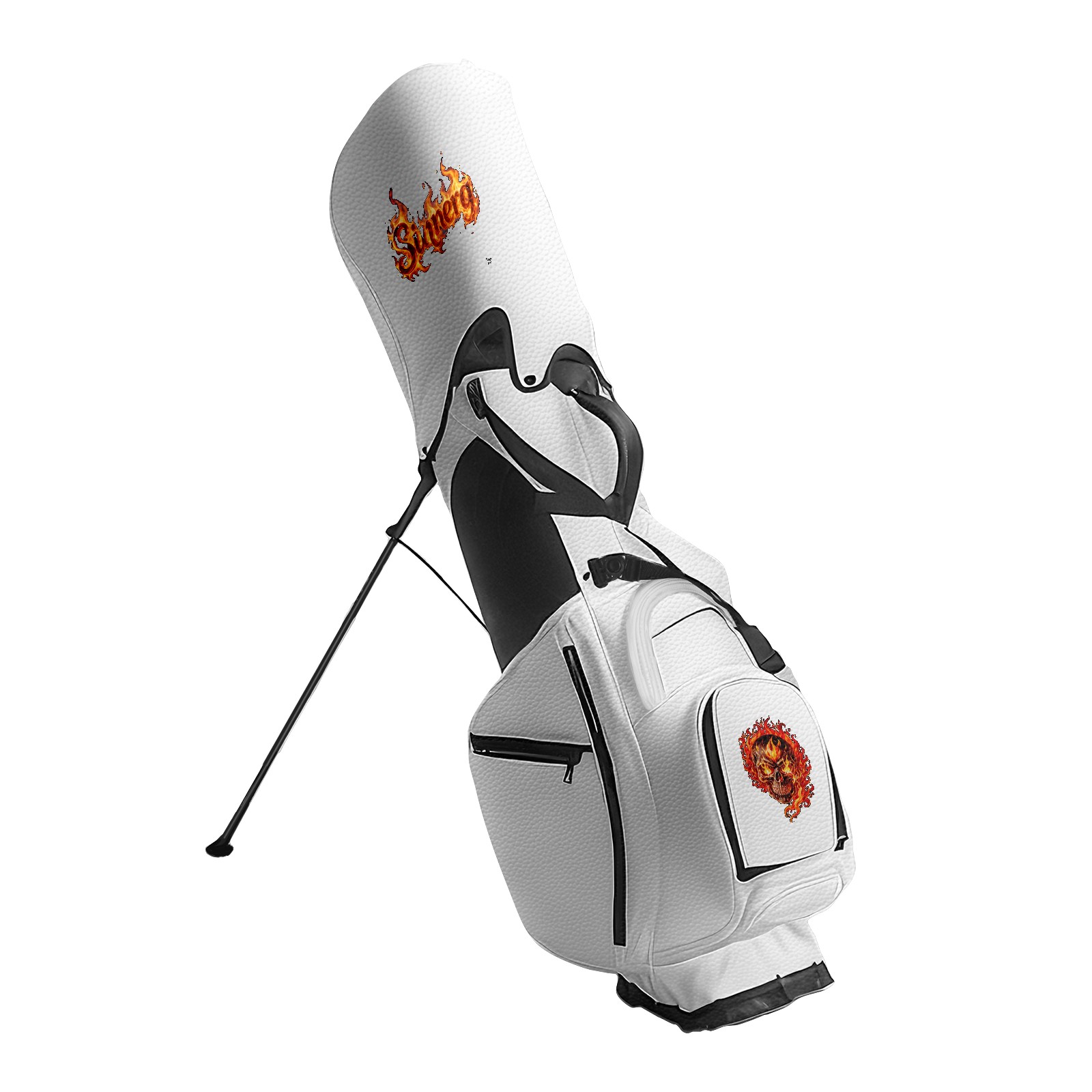 • <p>The Golf Stand Bag, designed specifically for golf enthusiasts, offers a choice of 5 - way and 14 - way top dividers. Its 5/14 - compartment design with independent full - size club compartments safeguards clubs from collisions. Equipped with a rain cover, waterproof zippered pockets (tested to resist moderate to heavy rain), and a high - performance cooler pouch that can keep drinks cold for hours, it ensures a convenient golfing experience. The bag features thickened, breathable neoprene shoulder straps and an adjustable chest buckle, reducing shoulder fatigue by 35% compared to regular bags, and its automatic aluminum alloy stand provides stable support on various terrains. Crafted from top - tier, water - resistant litchi - grain PU leather, with double - stitched edges, reliable zippers tested for over 15,000 cycles, and anti - abrasion bottom studs, it guarantees durability. You can personalize it with embroidery on the front pocket and rain cover side (15*15cm area), and it comes in classic black and white, with a matte finish and litchi - grain texture that combines business and leisure styles. Measuring 130 cm in height, 37 cm in width, and 31 cm in depth (including rain cover) and 90 cm x 31 cm x 37 cm (excluding rain cover), it strikes a balance between storage and portability, capable of holding 14 standard - sized clubs and other essentials, and it also includes a dust cover. It's truly the perfect choice for golfers.<br></p>