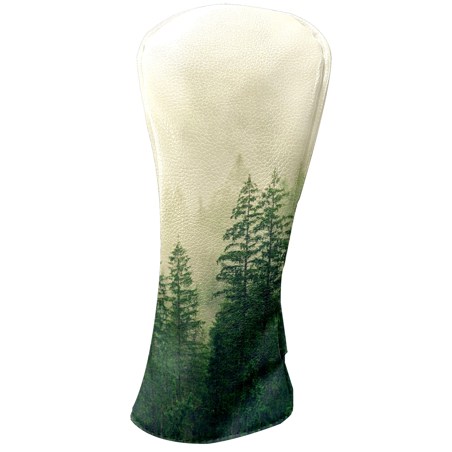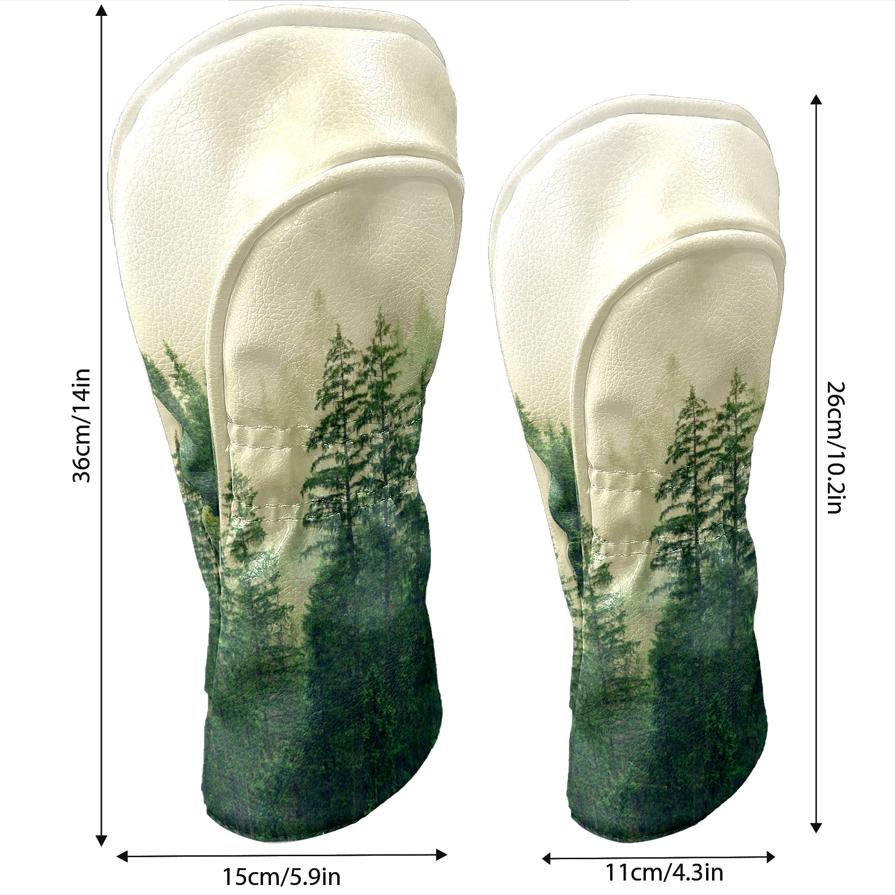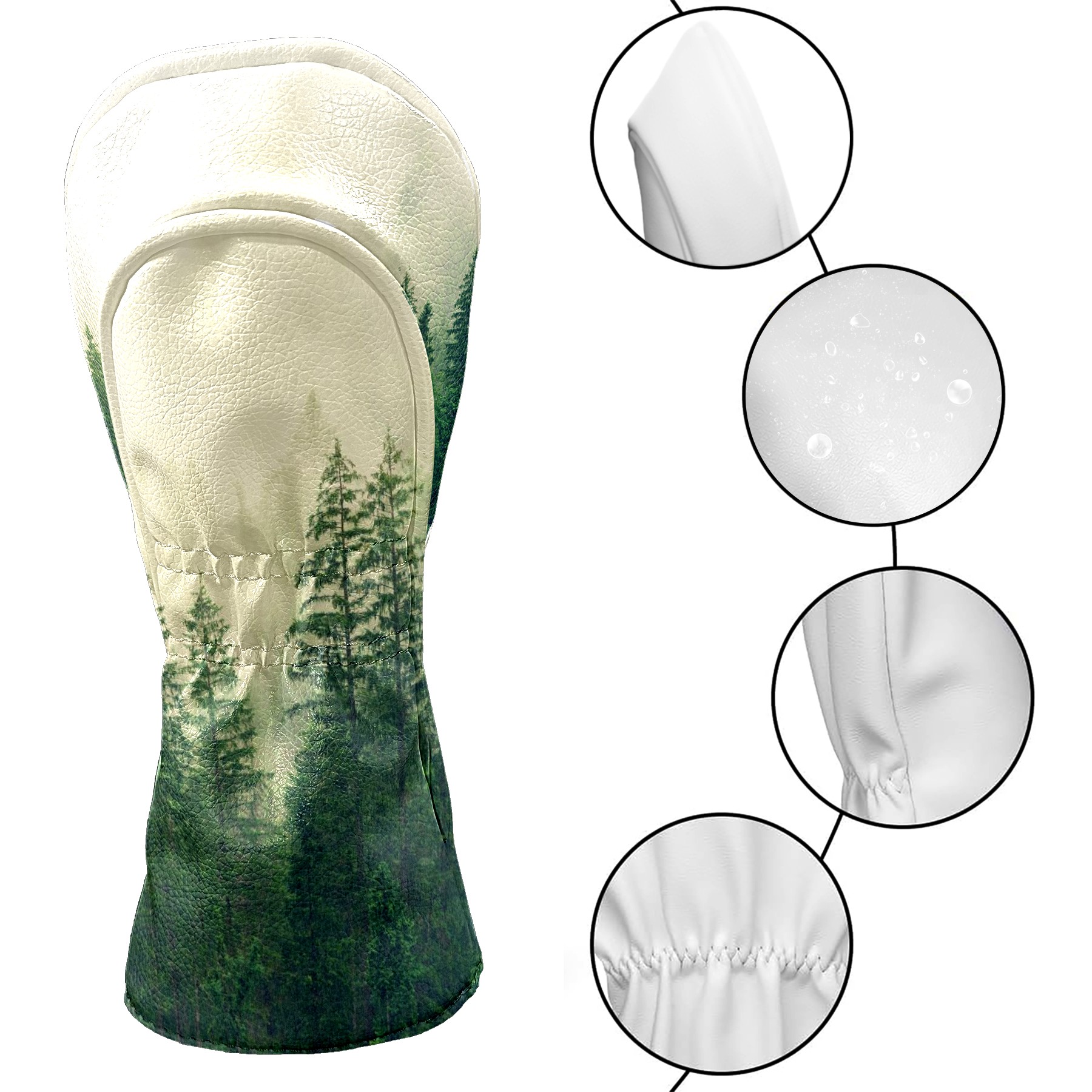 Golf Club Covers Green Forest Foggy Golf Club Head Covers for Driver Fairway Woods Clubs Premium Leather, Waterproof Golf Headcovers with Anti-Scratch Lining for Men Women