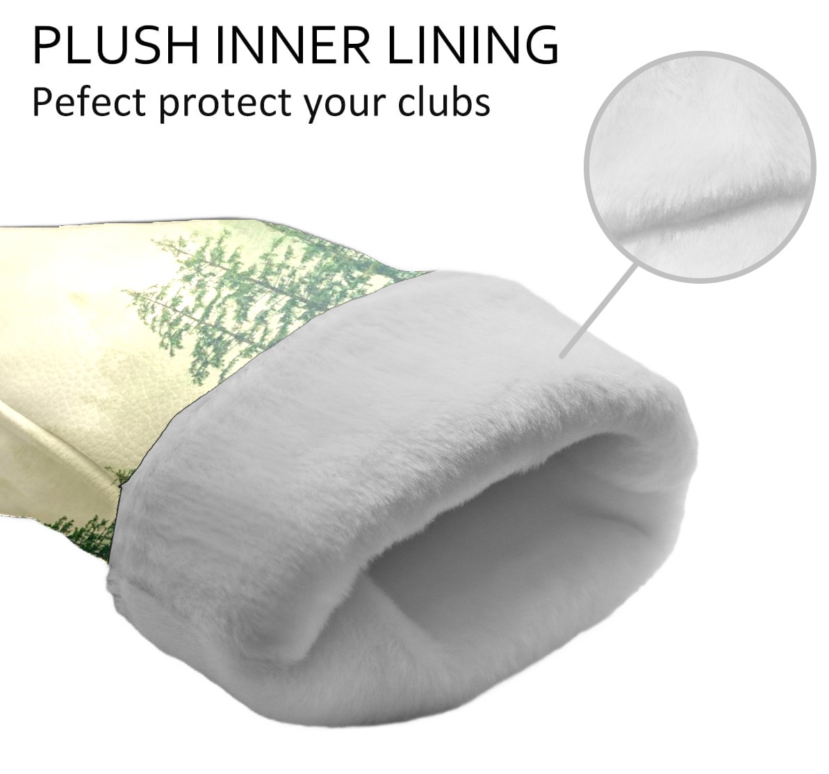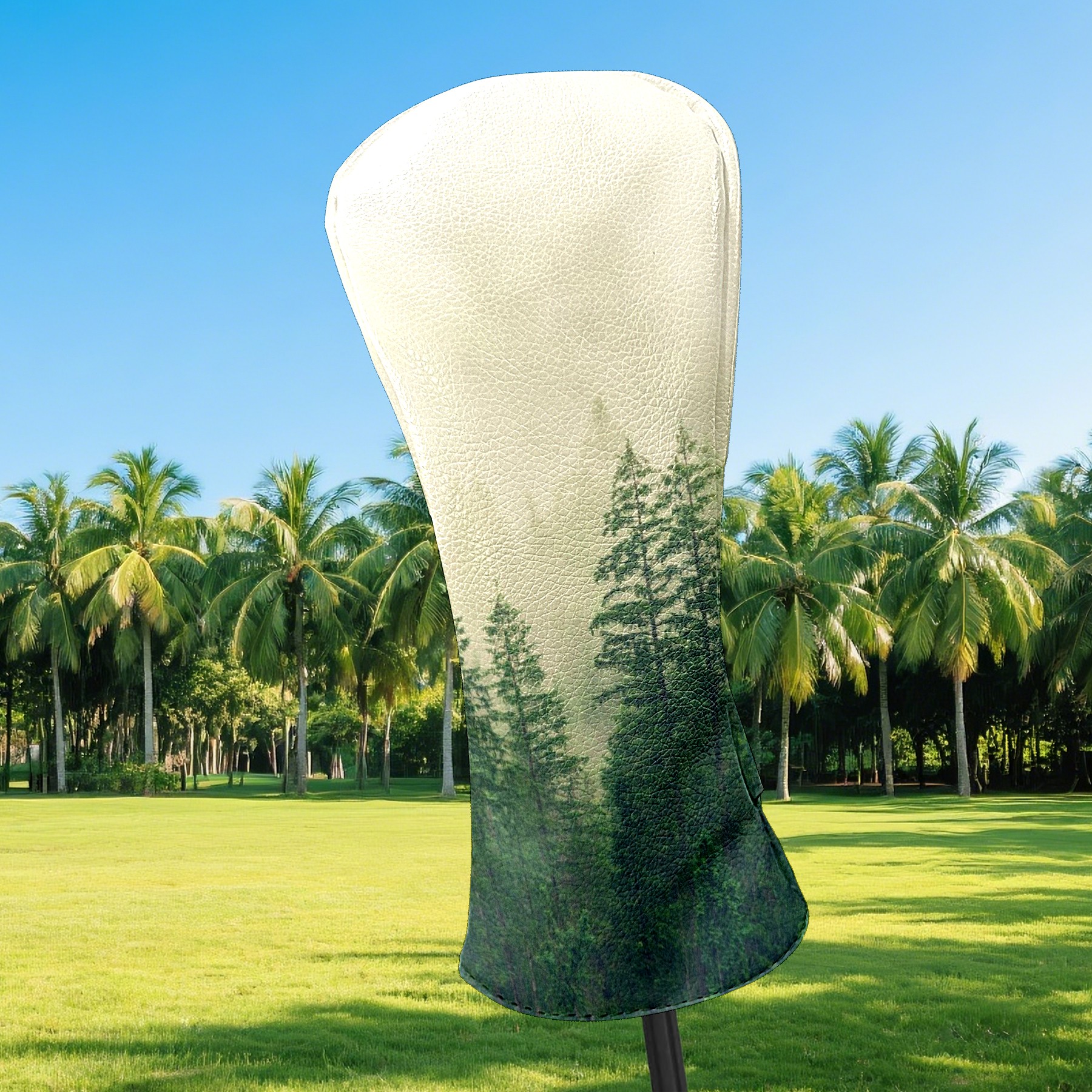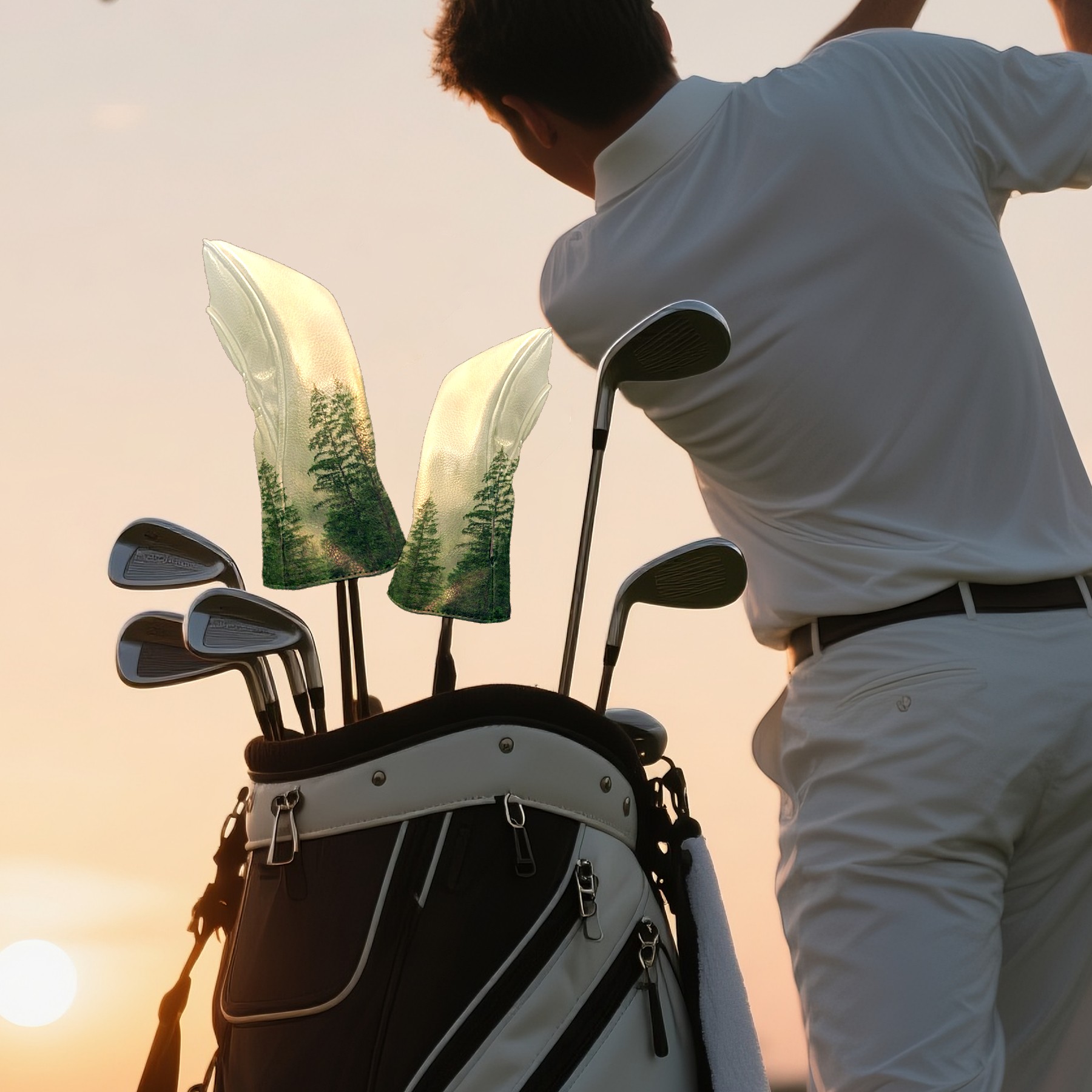Golf Club Covers Green Forest Foggy Golf Club Head Covers for Driver Fairway Woods Clubs Premium Leather, Waterproof Golf Headcovers with Anti-Scratch Lining for Men Women