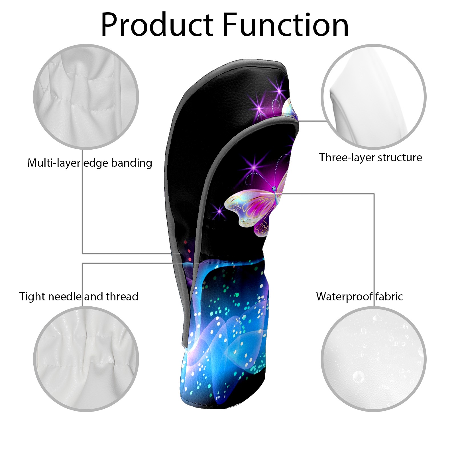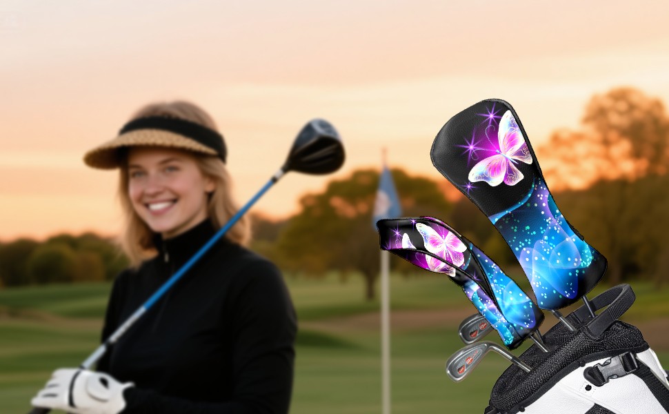 Golf Club Covers Pink Butterflies Golf Club Head Covers for Driver Fairway Woods Clubs Premium Leather, Waterproof Golf Headcovers with Anti-Scratch Lining for Men Women