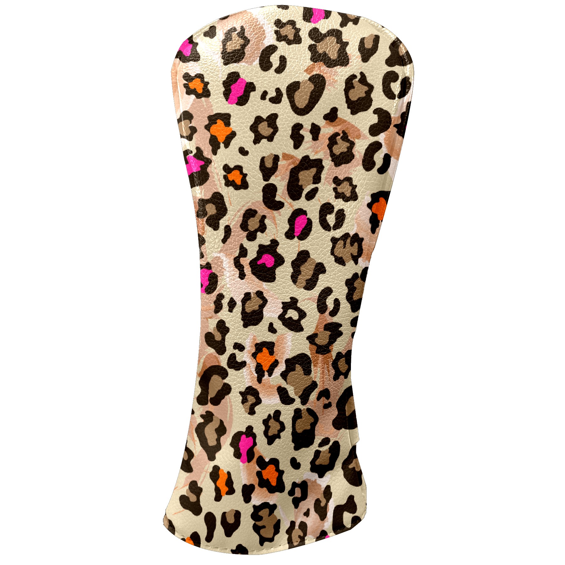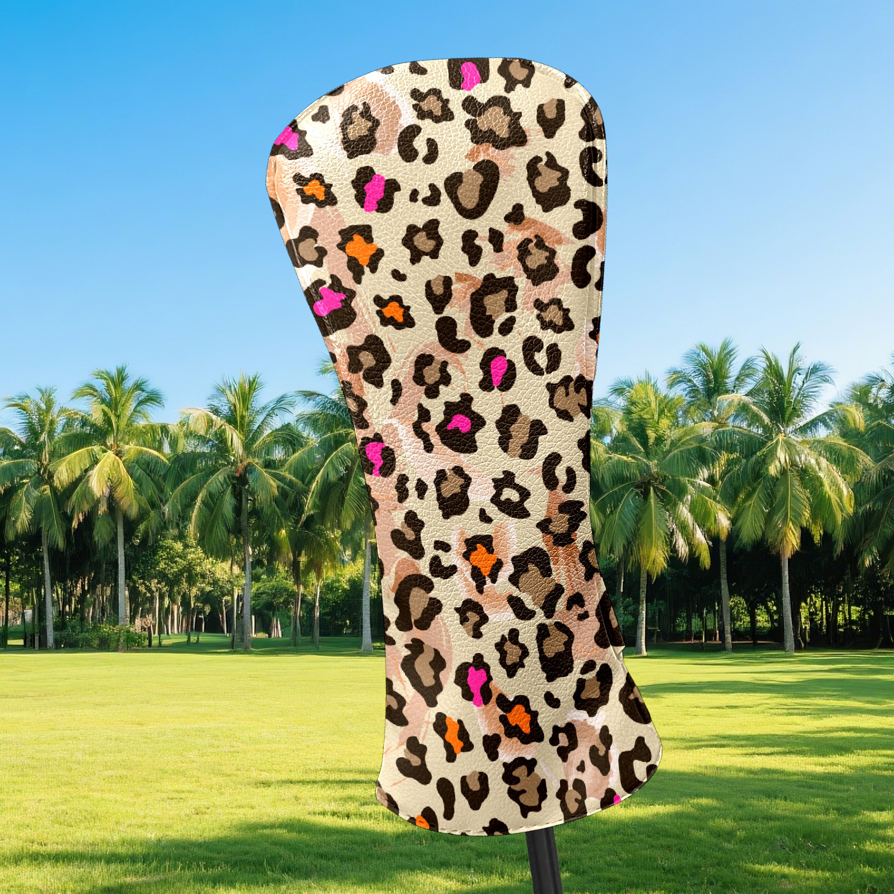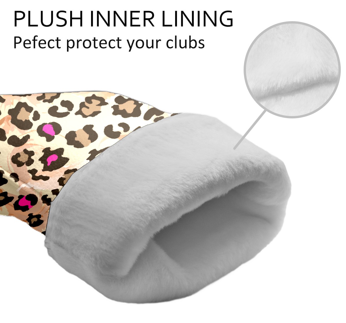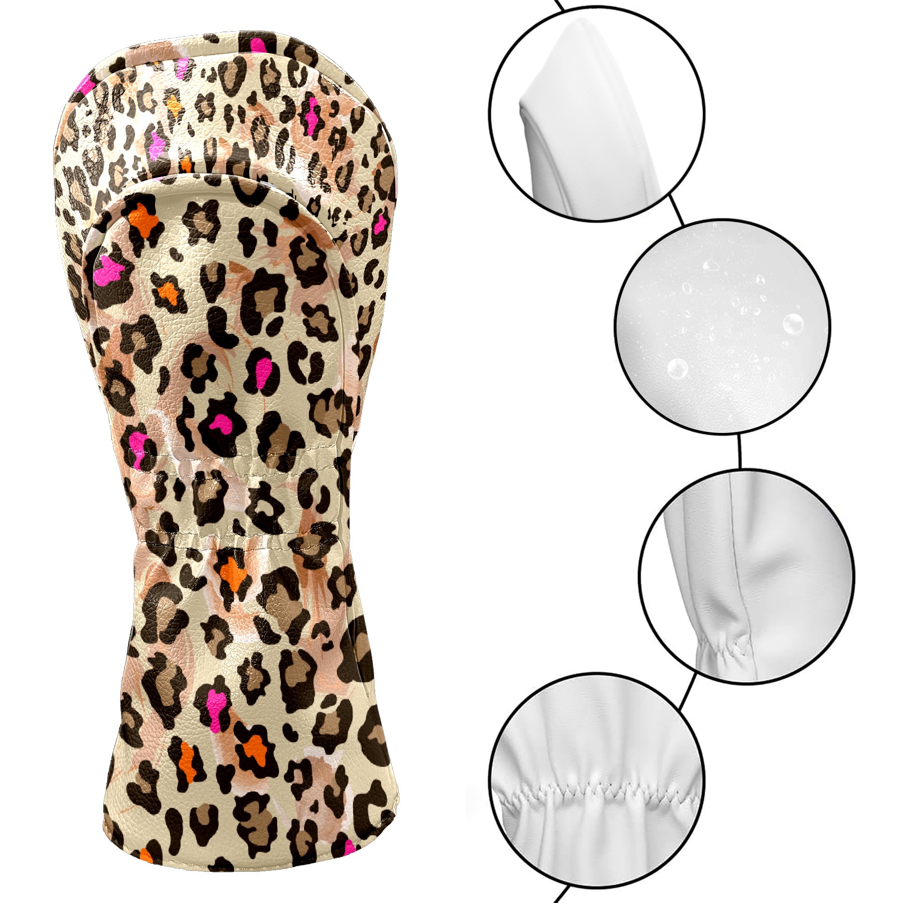 Golf Club Covers Orange Rosy Leopard Print Pattern Golf Club Head Covers for Driver Fairway Woods Clubs Premium Leather, Waterproof Golf Headcovers with Anti-Scratch Lining for Men Women