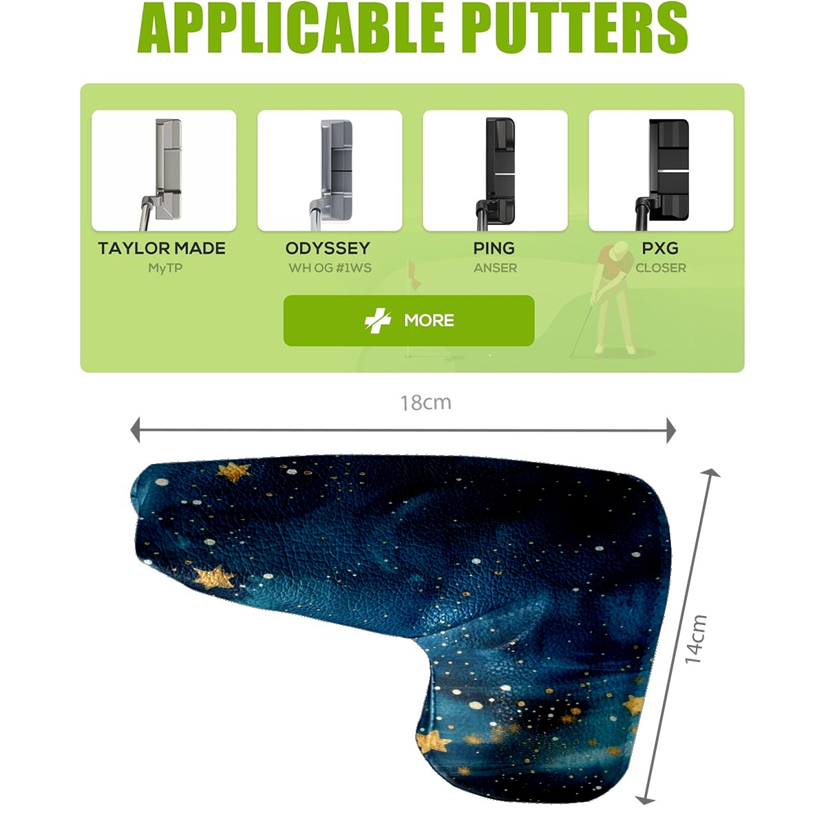 • Long Description: Protect your golf clubs in style with our premium synthetic leather headcovers, engineered for durability and elegance. The water-resistant exterior repels dirt and moisture, while the ultra-soft velvet interior cushions each club to prevent scratches and wear. Choose from five tailored sizes (15x36cm, 11x26cm, 13x14cm, 7x24cm, 14x18cm) to perfectly fit every club in your bag. Personalize your set with embroidered names, monograms, or custom artwork—ideal for adding a unique flair or creating a gift that stands out. Easy to clean and designed for a secure fit, these headcovers combine practicality with sophistication, making them a must-have for casual players and seasoned pros alike. Surprise the golf enthusiast in your life with a functional yet sentimental accessory that celebrates their passion!