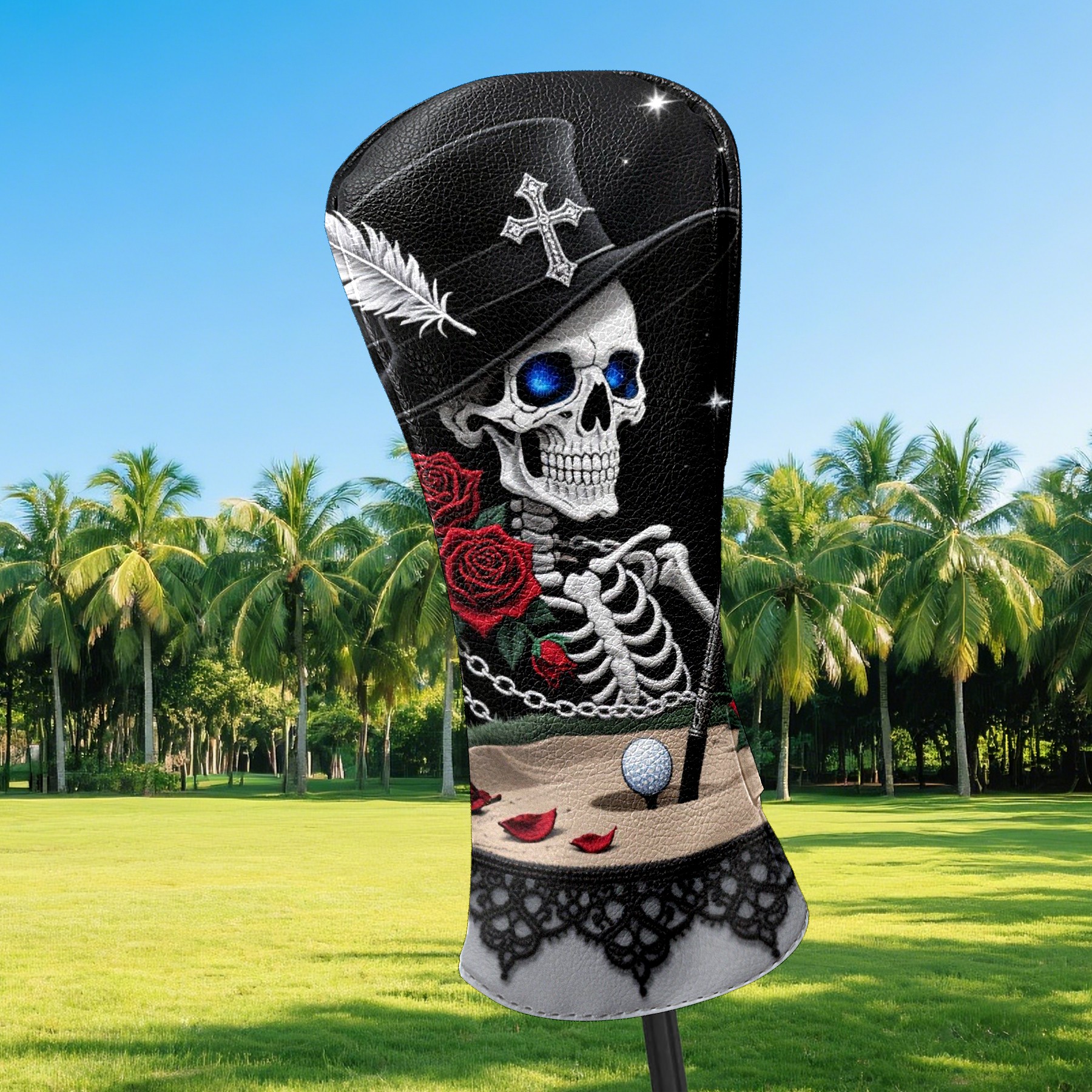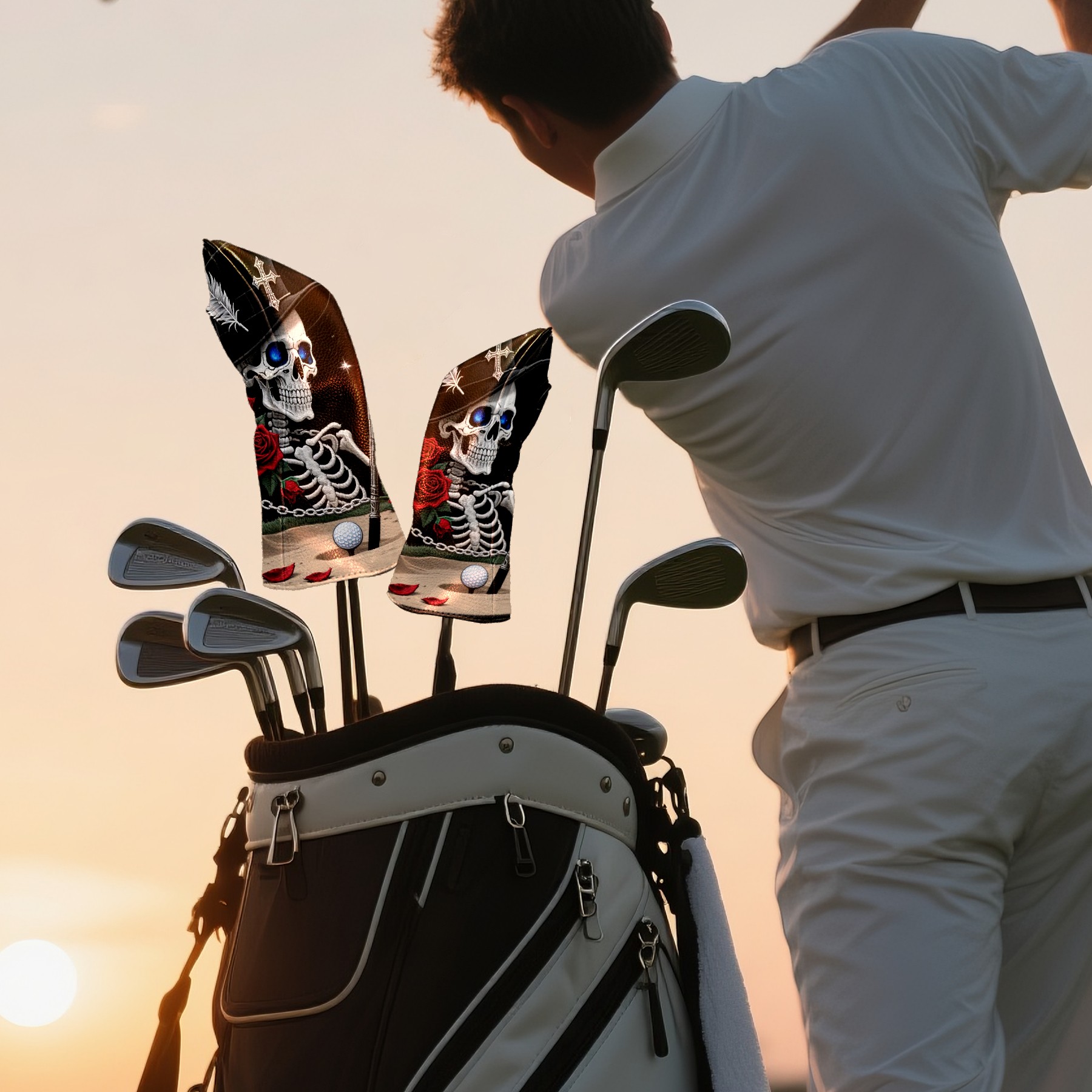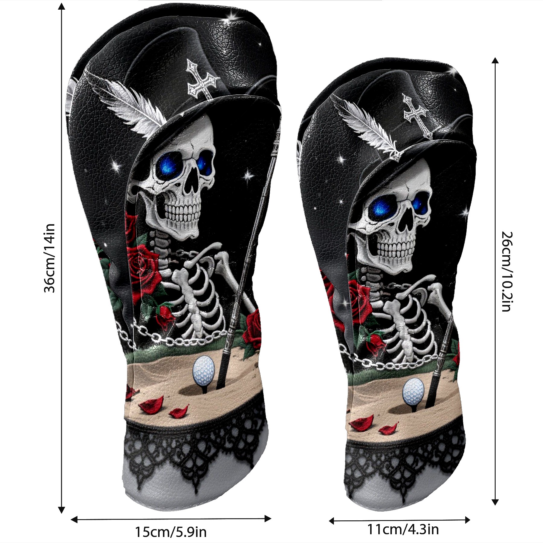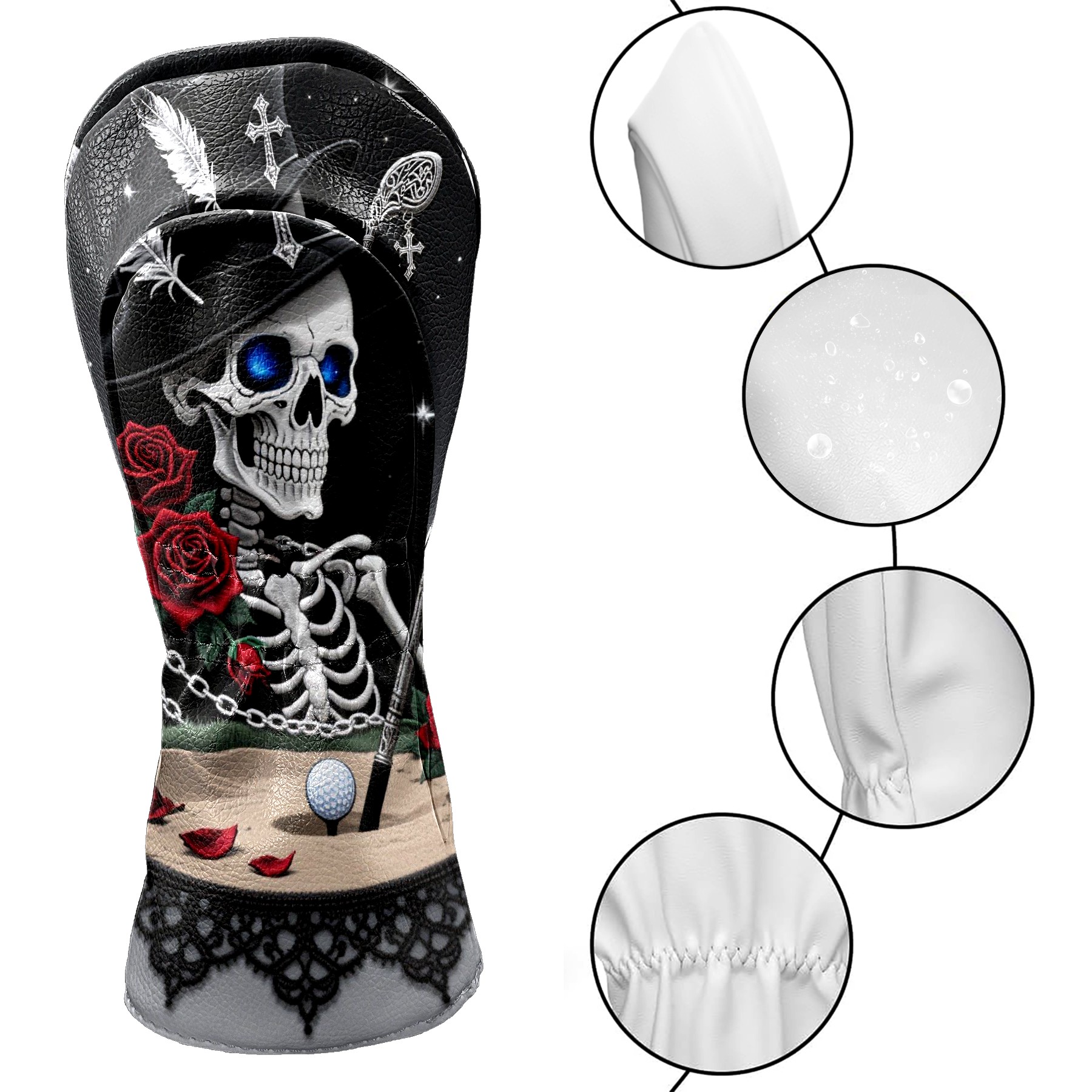Golf Club Covers Gothic Skull Golf Club Head Covers for Driver Fairway Woods Clubs Premium Leather, Waterproof Golf Headcovers with Anti-Scratch Lining for Men Women