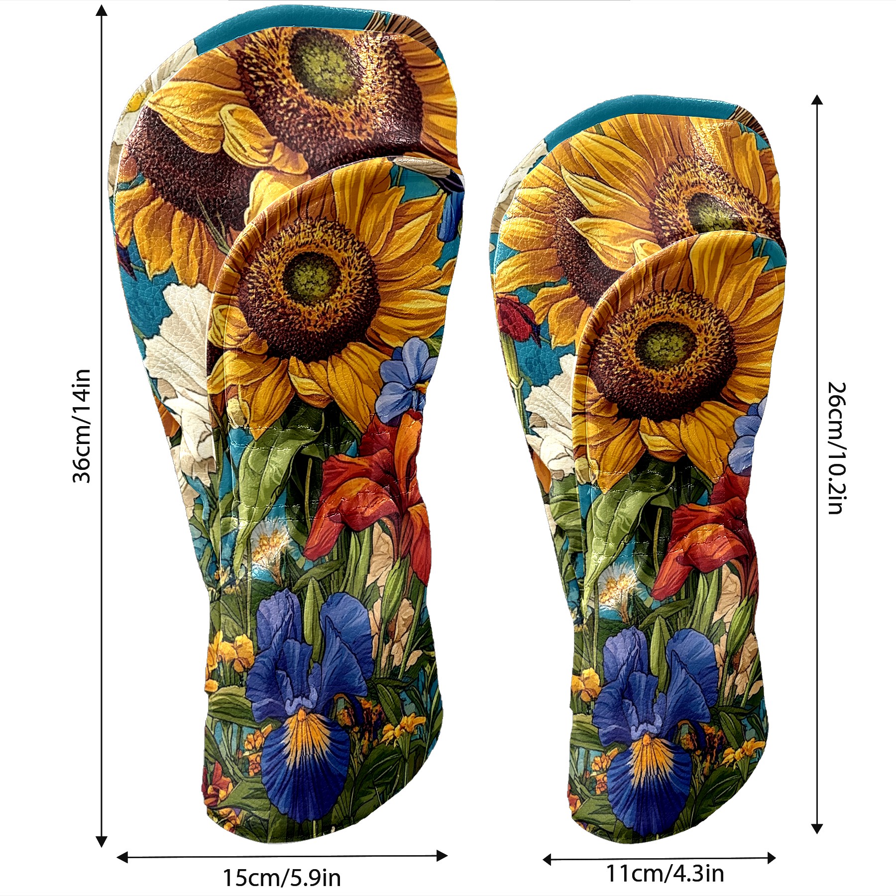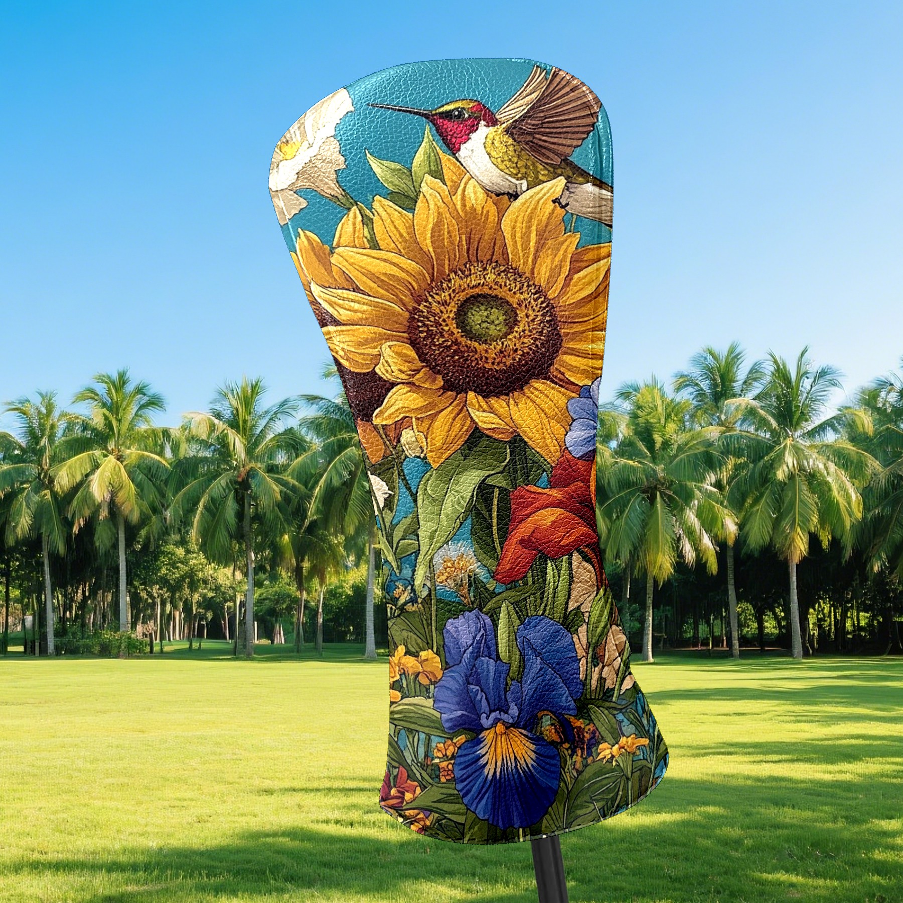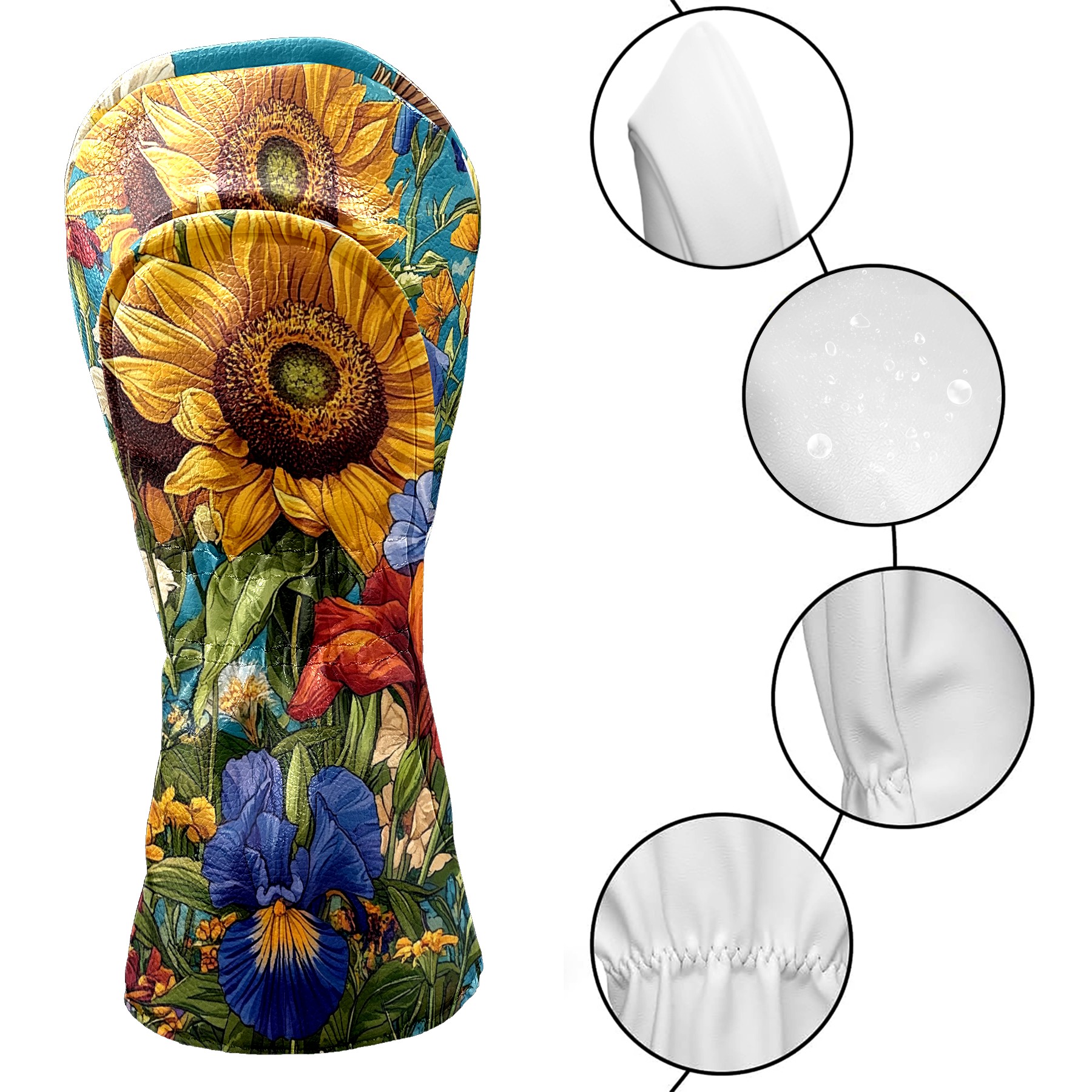 Golf Club Covers Colorful Flowers Sunflowers Golf Club Head Covers for Driver Fairway Woods Clubs Premium Leather, Waterproof Golf Headcovers with Anti-Scratch Lining for Men Women