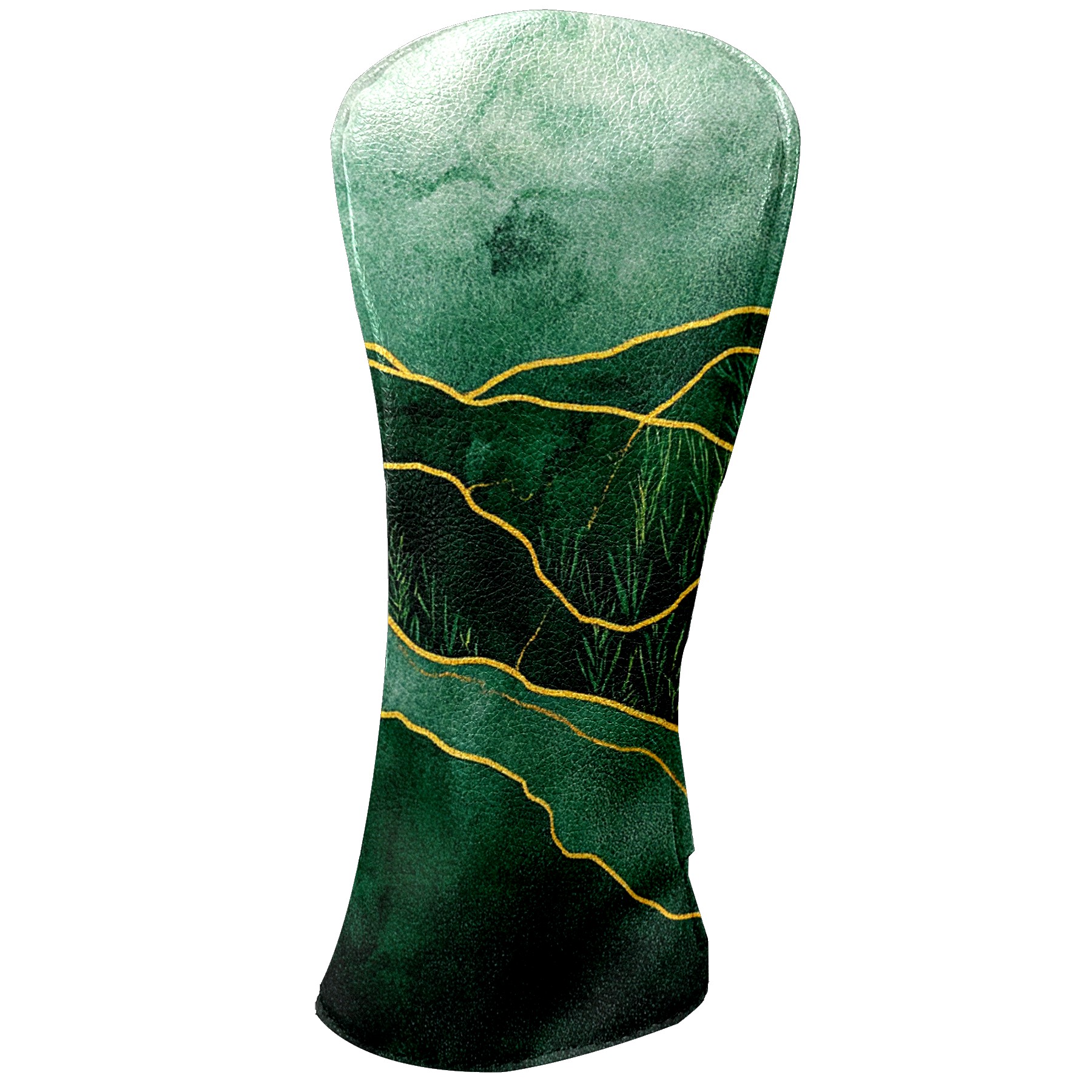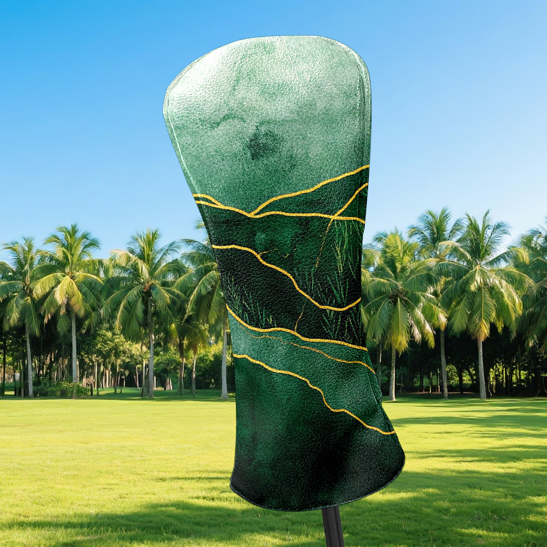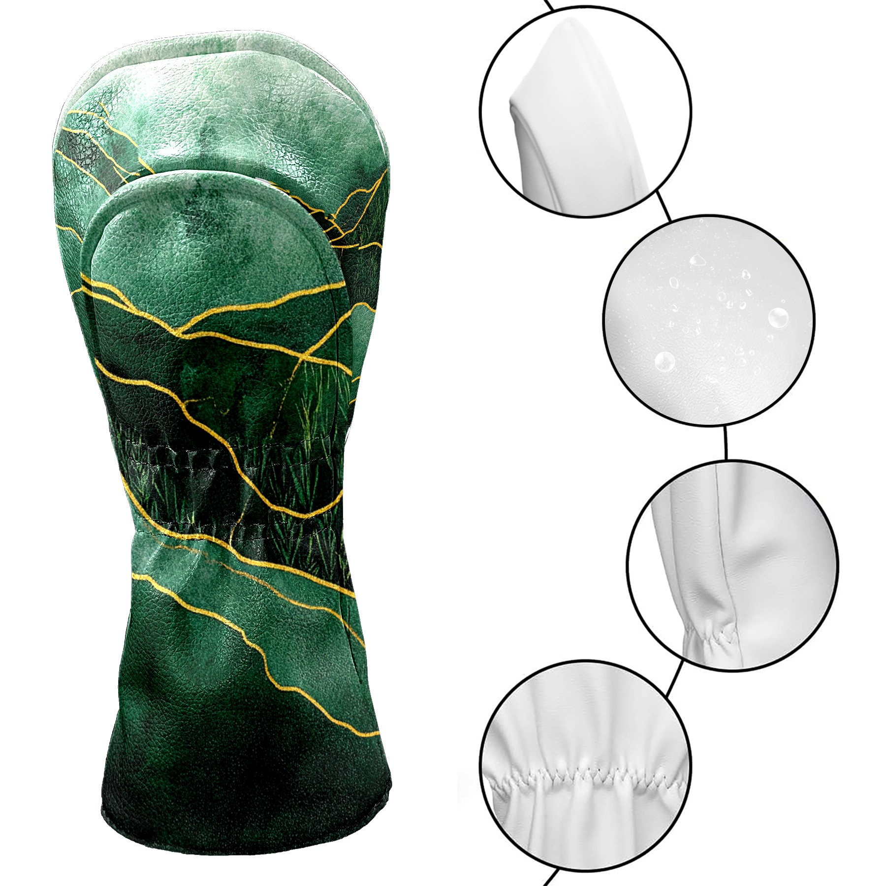 Golf Club Covers Emerald Green Mountains Marble Golf Club Head Covers for Driver Fairway Woods Clubs Premium Leather, Waterproof Golf Headcovers with Anti-Scratch Lining for Men Women