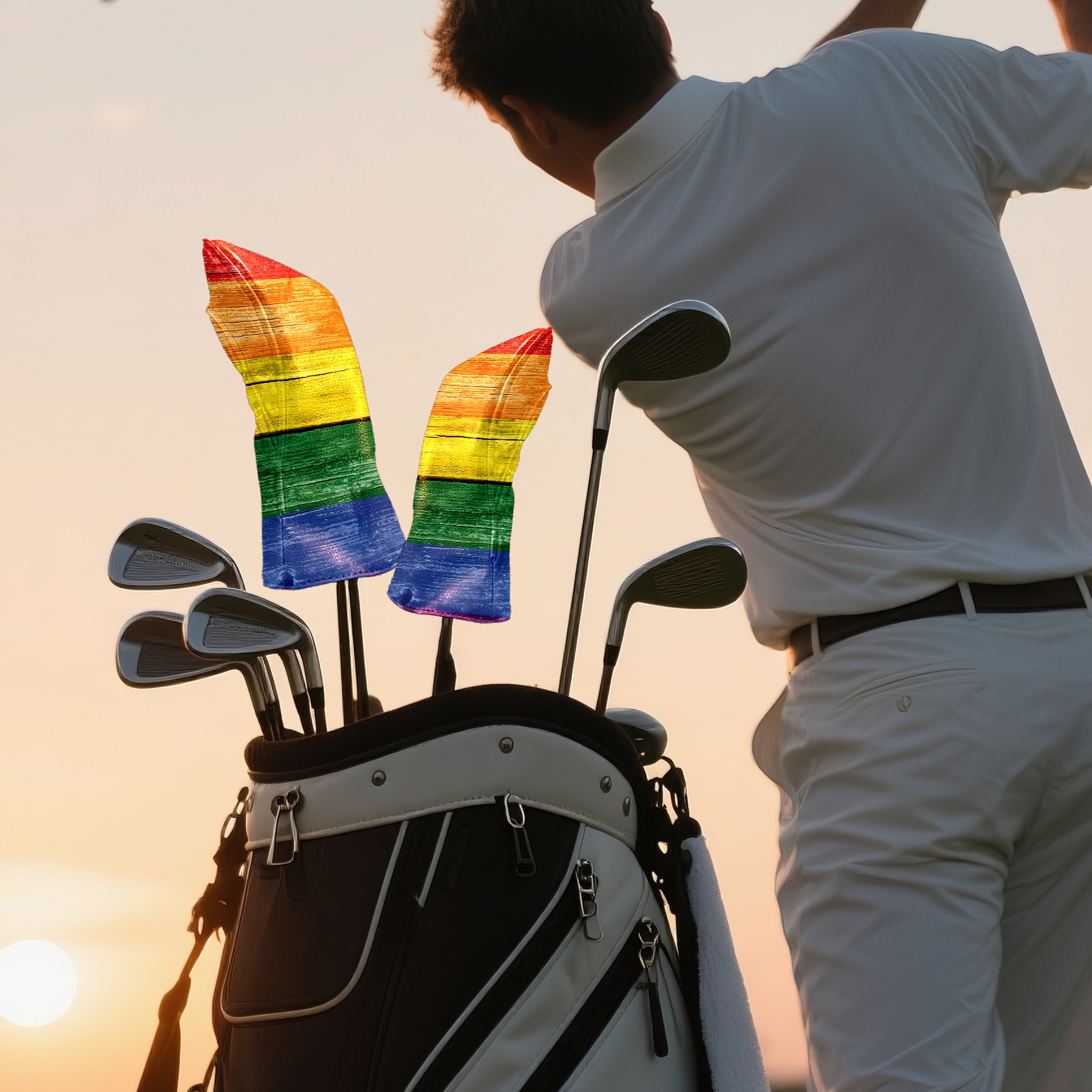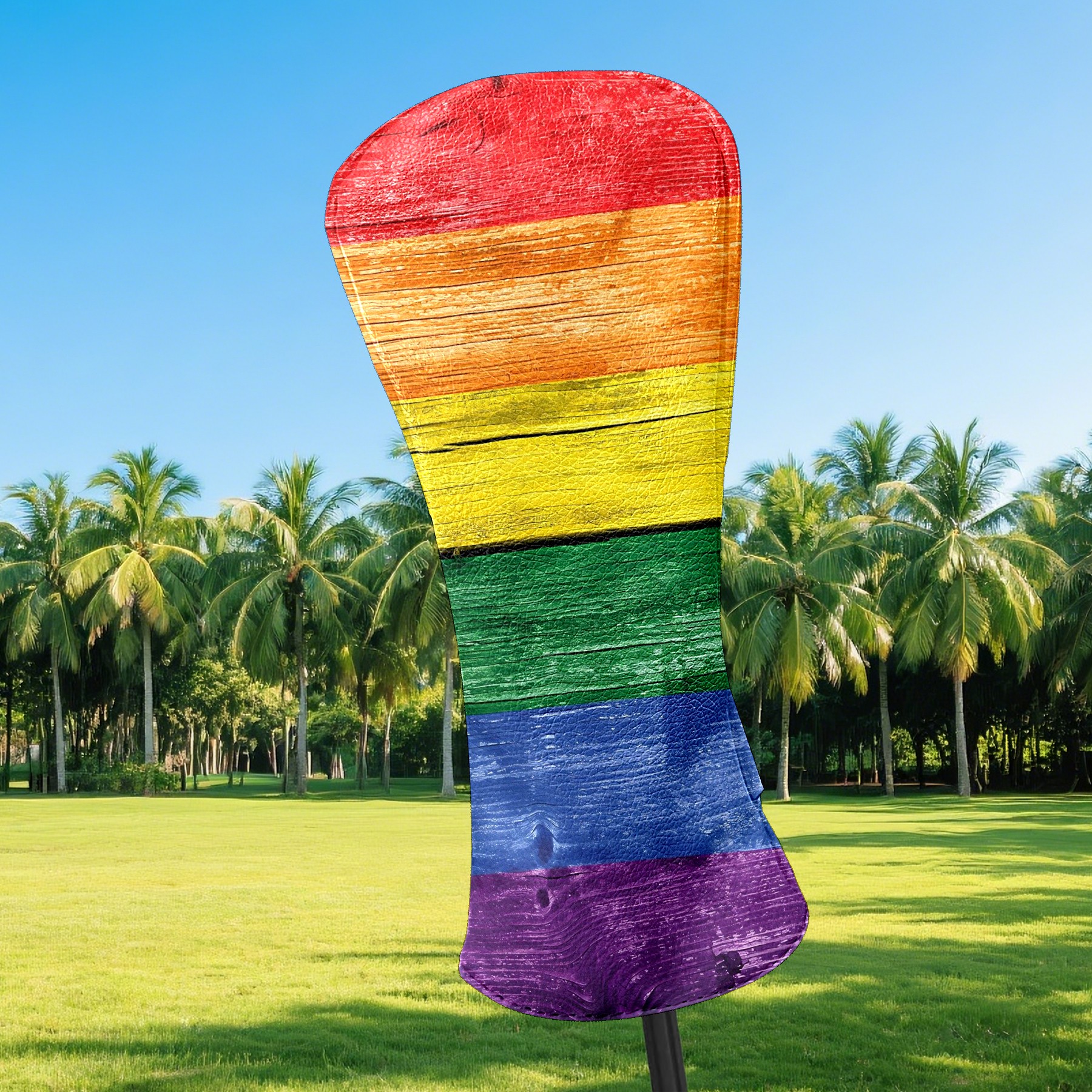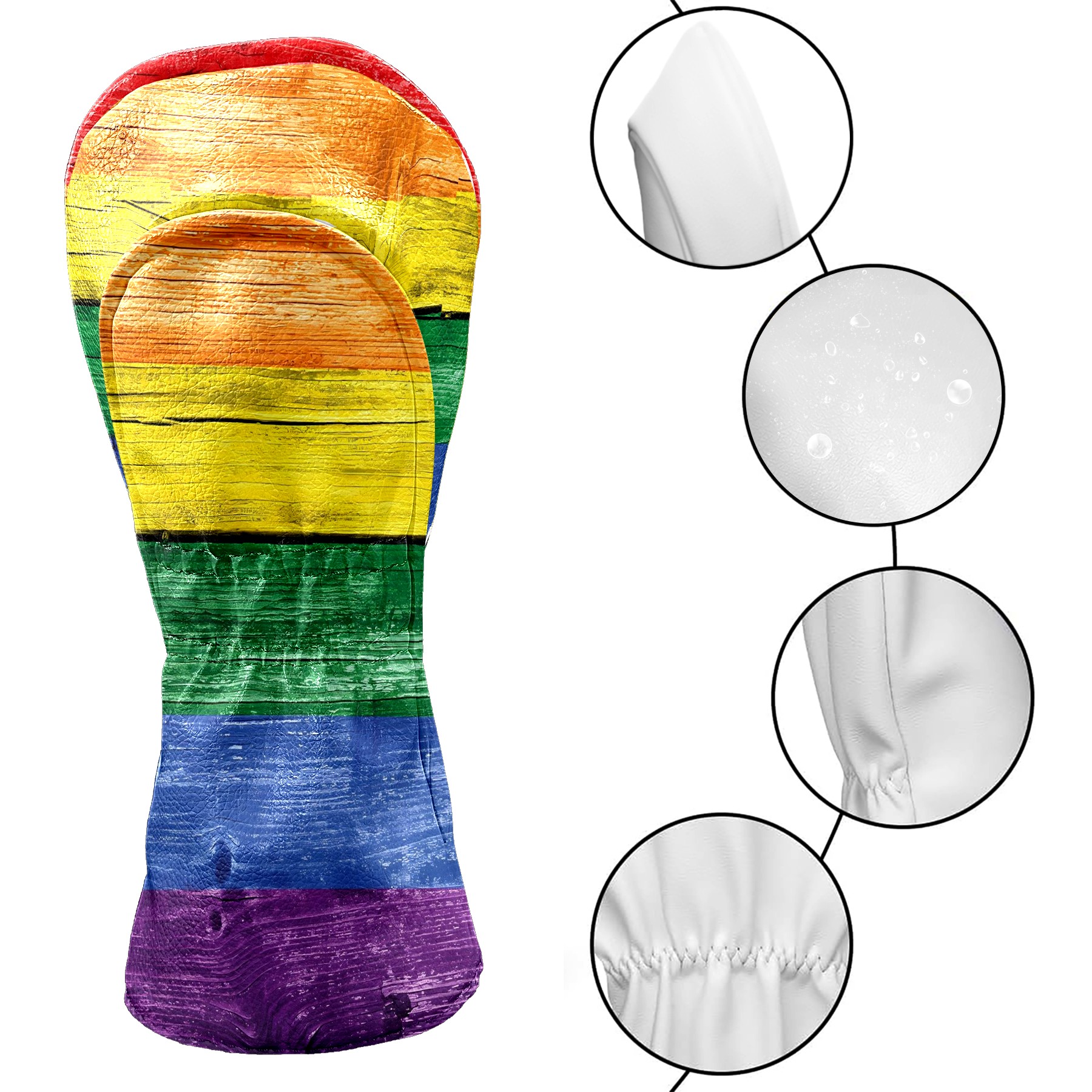 Golf Club Covers Rainbow,Old Tainted Wooden Planks In Rainbow Colors Flag Pattern Pride Theme Vintage Print,Multicolor (1) Golf Club Head Covers for Driver Fairway Woods Clubs Premium Leather, Waterproof Golf Headcovers with Anti-Scratch Lining for Men Women