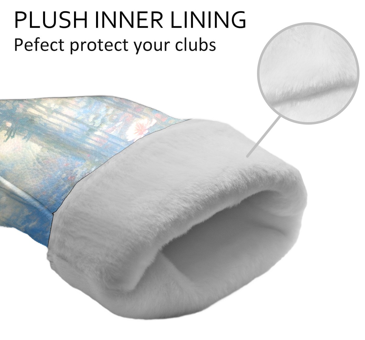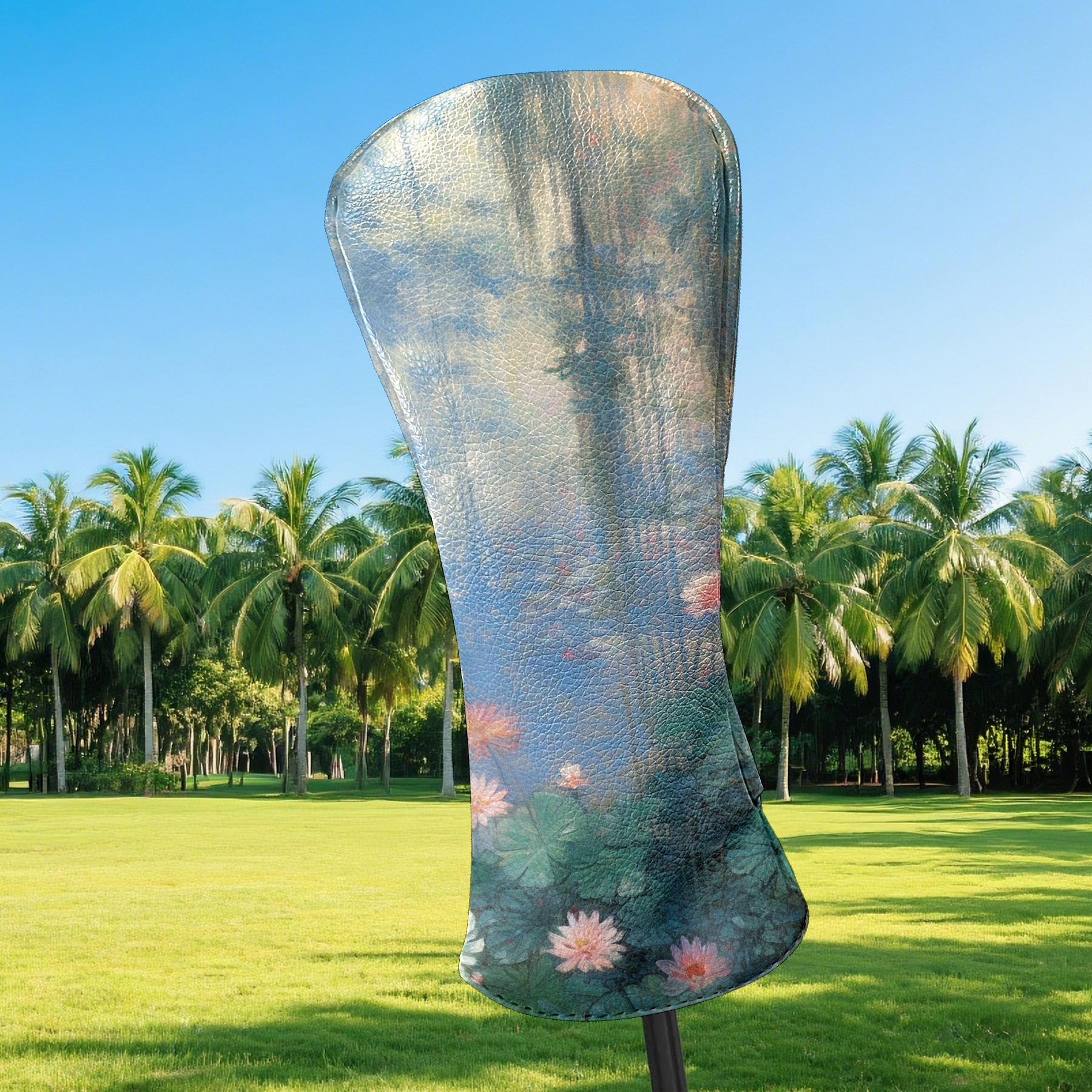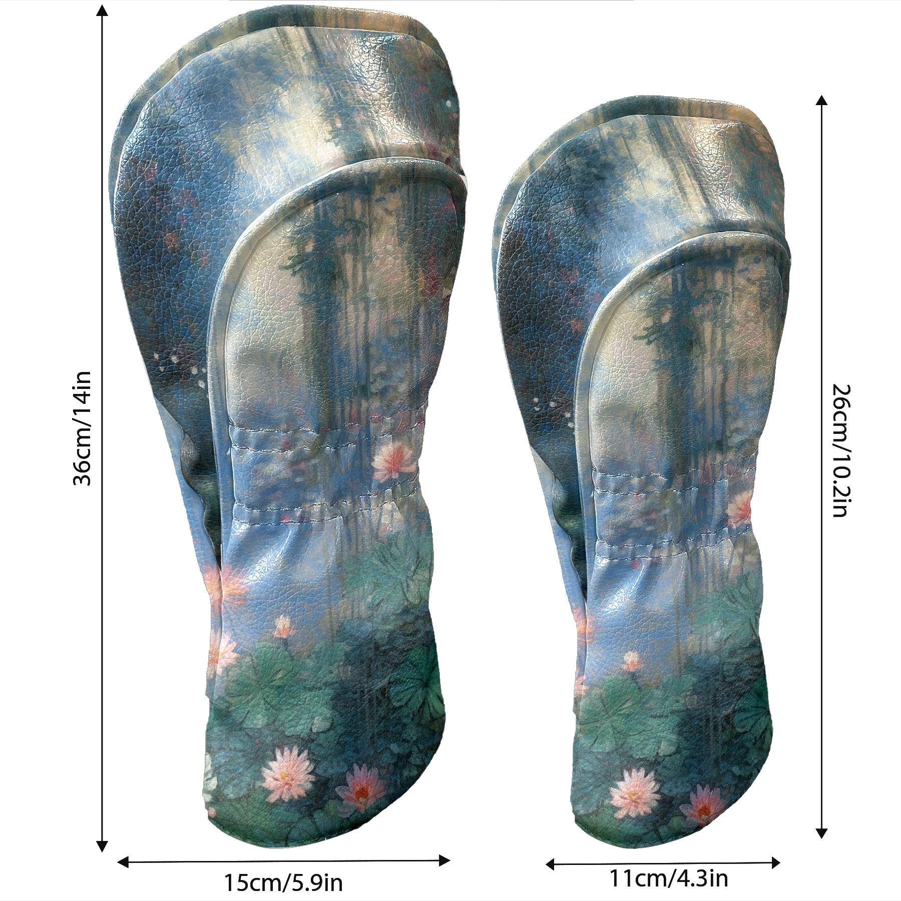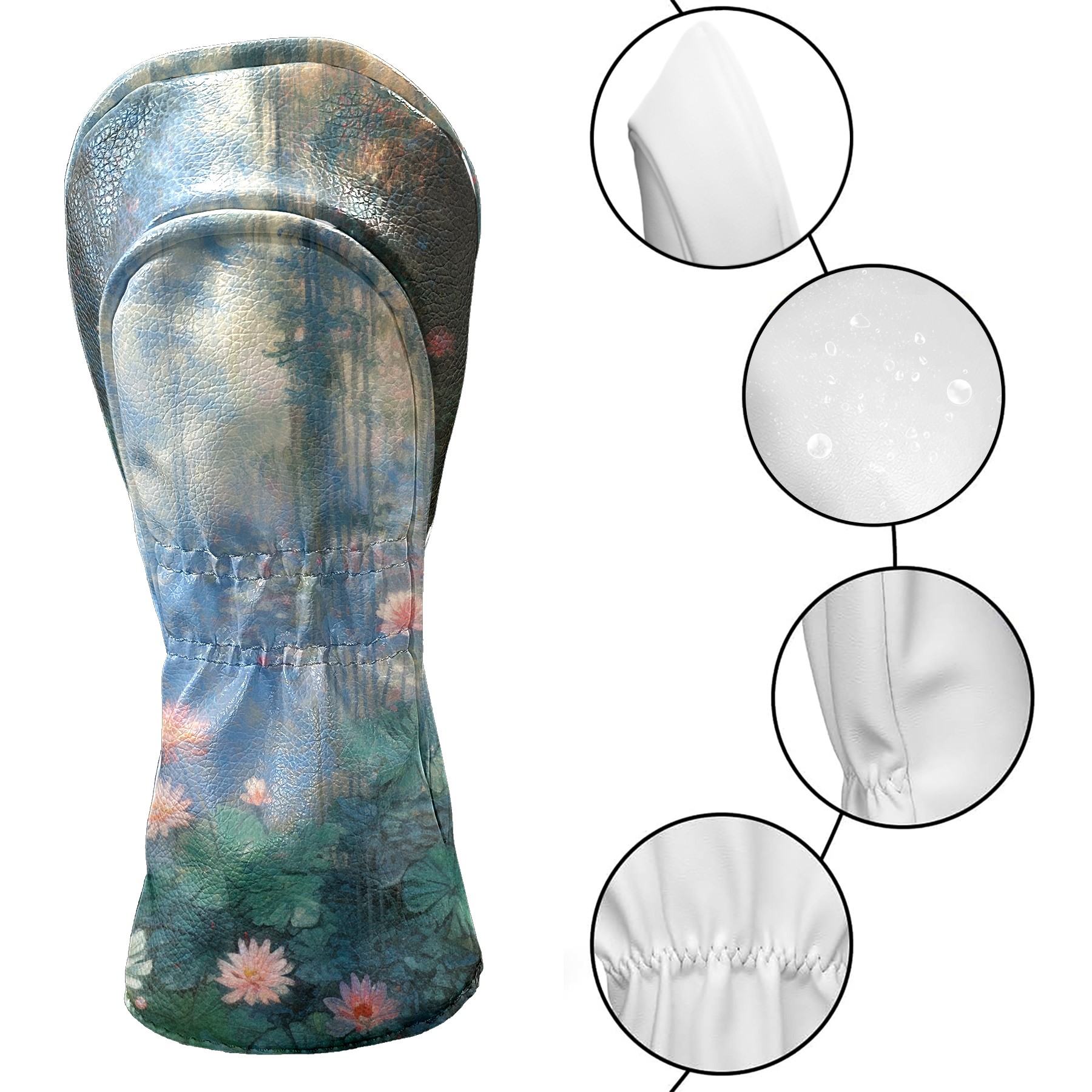 Golf Club Covers Water Lily Lotus Flower Golf Club Head Covers for Driver Fairway Woods Clubs Premium Leather, Waterproof Golf Headcovers with Anti-Scratch Lining for Men Women